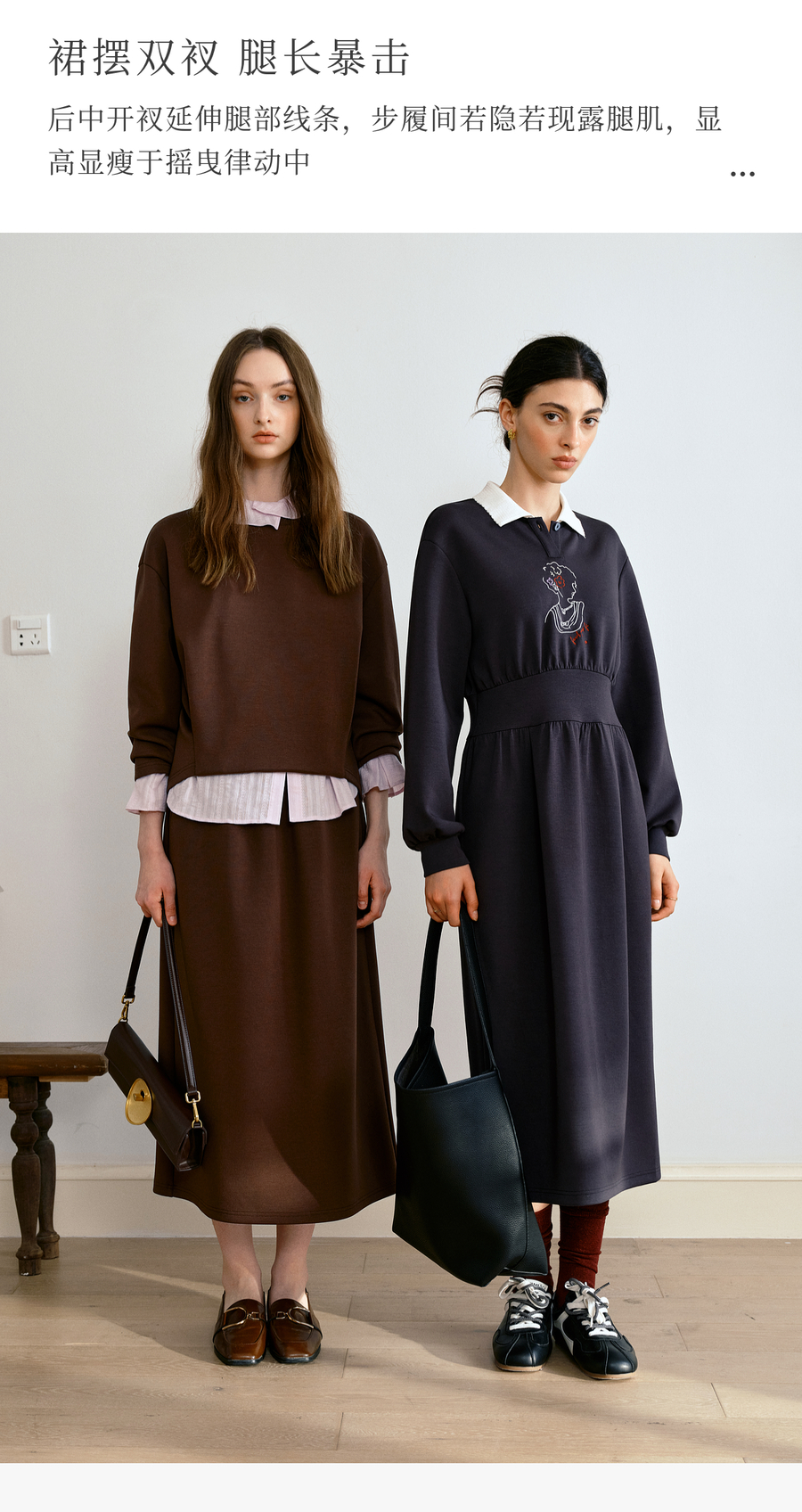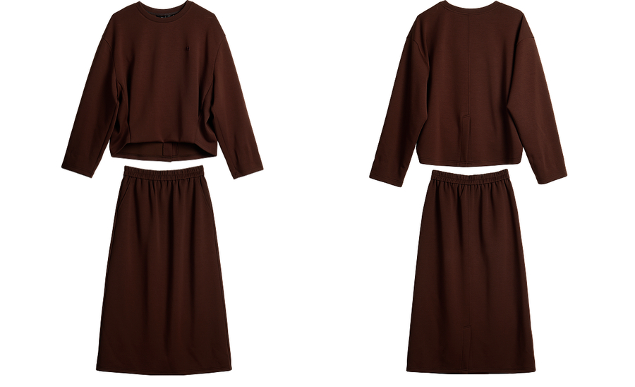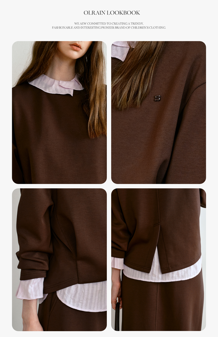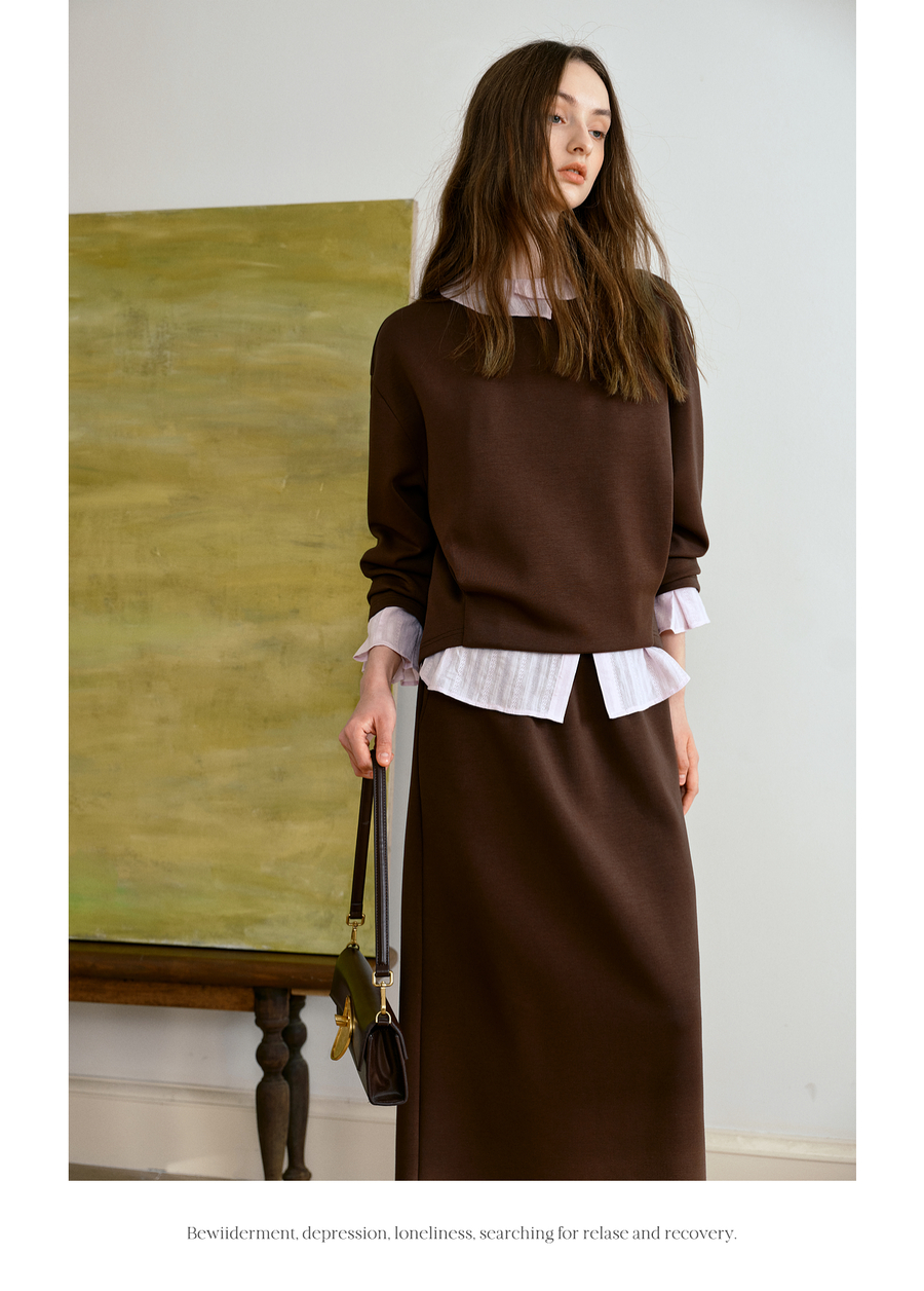 OLrain欧芮儿休闲通勤咖色卫衣针织半裙套装女秋季2025新款两件套
