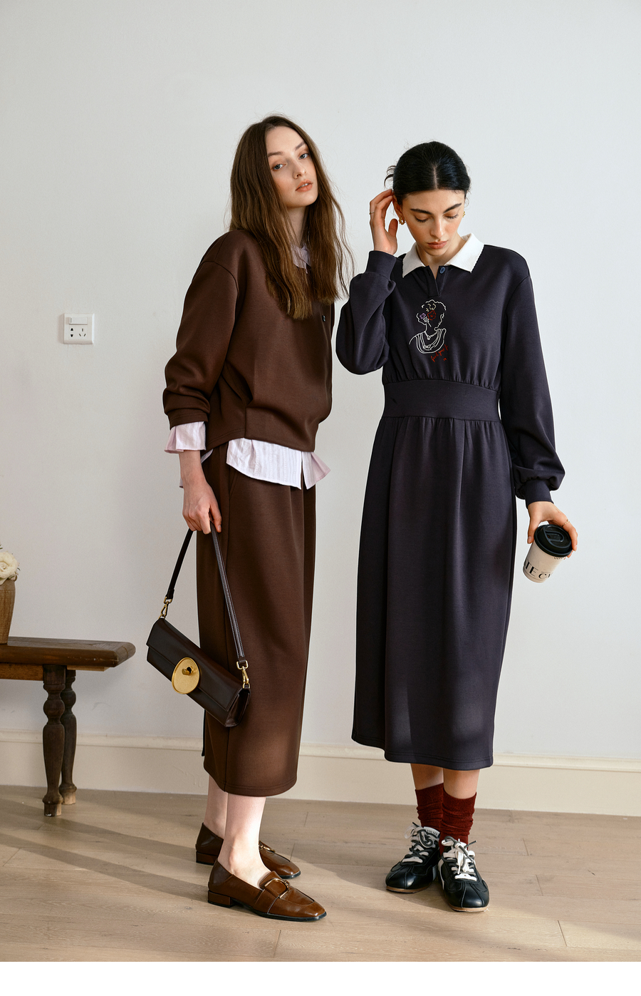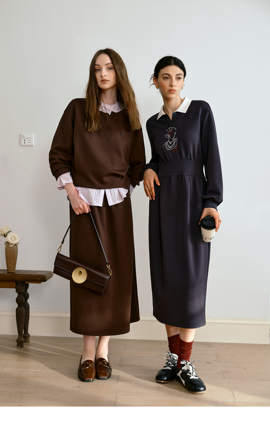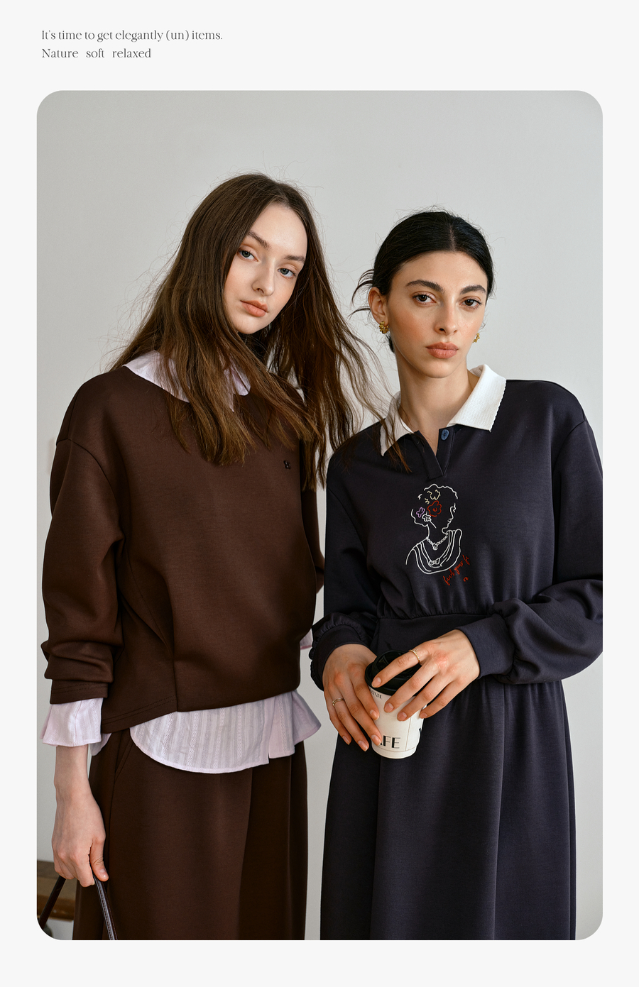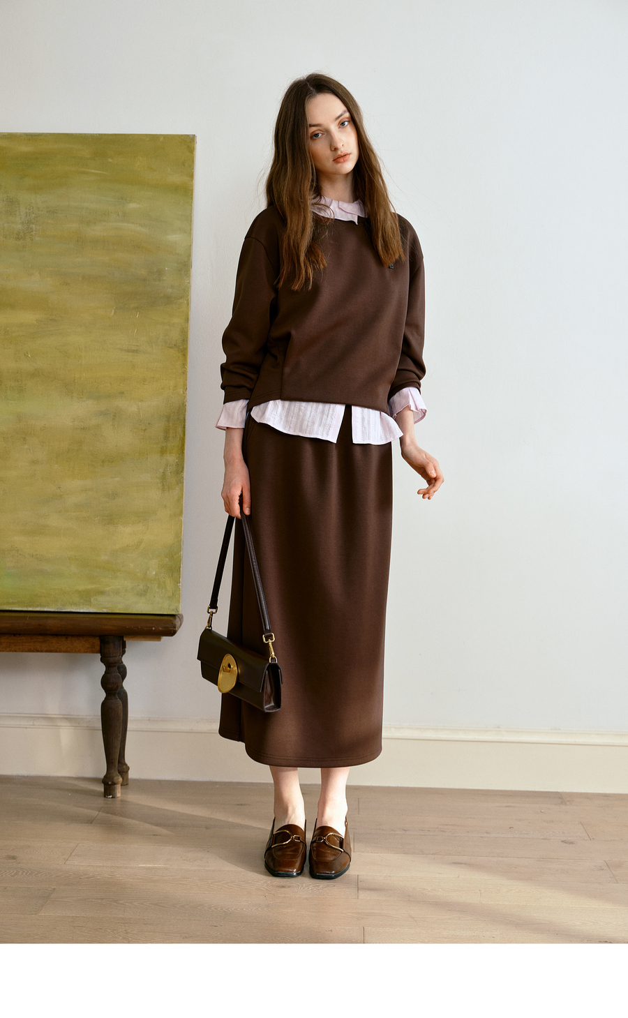 OLrain欧芮儿休闲通勤咖色卫衣针织半裙套装女秋季2025新款两件套
