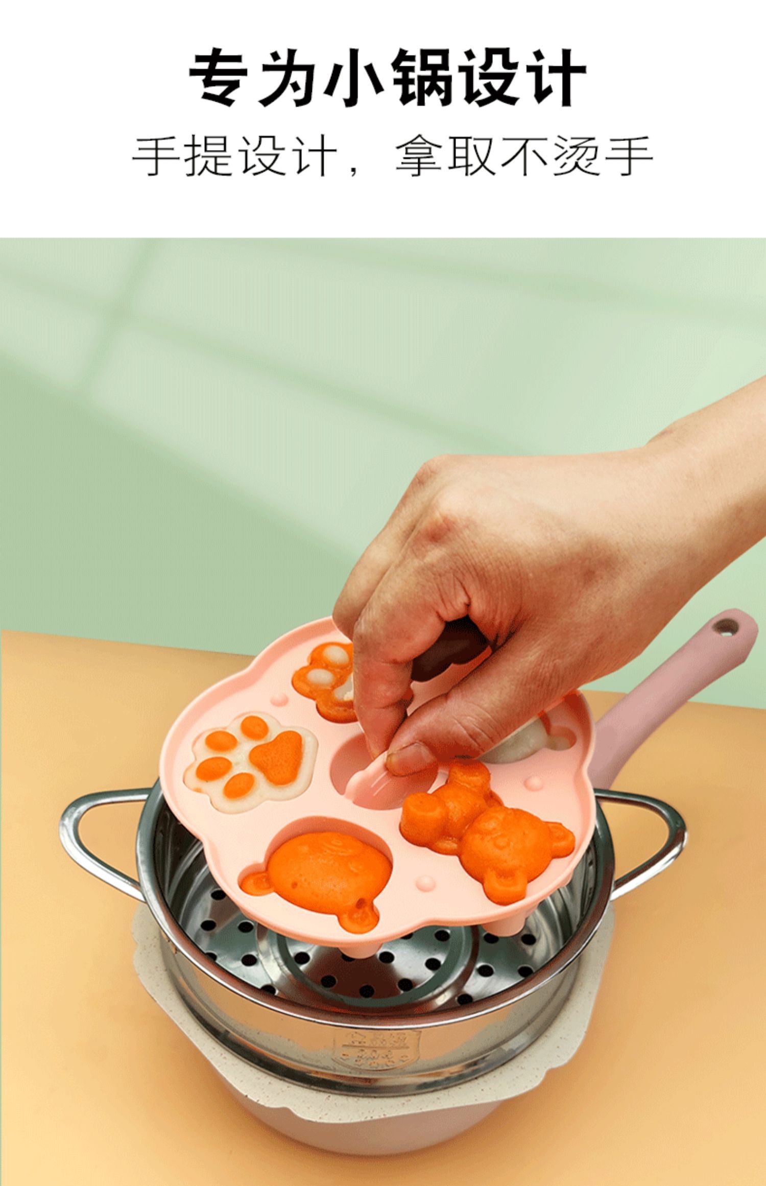带盖 硅胶米糕模 猫爪形 宝宝辅食硅胶模具 蒸糕米糕奶酪棒果冻模