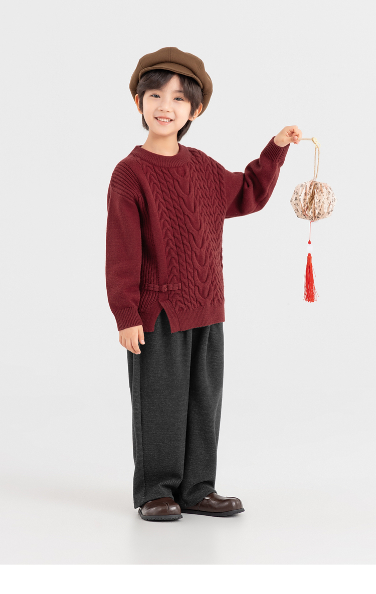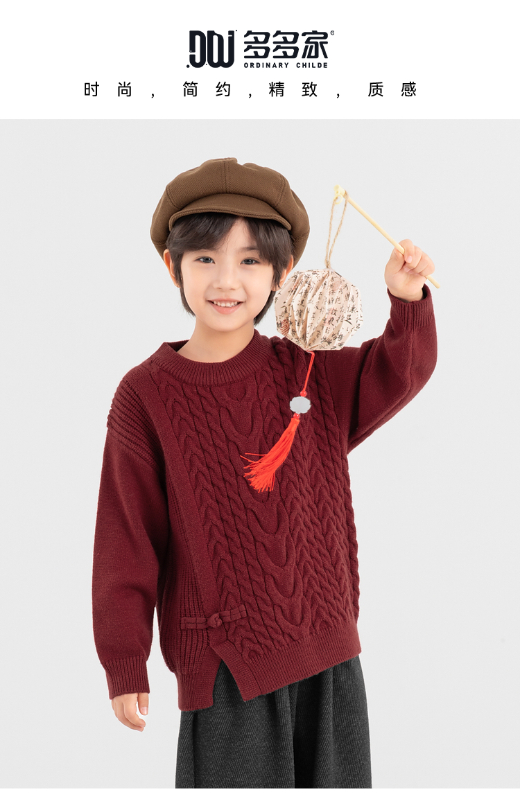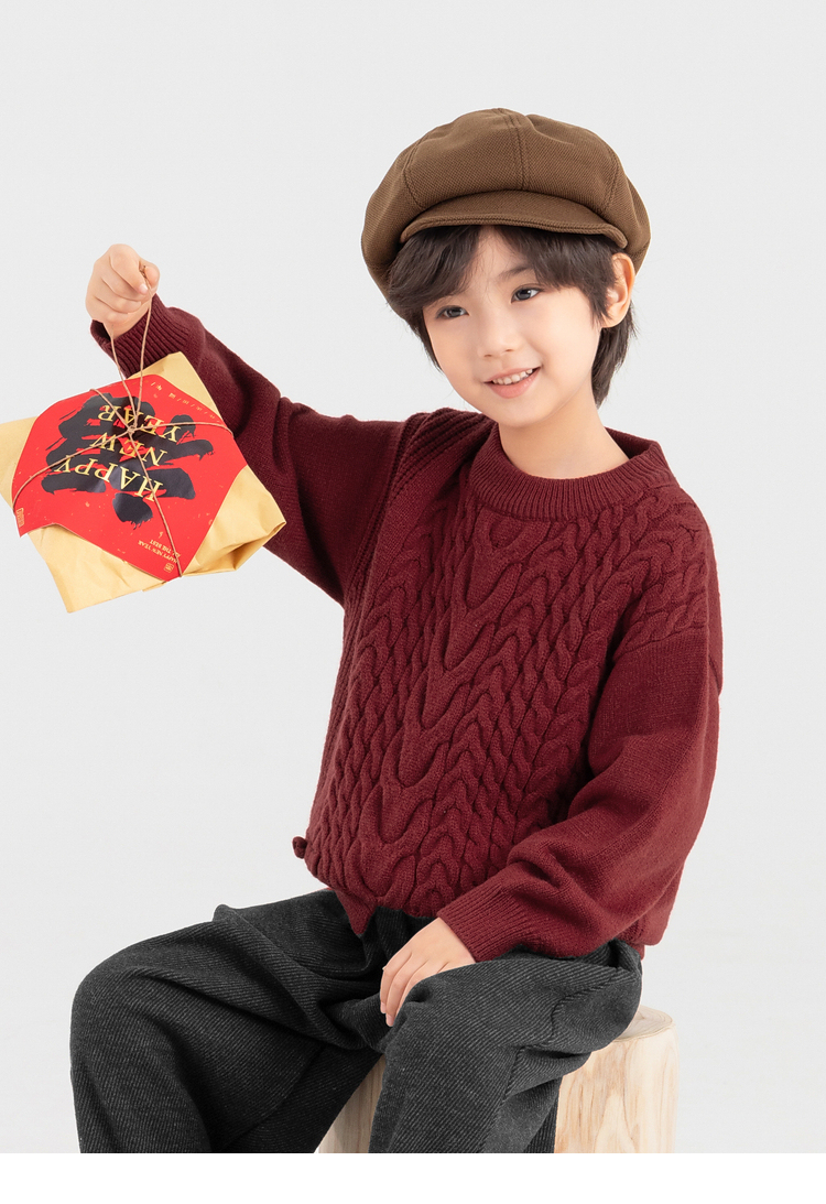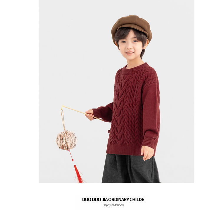 【件件底价,童装双倍积分】多多家男童毛衣红色秋冬季2025冬装新款儿童绞花保暖圆领男孩上衣11283