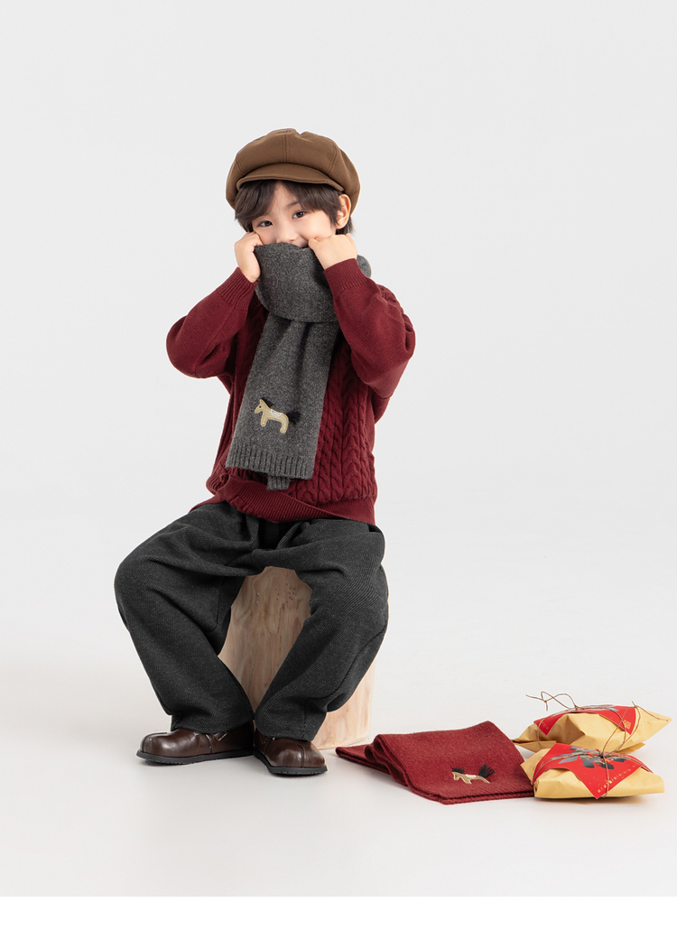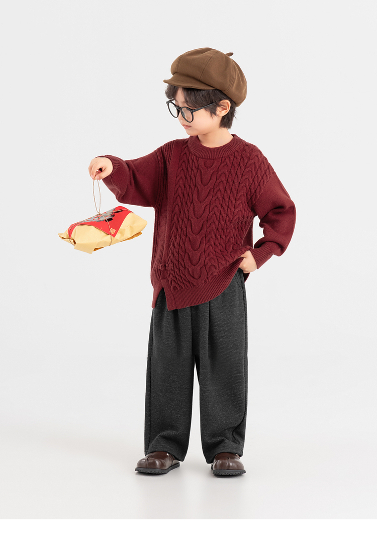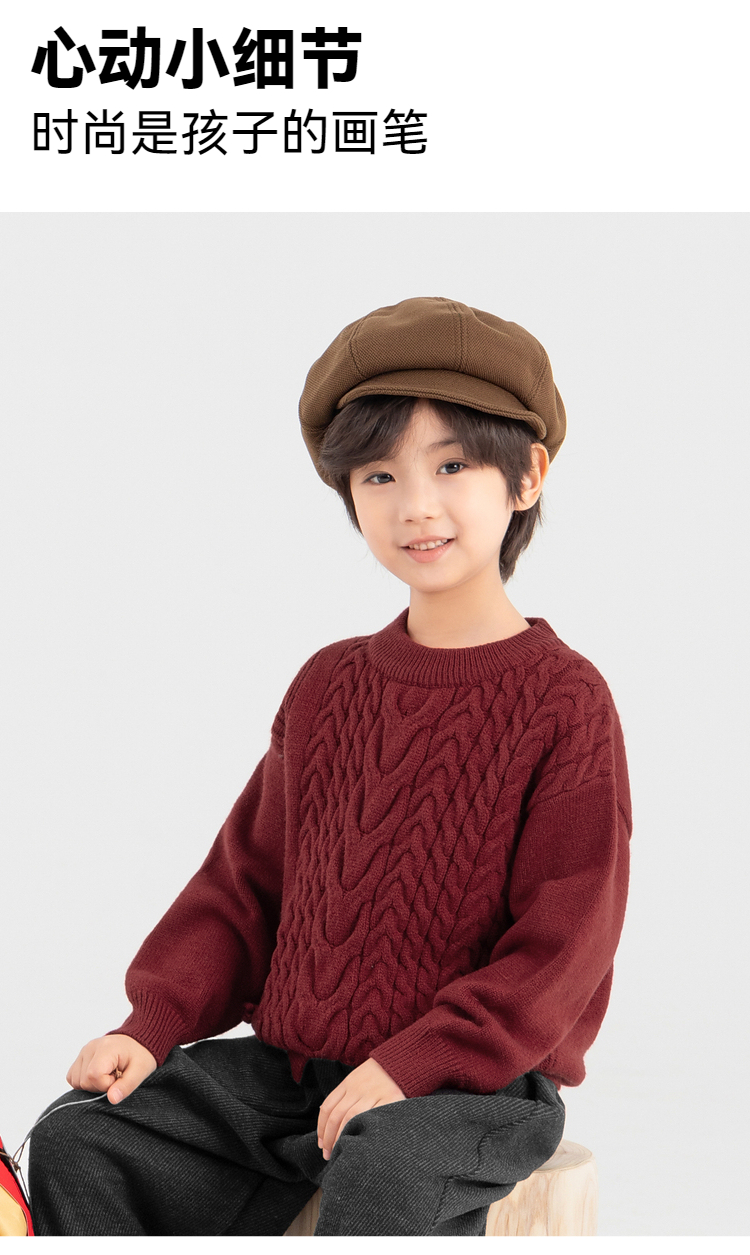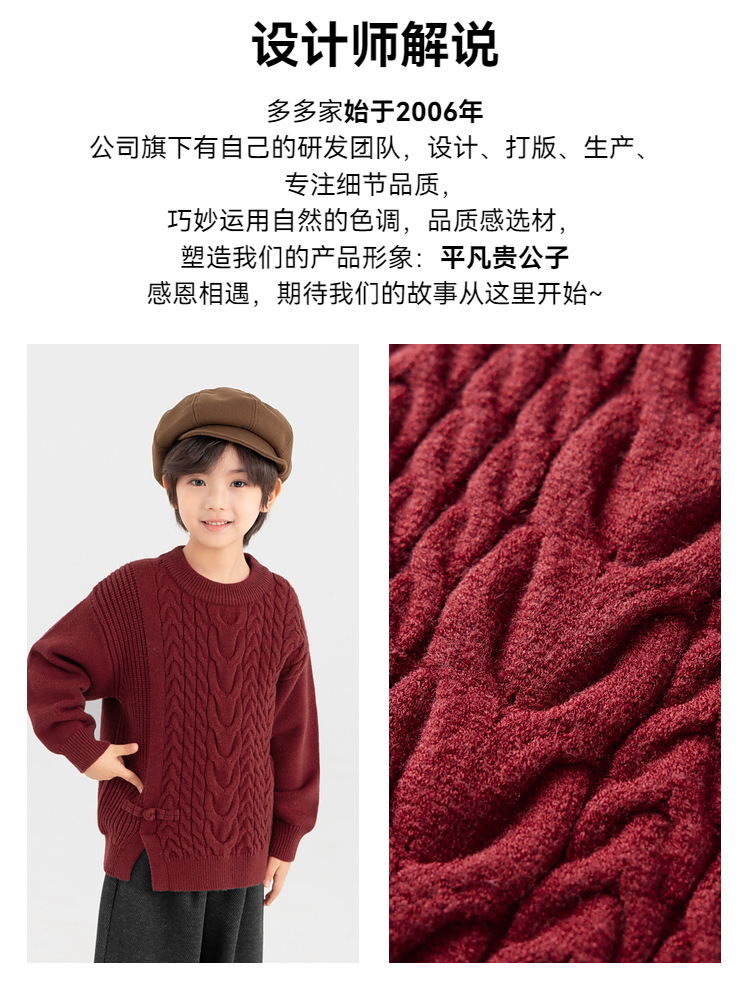【件件底价,童装双倍积分】多多家男童毛衣红色秋冬季2025冬装新款儿童绞花保暖圆领男孩上衣11283