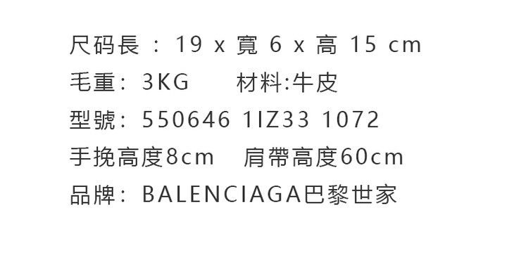 BALENCIAGA 巴黎世家 女士粒面小牛皮字母徽标印花提挎包 黑色 550646 1IZ33 1072