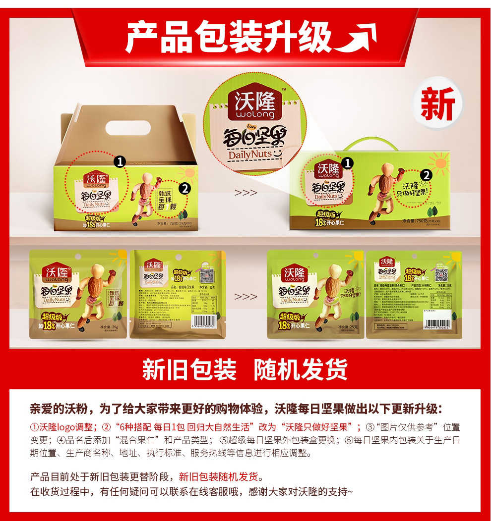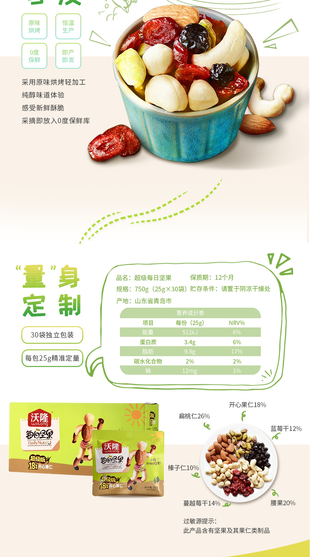 沃隆 每日坚果超级款750g/30袋 含18%美国开心果仁进口原料原味扁桃仁腰果榛子仁