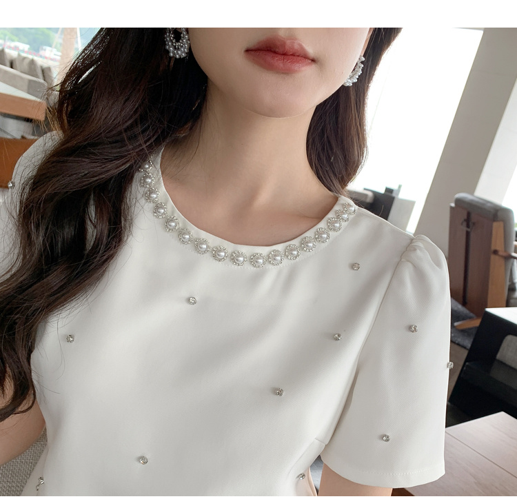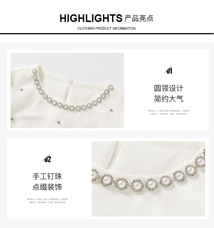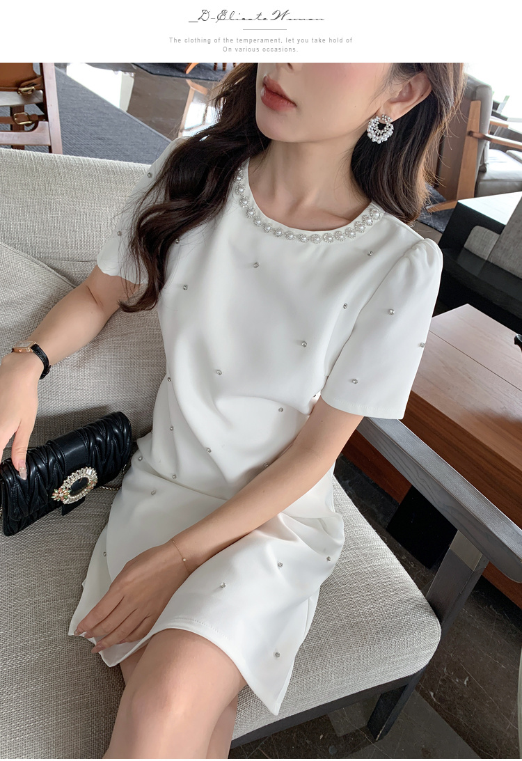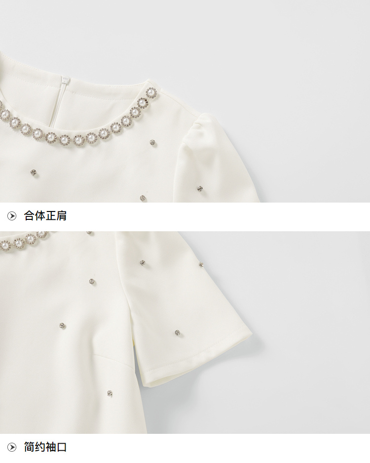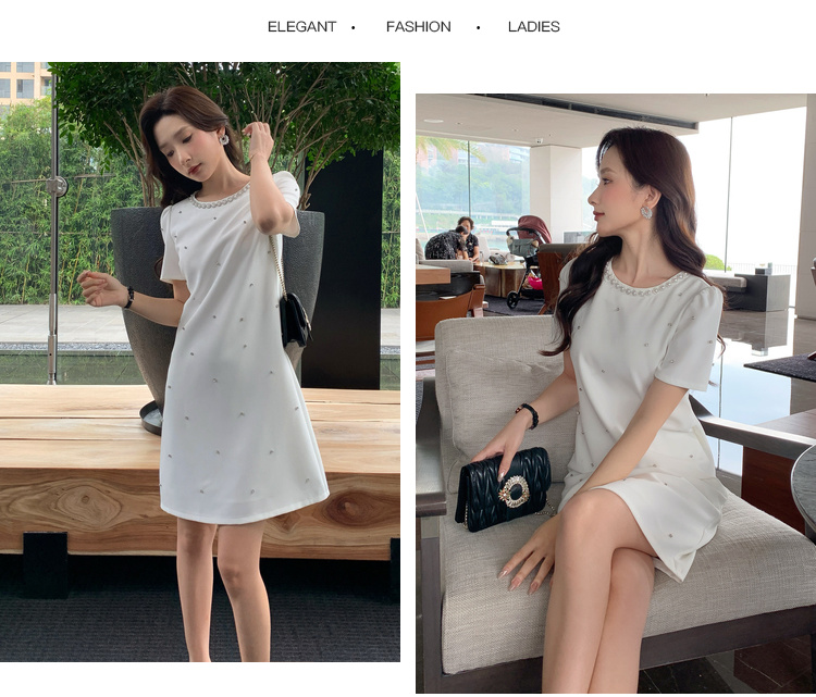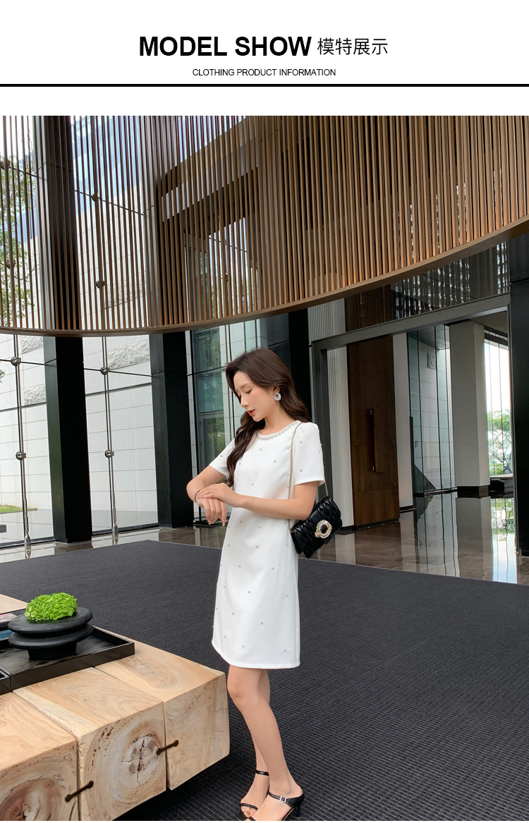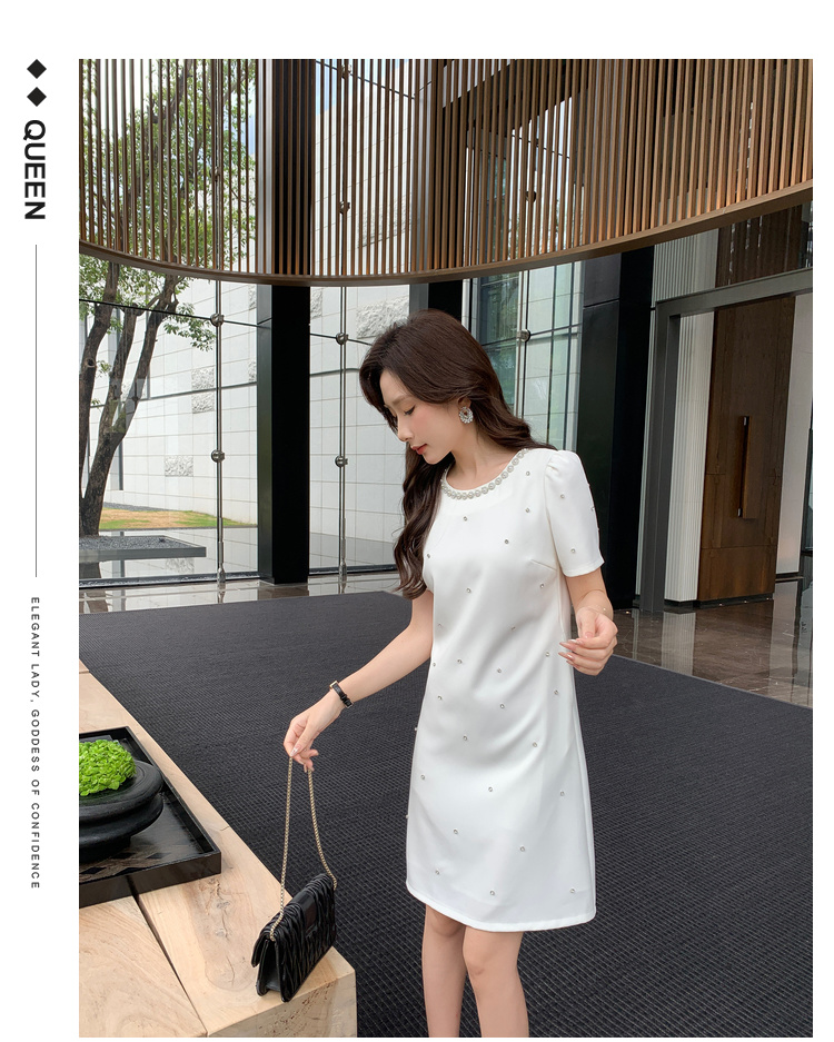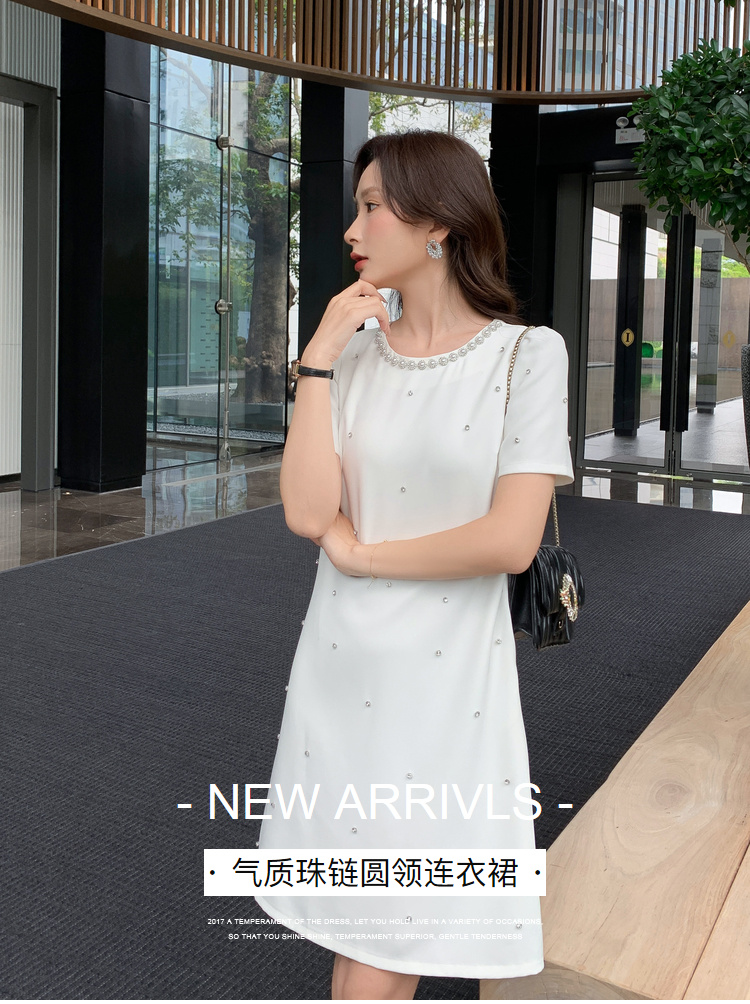 【清仓超15天不保价】[奢姿轻奢系列]珠链圆领连衣裙大码女装夏季新款胖妹妹钉钻裙子8942826343【1】