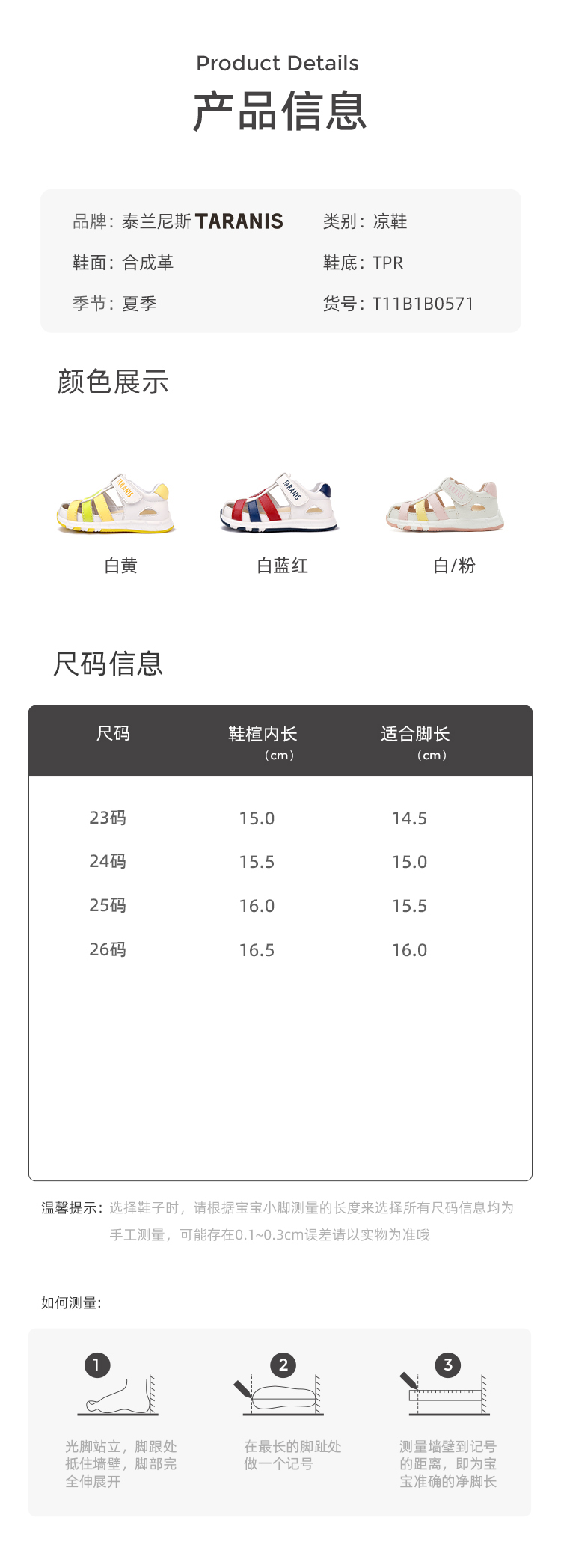 【特价秒杀149,原价229】泰兰尼斯夏季婴童段舒适透气小清新凉鞋T11B1B0571