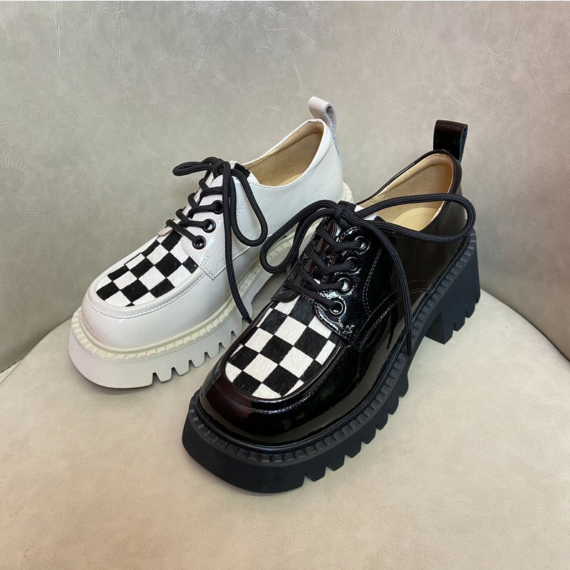 IUIU SECOND2022春季新款春季新款棋牌格JK制服鞋厚底增高复古英伦风松糕鞋