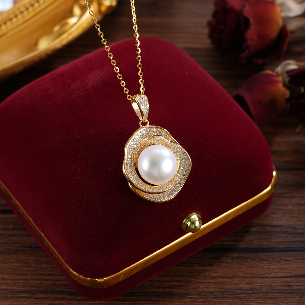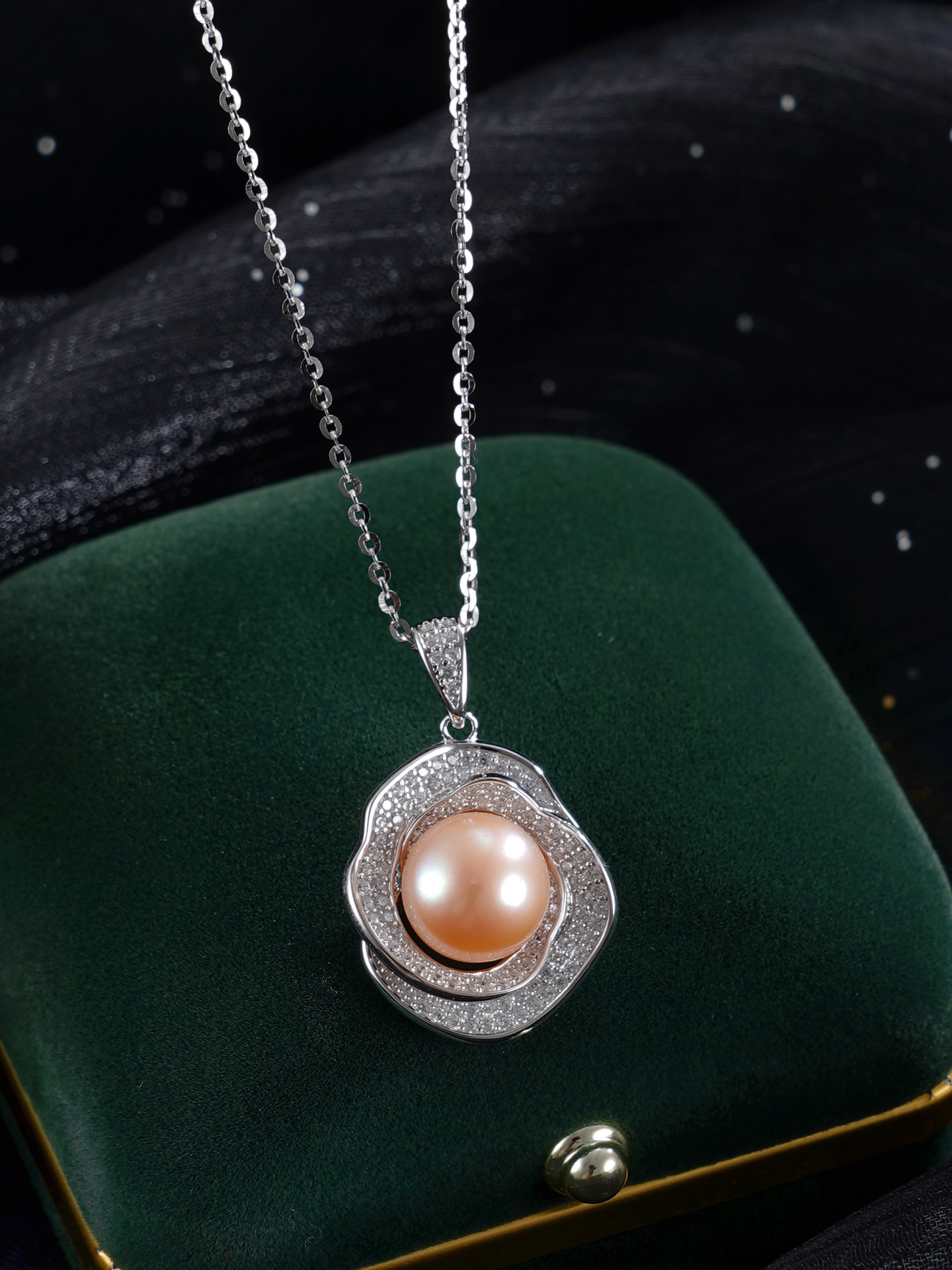 子佩集【玫瑰心语】银S925珍珠惜王妃套链【P1824】9.8mm珠双色玫瑰花朵2601