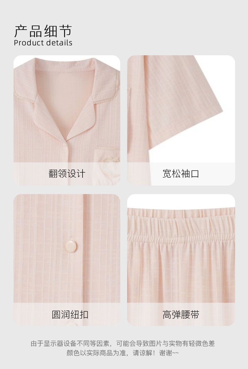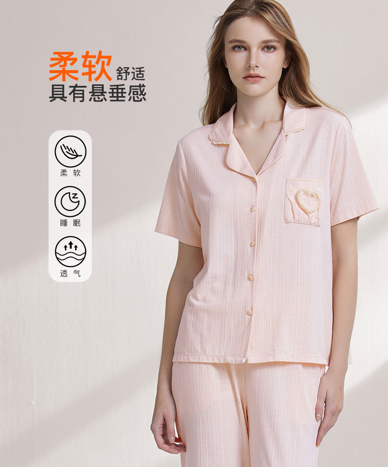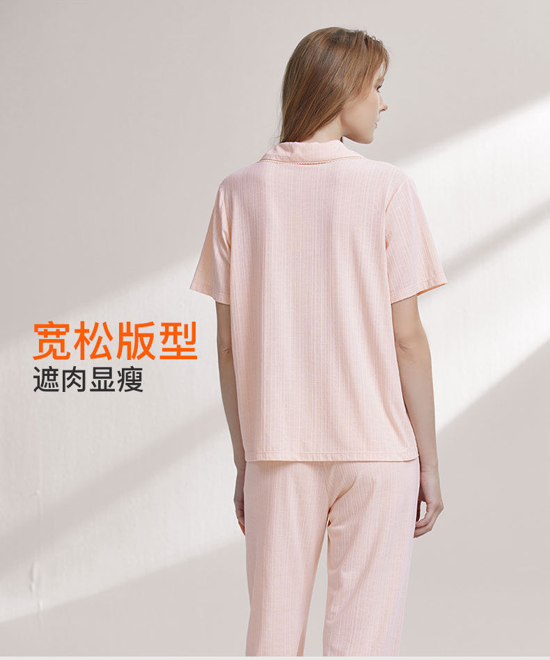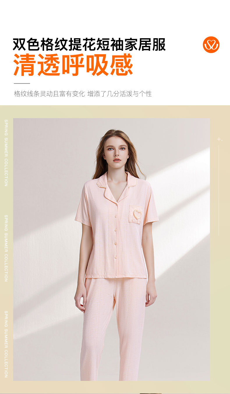 【7.5折限时特惠】【秀黛】女翻领针织提花短袖套装锦棉几何格柔雾双色格纹透气女士夏季短袖睡衣家居服W2551034T【门店同款】