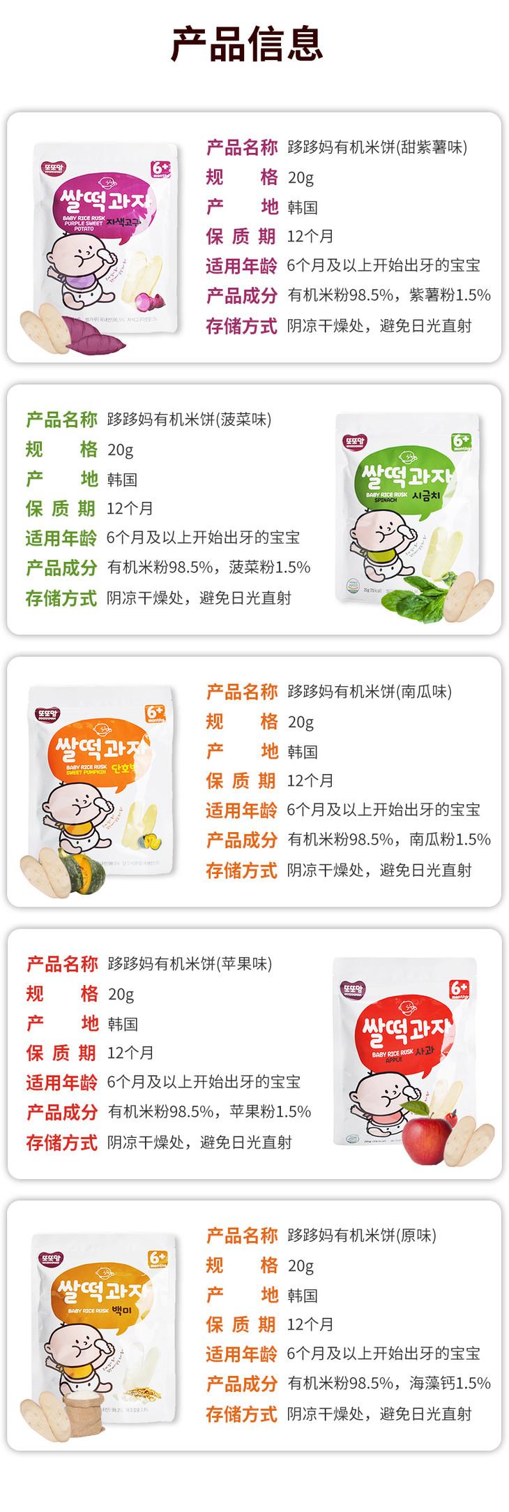 韩国进口跢跢妈DDODDOMAM米饼20g
