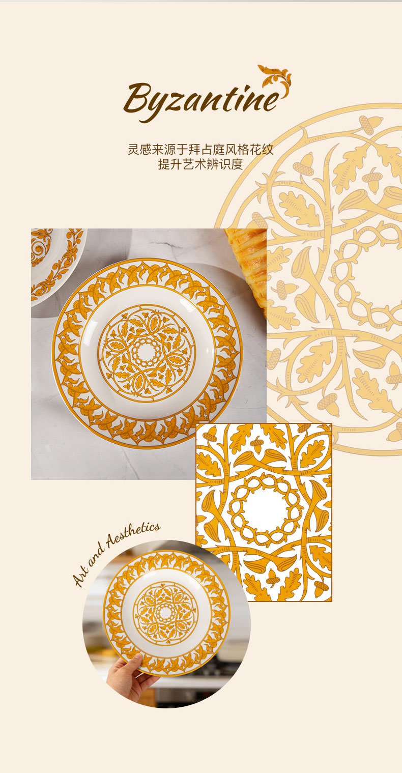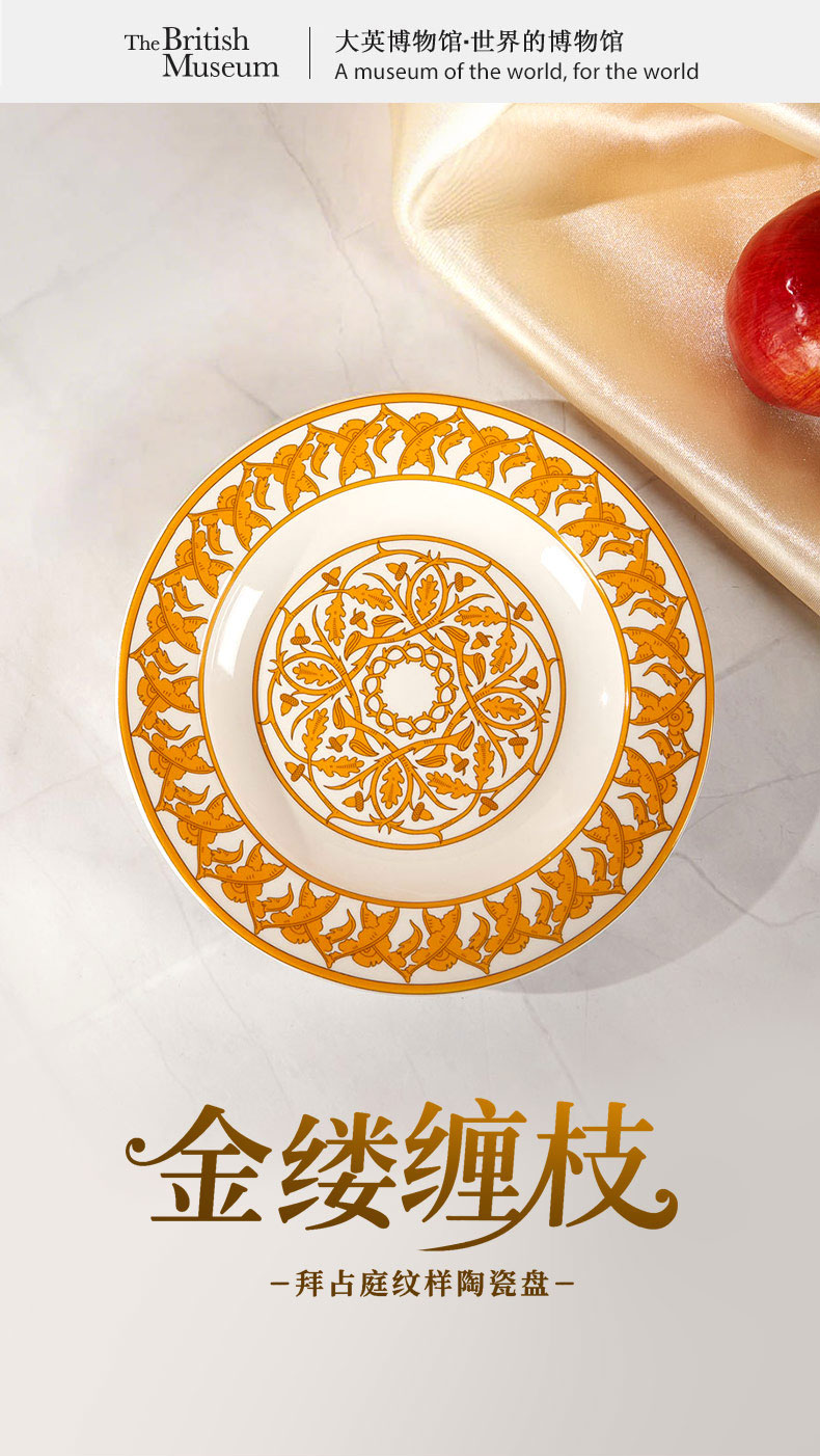 大英博物馆 马约里卡系列 拜占庭纹样 陶瓷盘-金缕缠枝