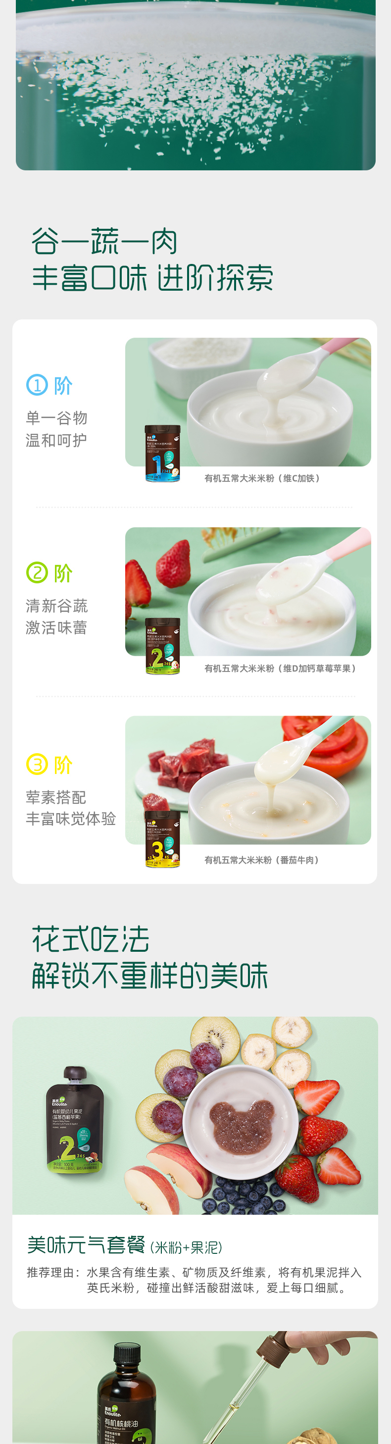 英氏1-3阶有机五常大米营养米粉3口味罐装248g