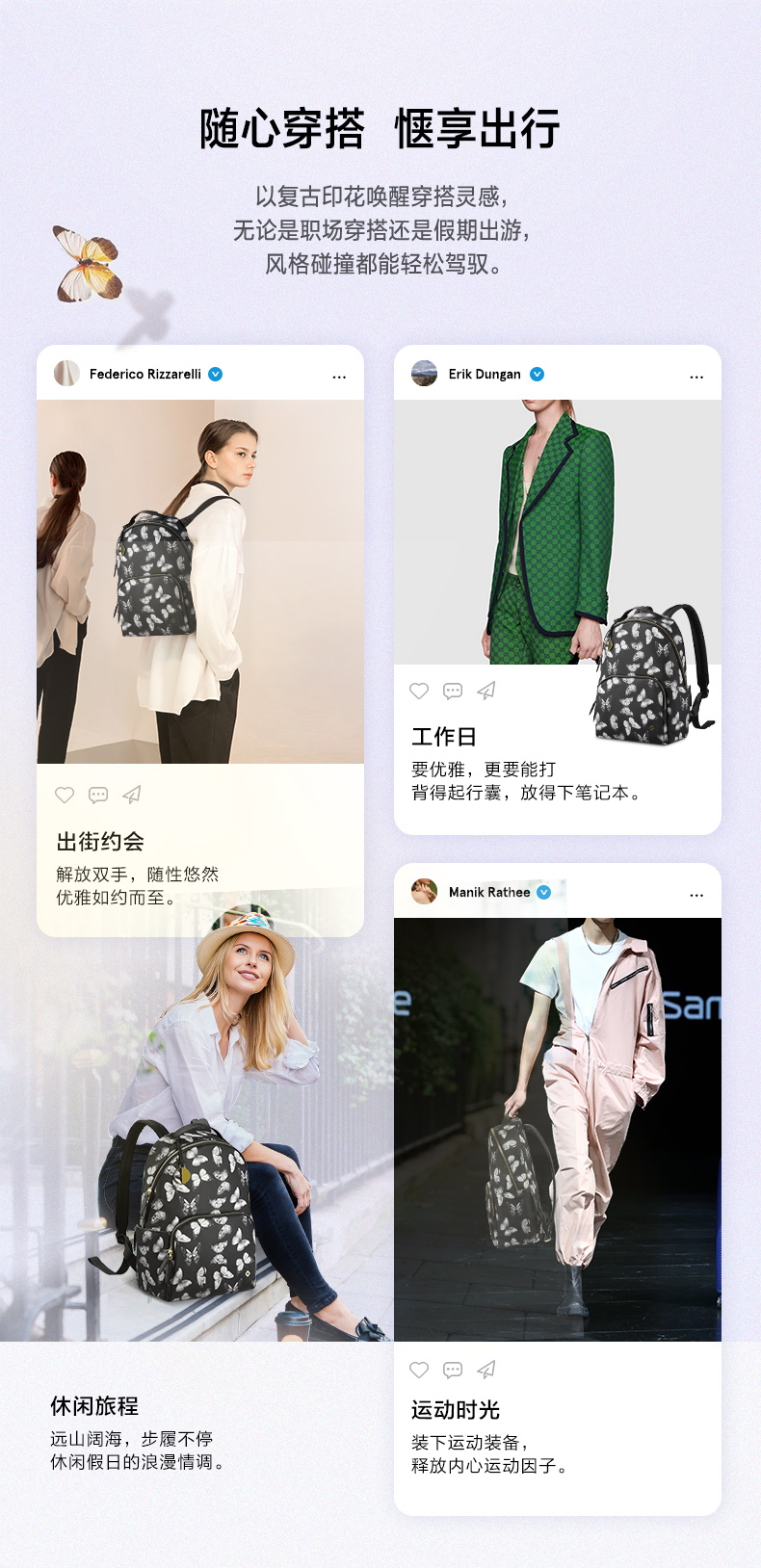 新秀丽双肩包女 时尚潮流书包印花背包NO3