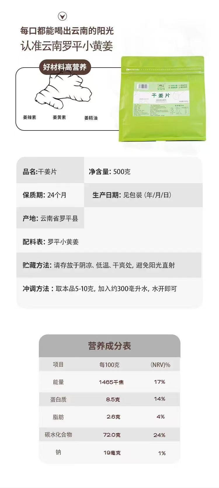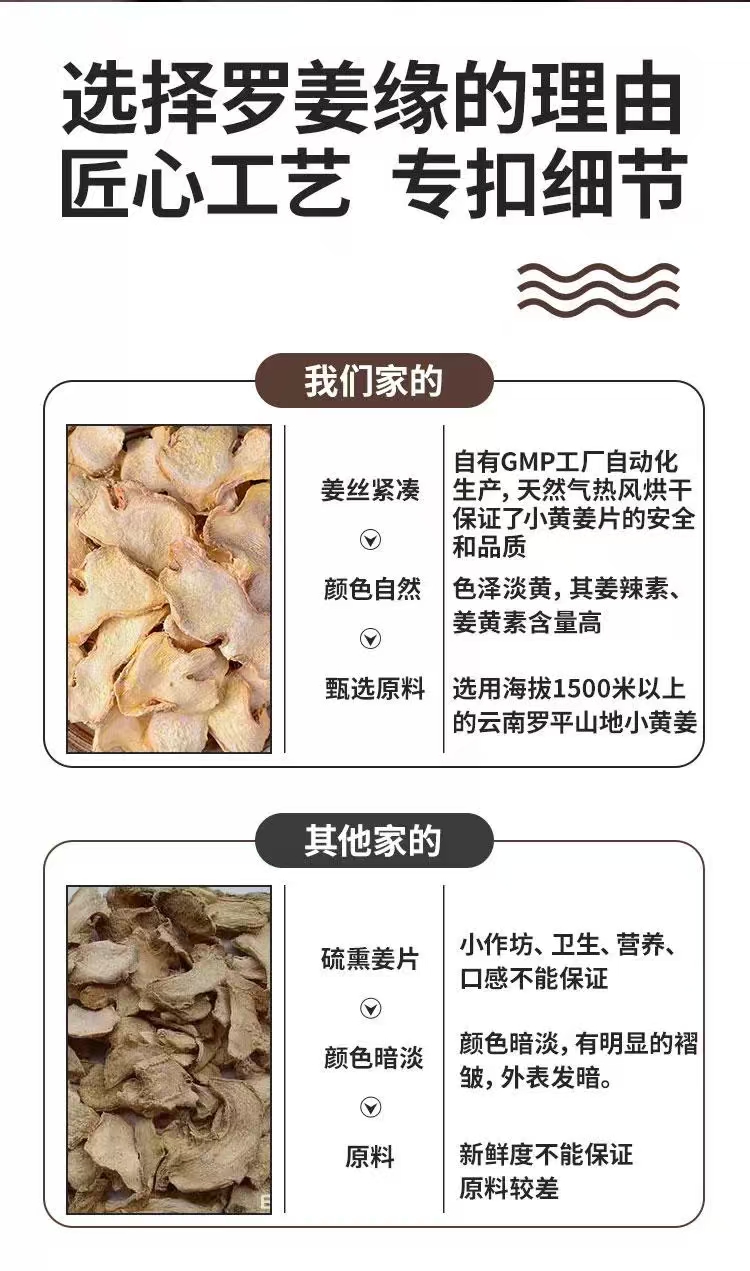 罗姜缘云南罗平小黄姜干姜片真材实料姜味浓郁500g/袋【答摩专属】