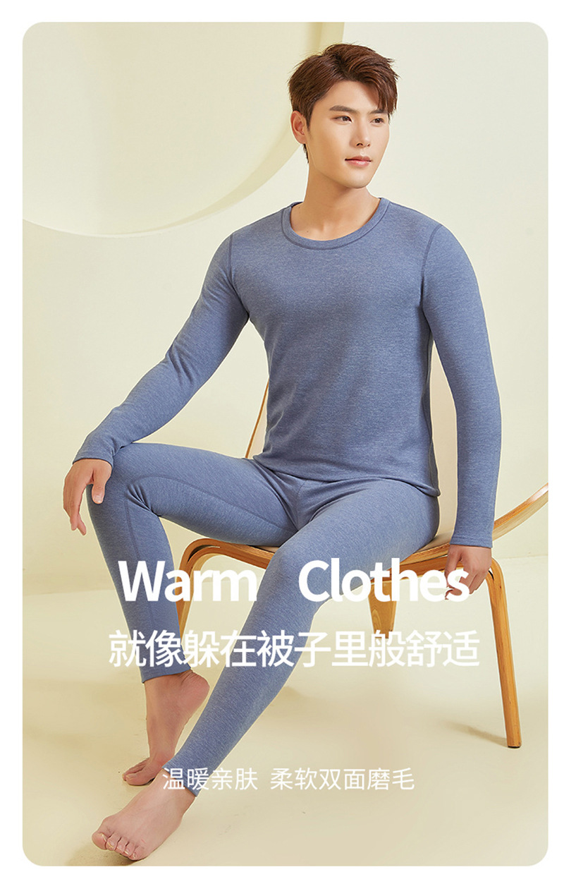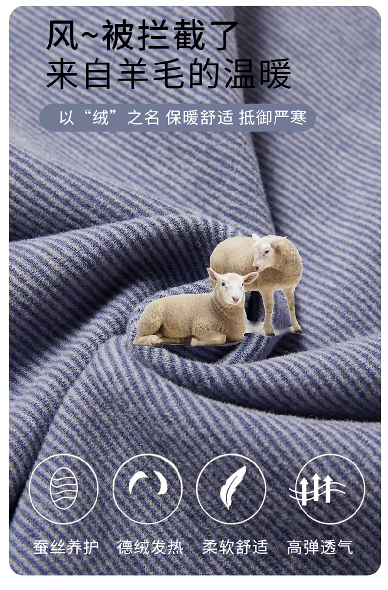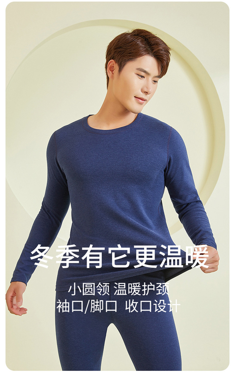 【羊毛蚕丝德绒男内衣】德绒保暖内衣良品圆领男士秋衣秋裤套装羊毛蚕丝加厚新款