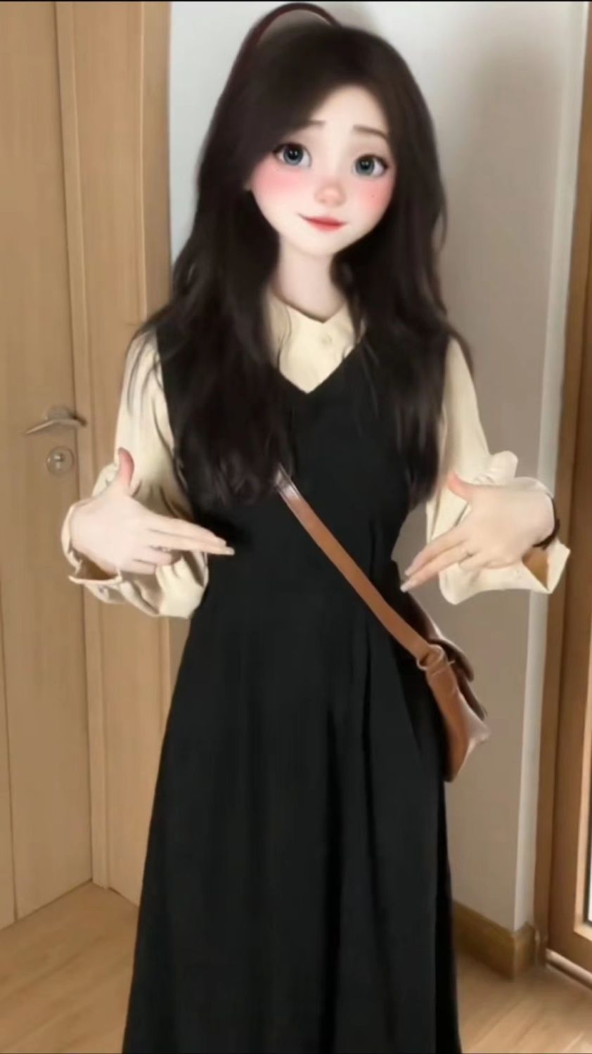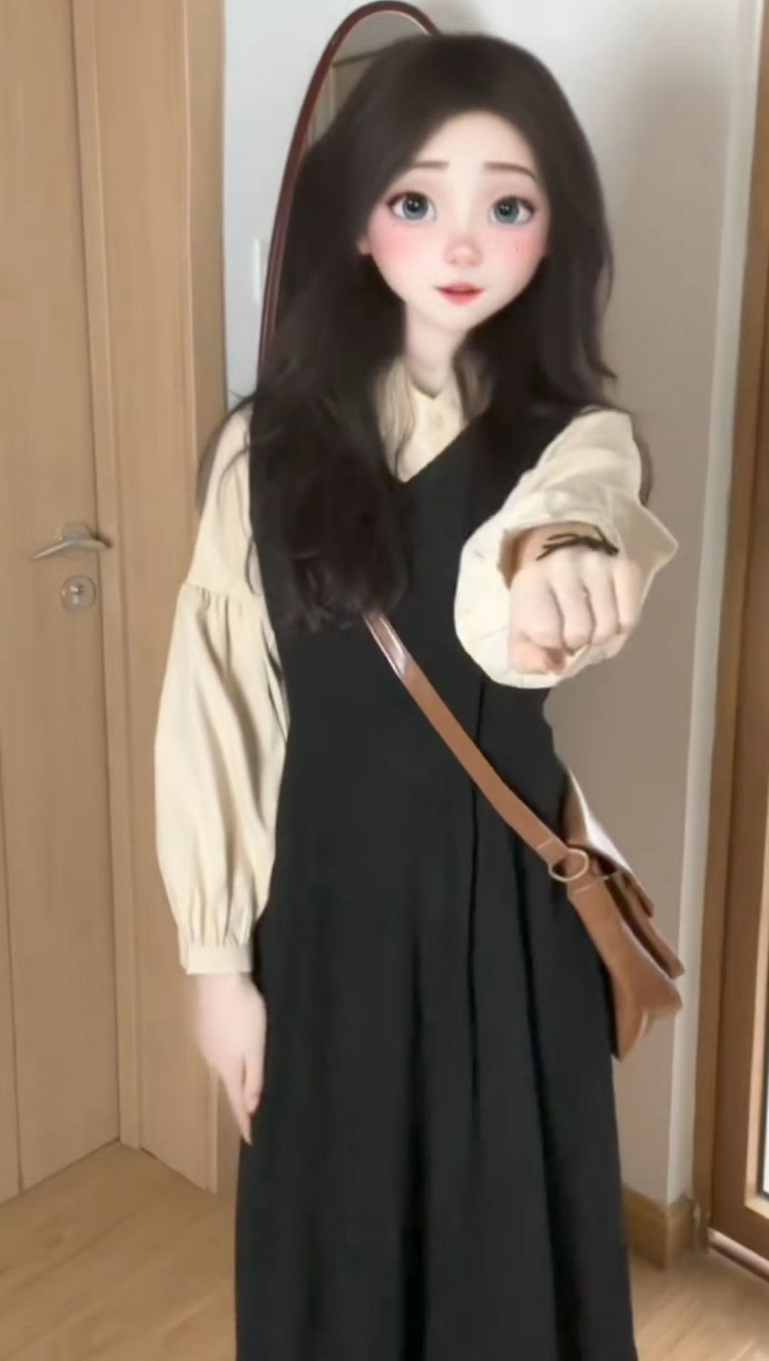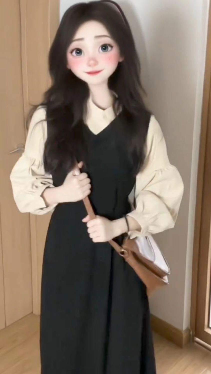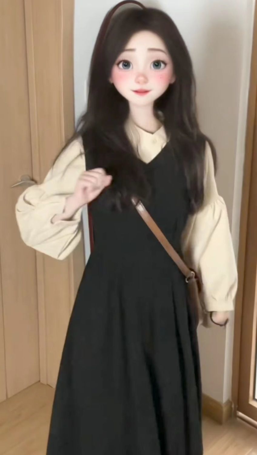春秋季2025【新款黑色背心 连衣裙子女装】新年长裙 小个子穿搭 一整套装