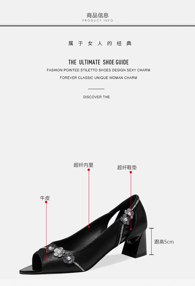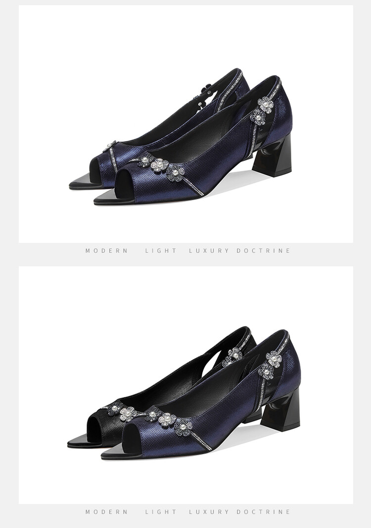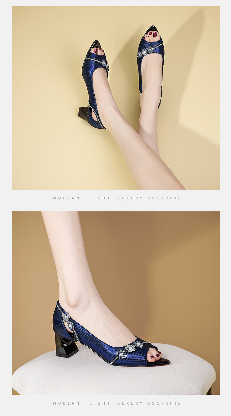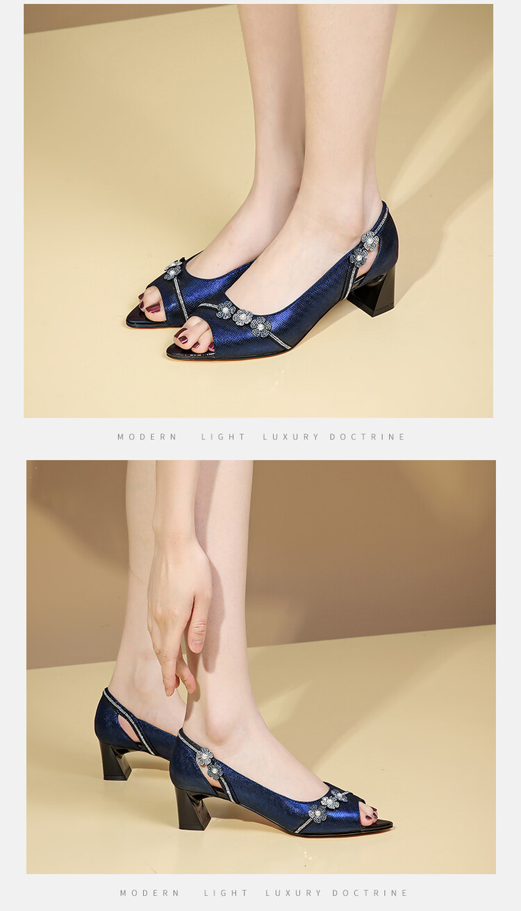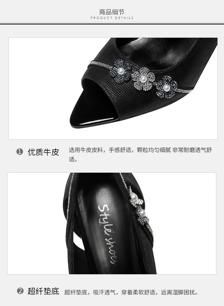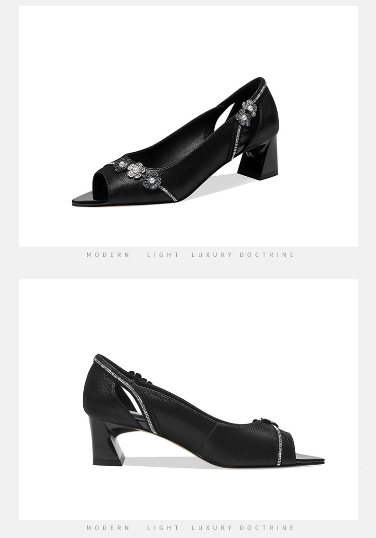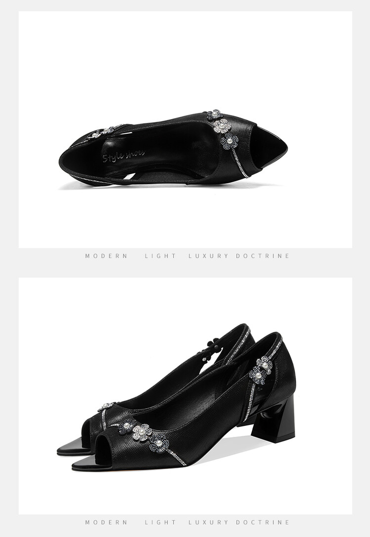 时尚百搭,鱼嘴花朵真皮凉鞋GLS368