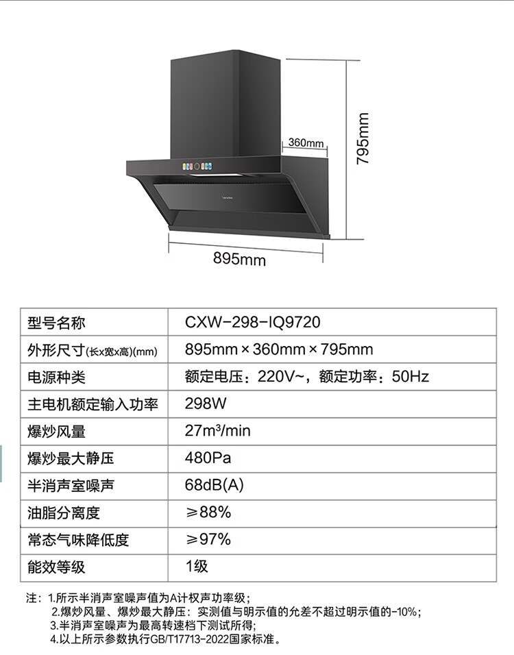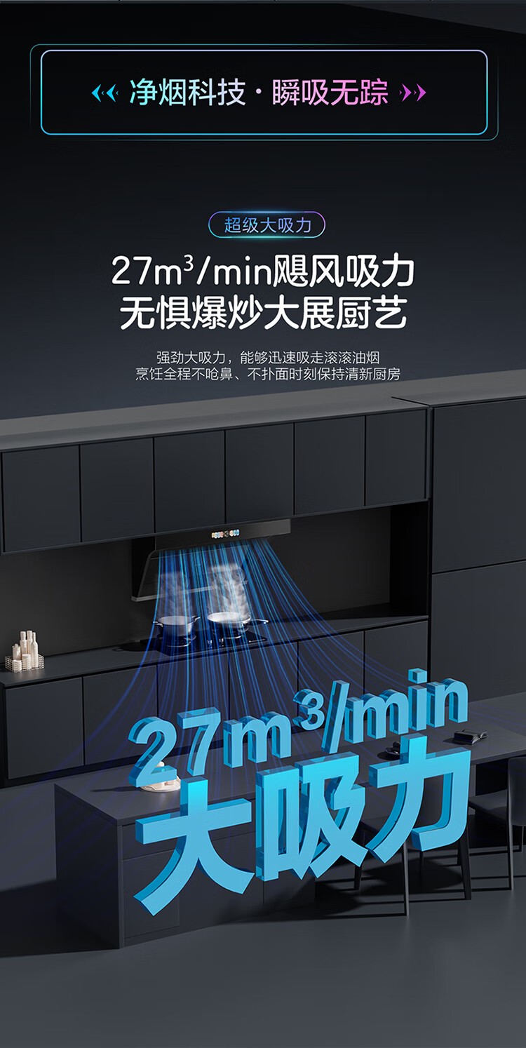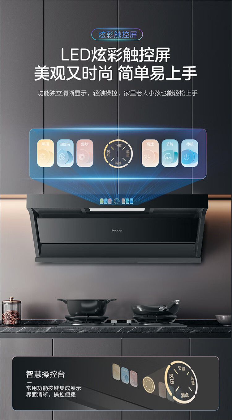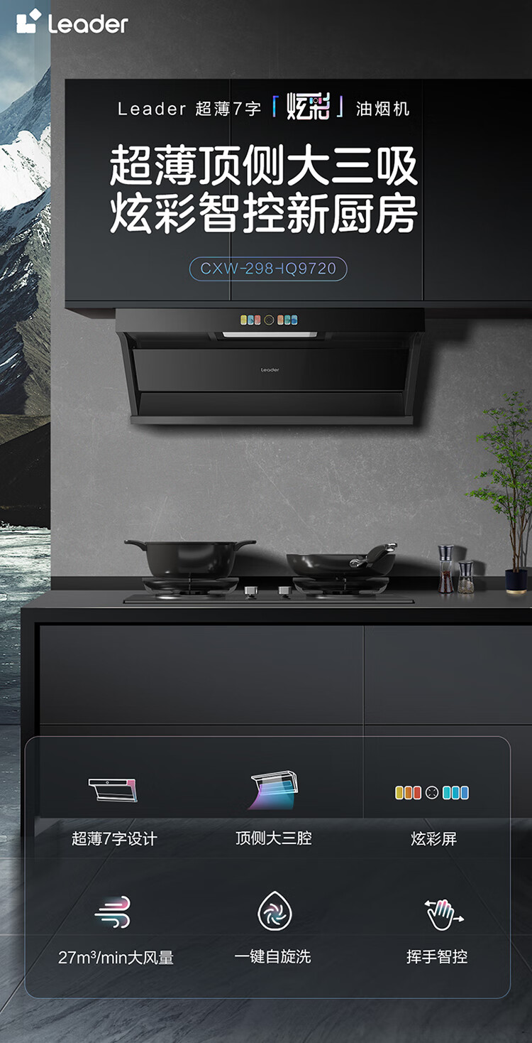 统帅Leader 顶侧双吸 27吸力 新7字顶侧速拢 不跑烟 炫彩触控屏 一键自旋洗 挥手智控 自清洗 CXW-298-IQ9720
