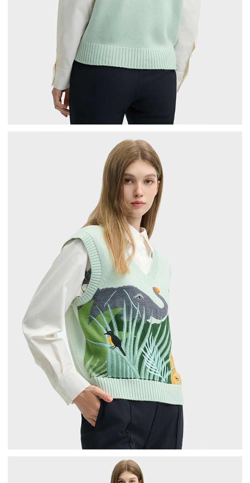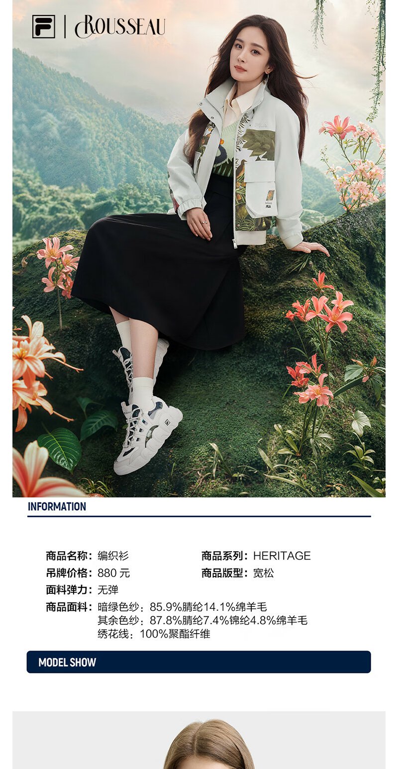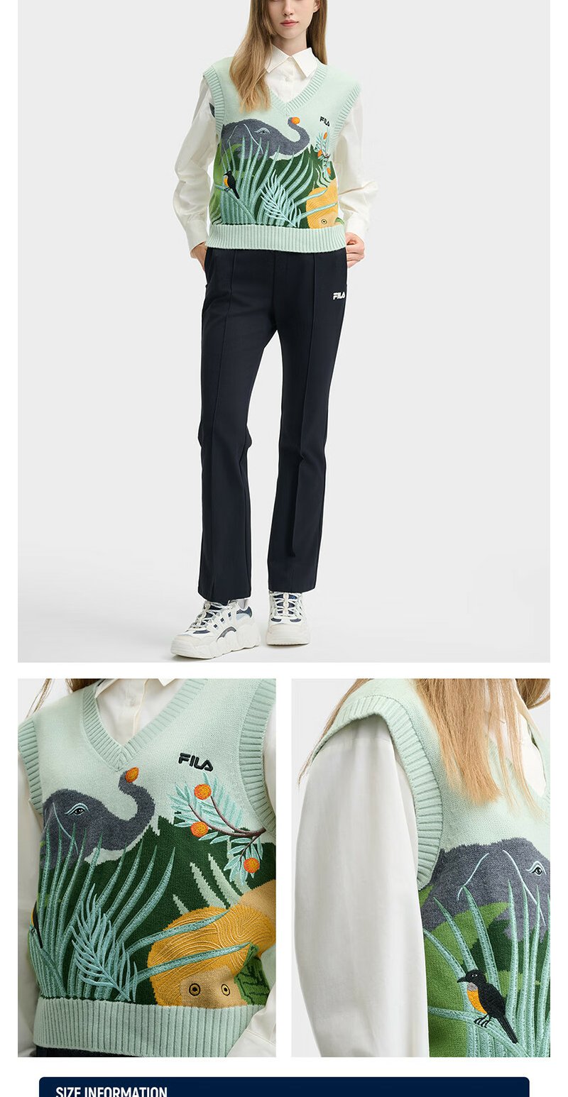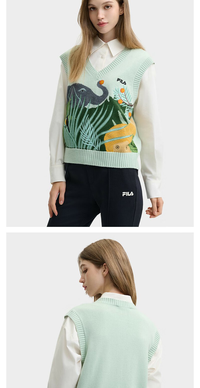 【斐乐】FILAx 卢梭 斐乐女编织衫杨幂同款2024冬新款时尚宽松刺绣毛衣马甲