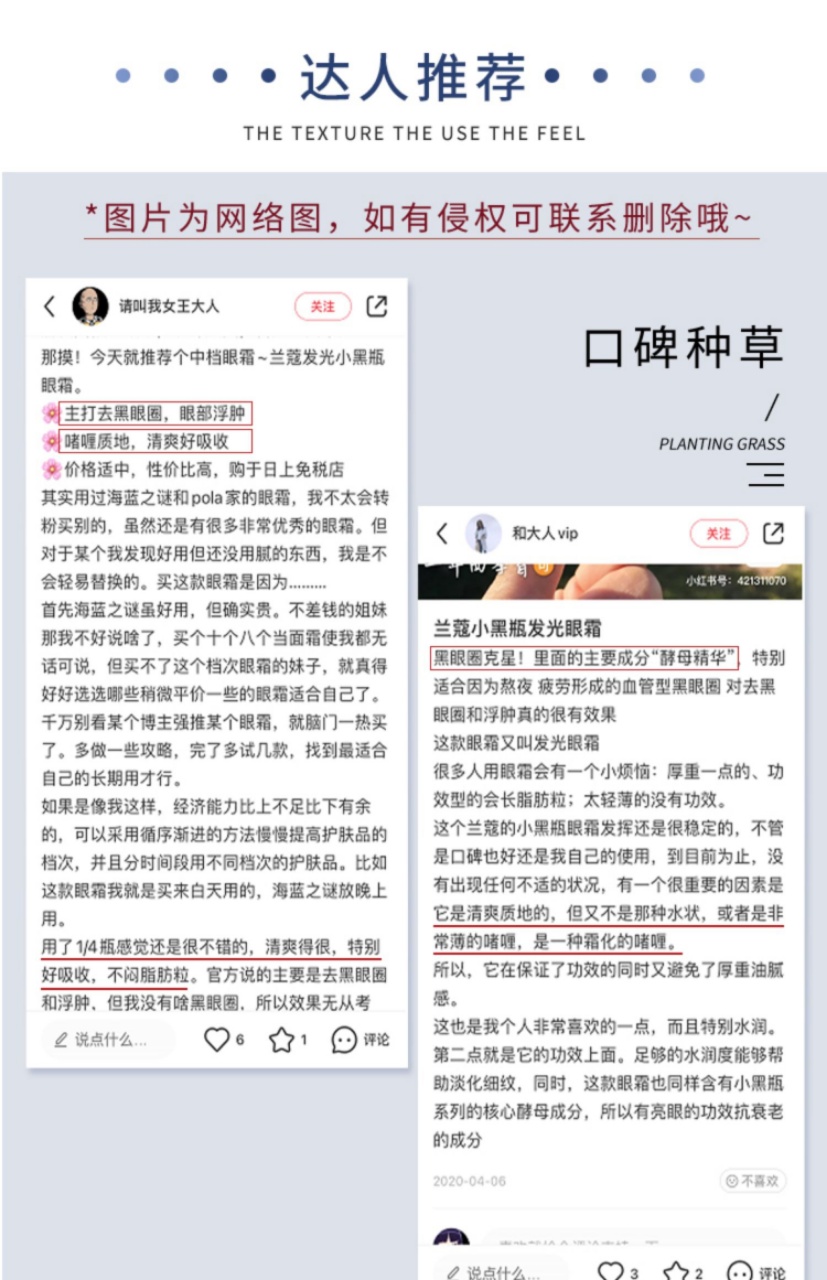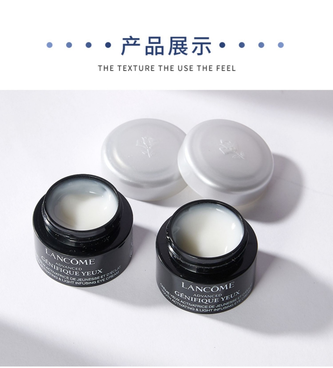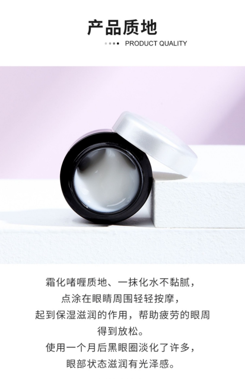 【产品卖点】肤感舒服,水润轻薄,不长脂肪粒!上眼几秒就吸收也不黏腻延展性也好,不用担心会腻腻的蹭到枕头上。白天使用后续上底妆也更贴合,味道好闻又高级,20出头第一次买眼霜不知道选哪款的宝宝可以放心入!不过还是要养成良好的作息呀!早点睡才是根本!