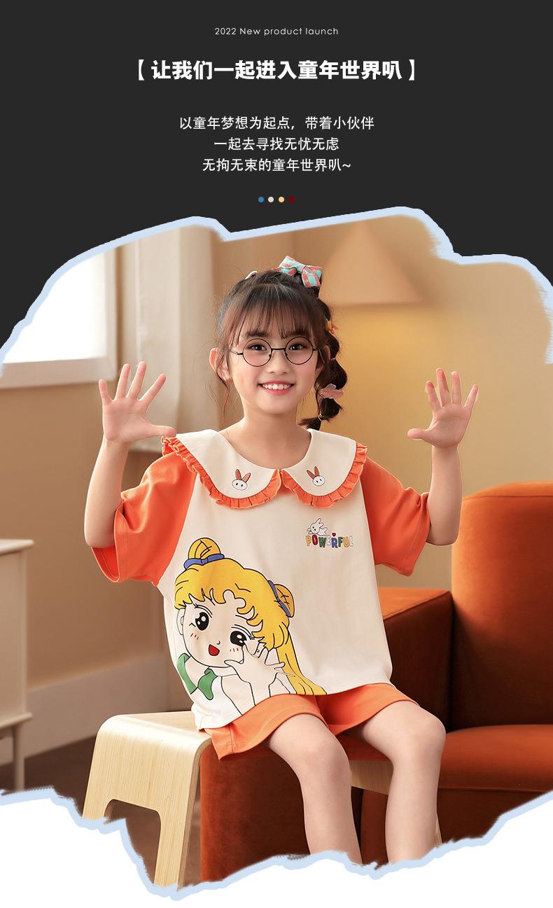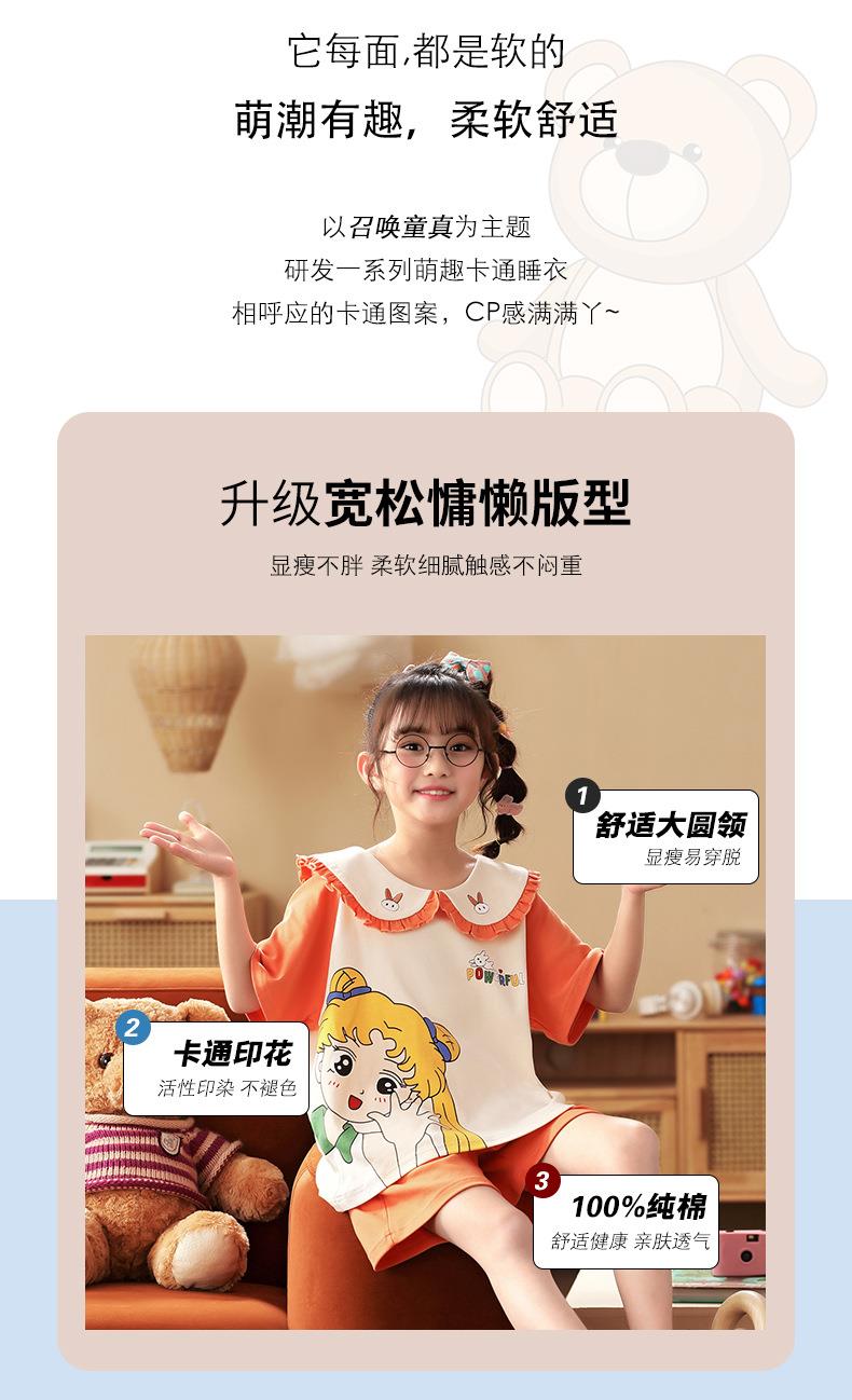 女童睡衣夏季新款短袖纯棉可爱女孩超萌公主娃娃领宝宝夏天家居服