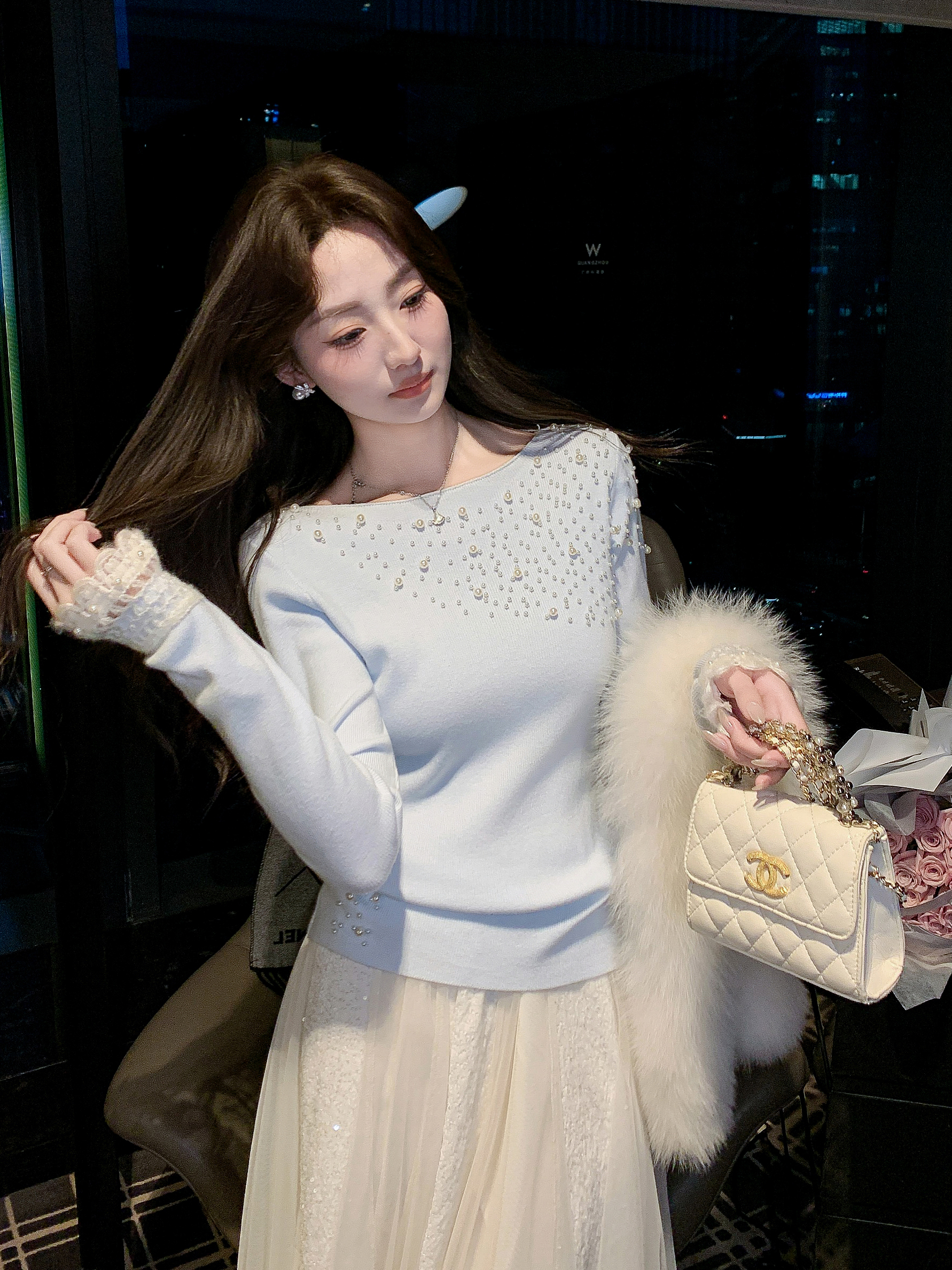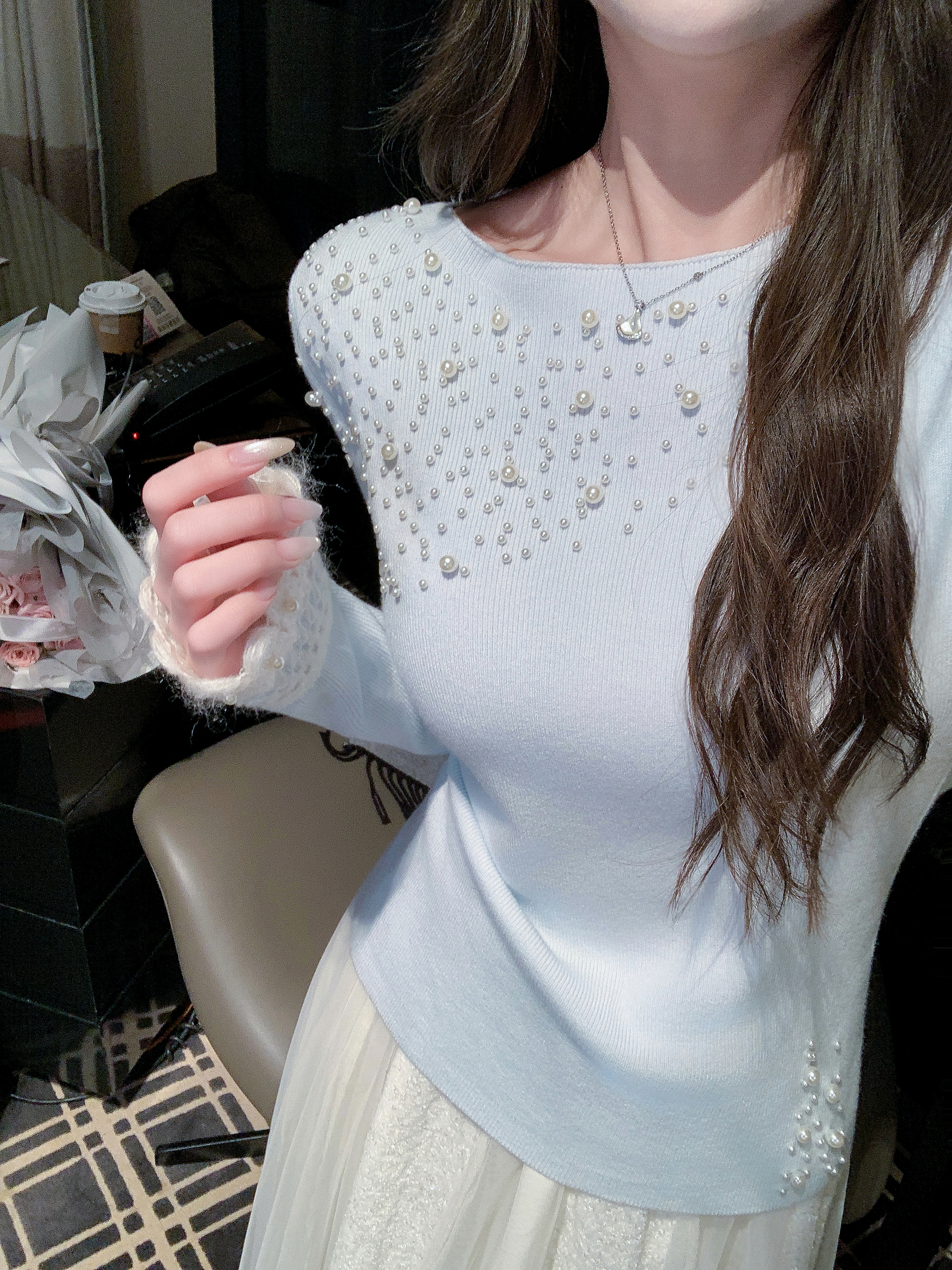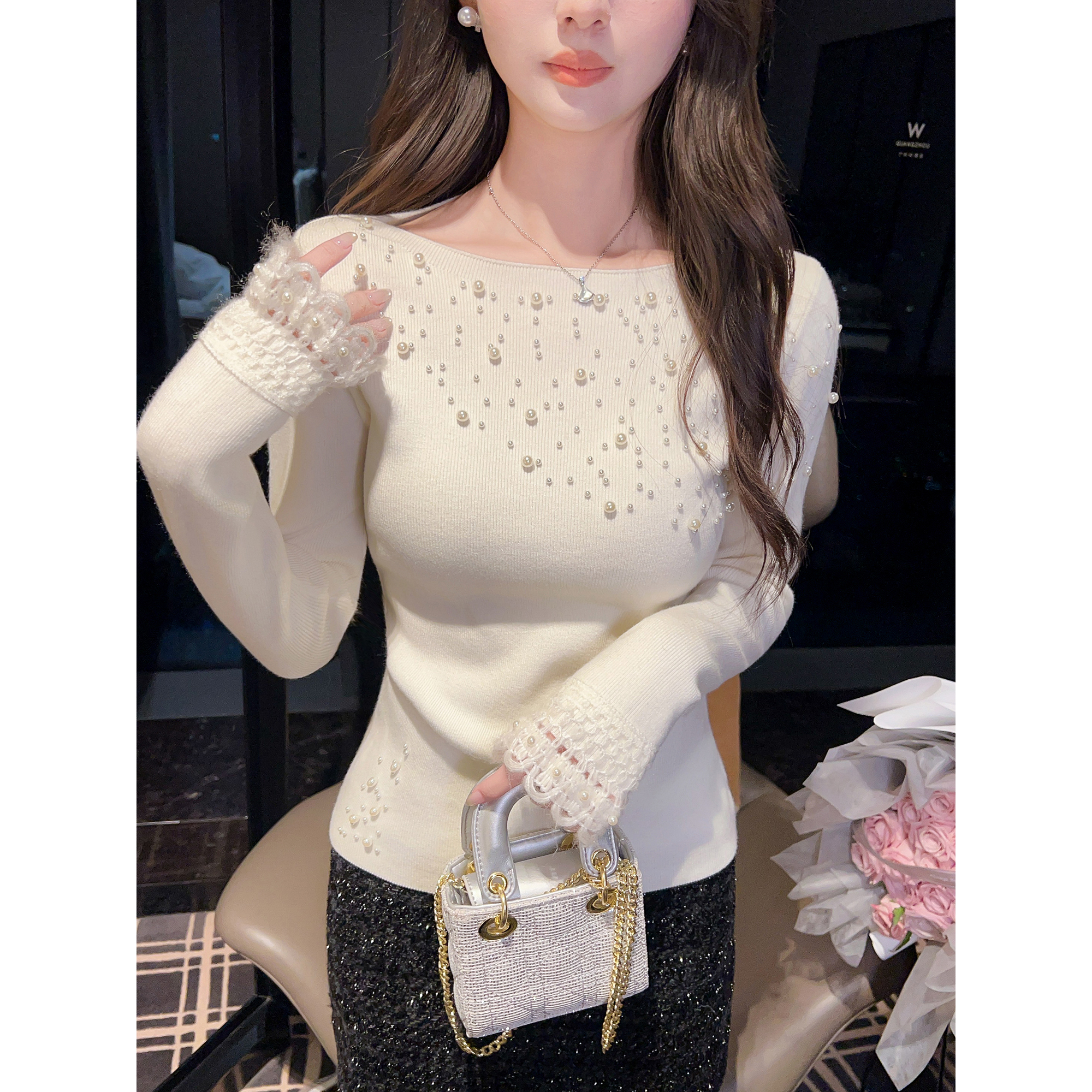 张心子【女神降临】珍珠钉珠针织上衣 U2601018
