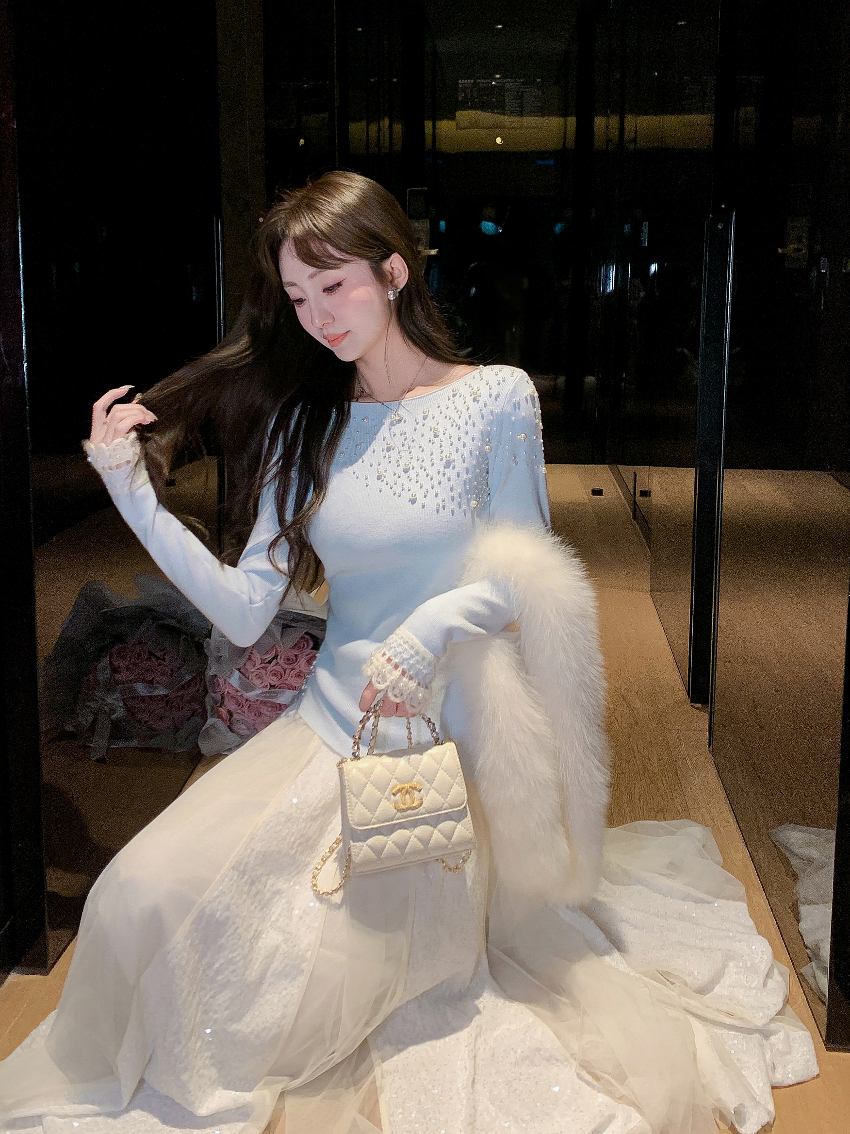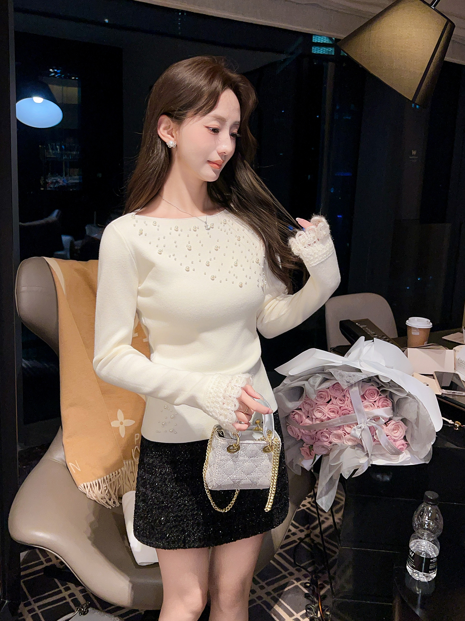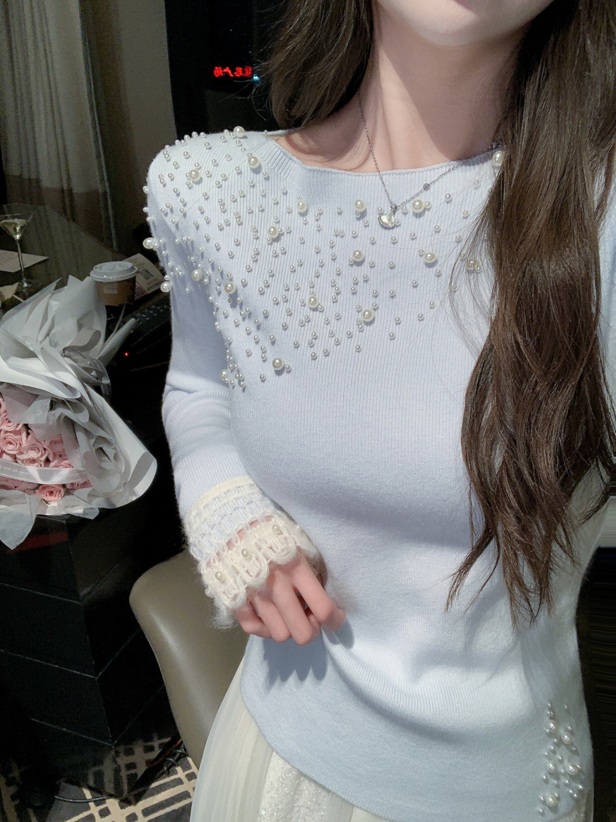张心子【女神降临】珍珠钉珠针织上衣 U2601018