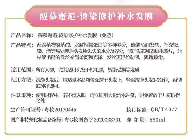 【爆款超低价预售 急单慎拍】醒慕邂逅染烫修护补水发膜滋润柔顺干枯毛躁护发素留香持久女正品