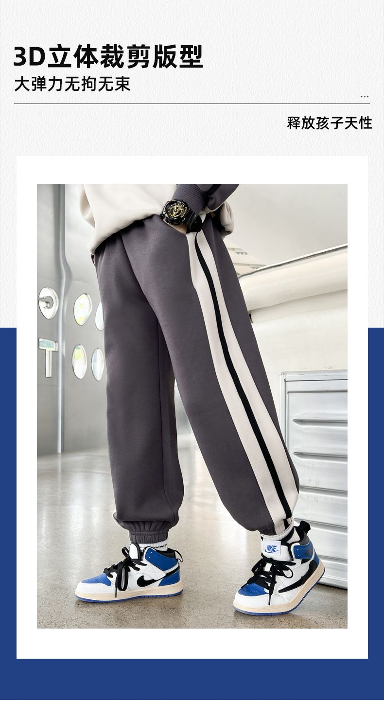 贝田2025新款男童裤子加绒一体绒冬季保暖棉裤儿童酷帅休闲运动裤