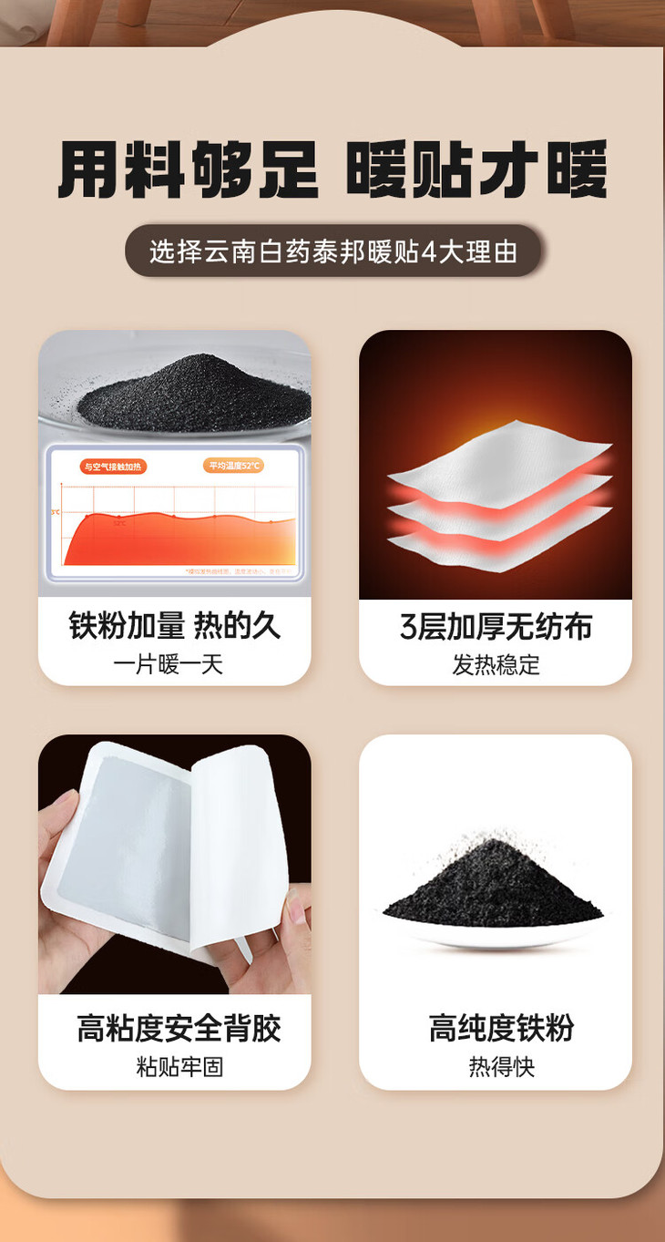 【官方正品】云南白药泰邦暖宝宝暖贴暖身贴防寒女生生理期经期保暖贴暖腰贴