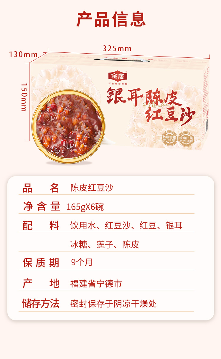 金唐陈皮莲子红豆沙165g*6