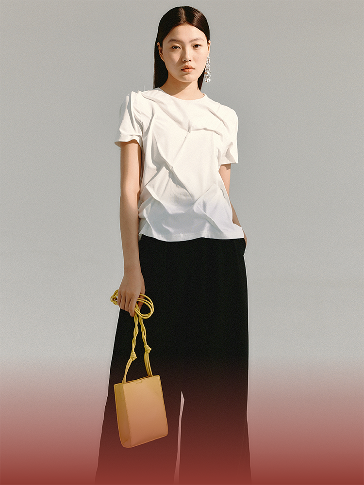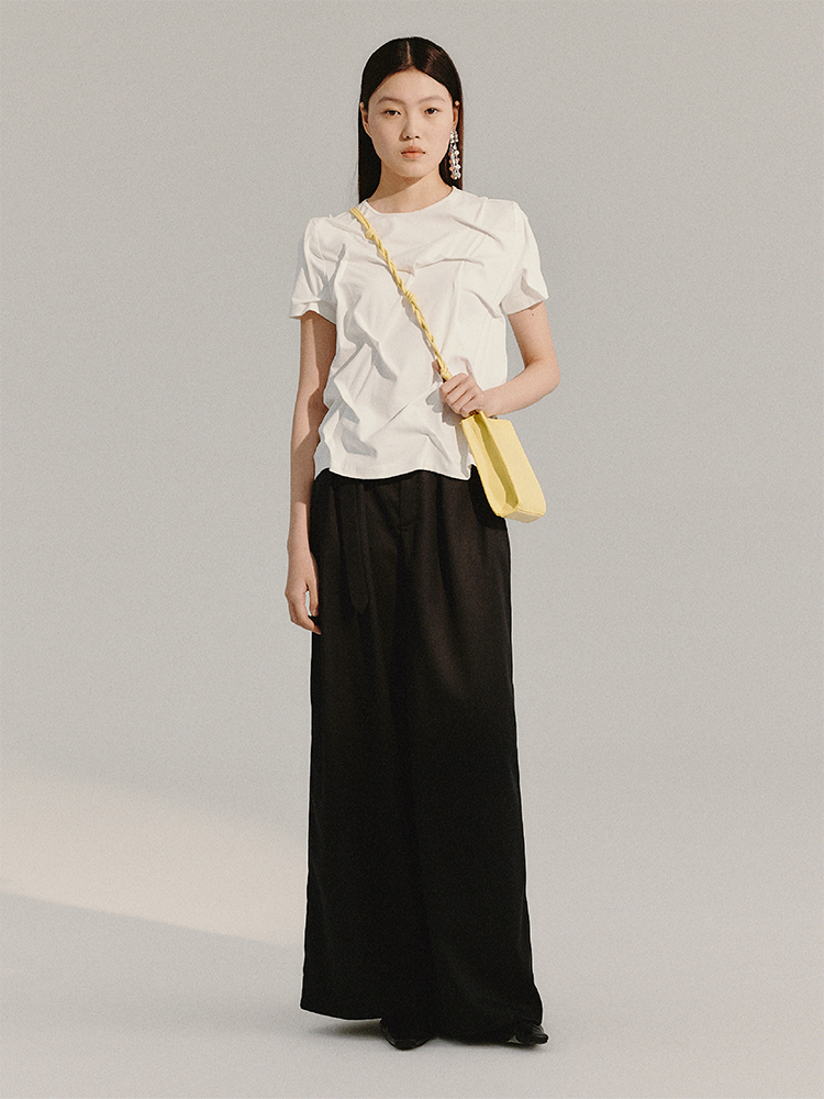LIYIHAN 正肩褶皱T恤 Y233Z025