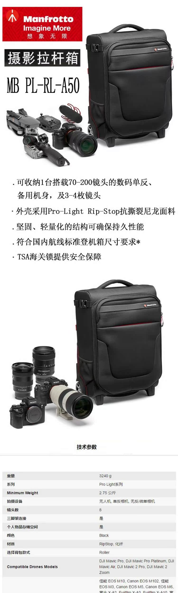 曼富图Pro-Light 专业摄影拉杆箱 MB PL-RL-A50
