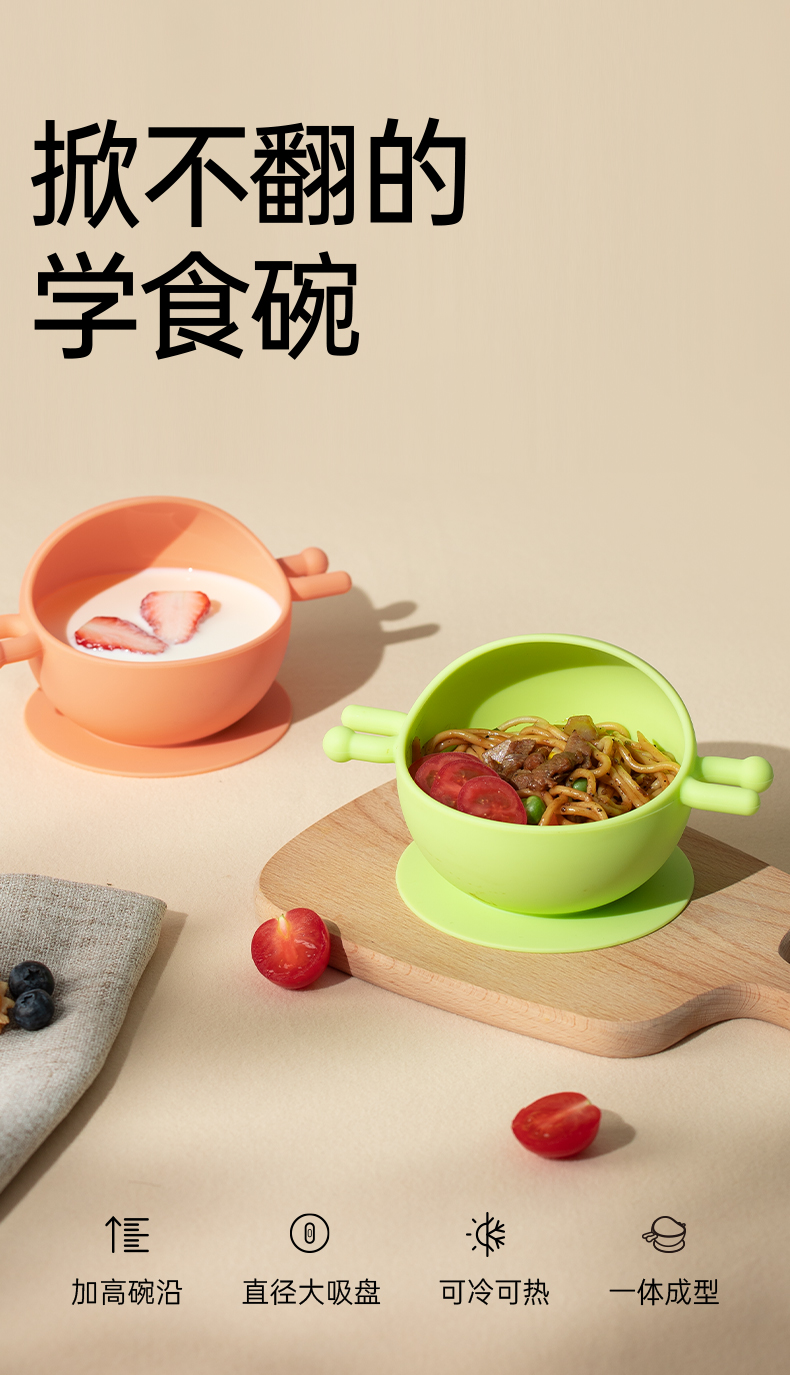 bebetour宝宝辅食碗婴儿专用吸盘碗防摔学吃饭训练硅胶碗辅食餐具