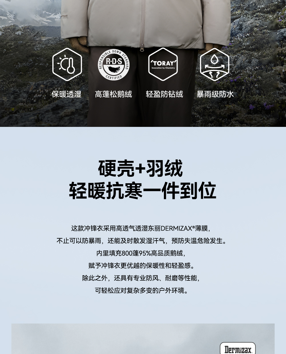 伯希和户外羽绒冲锋衣新款800蓬鹅绒Dermizax登山服男女同款外套