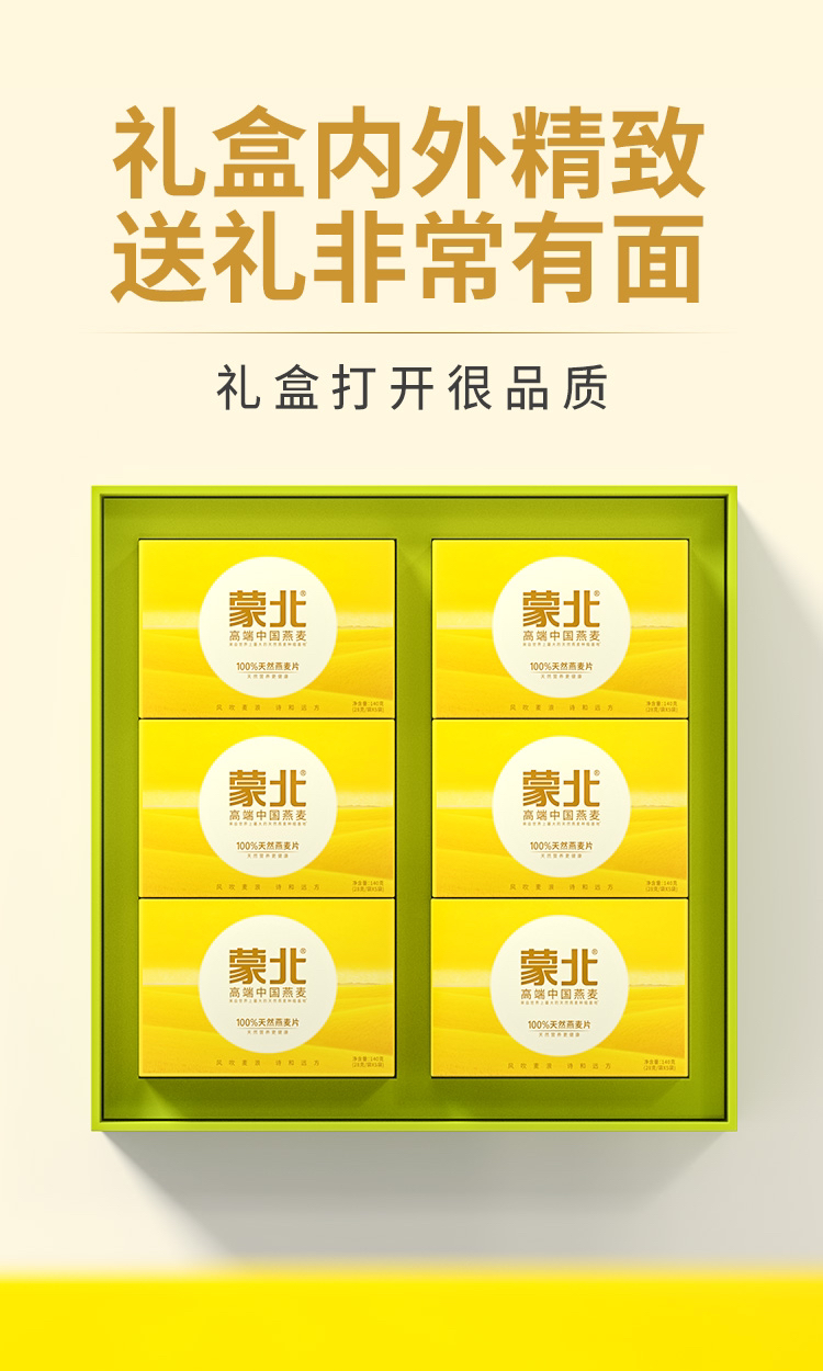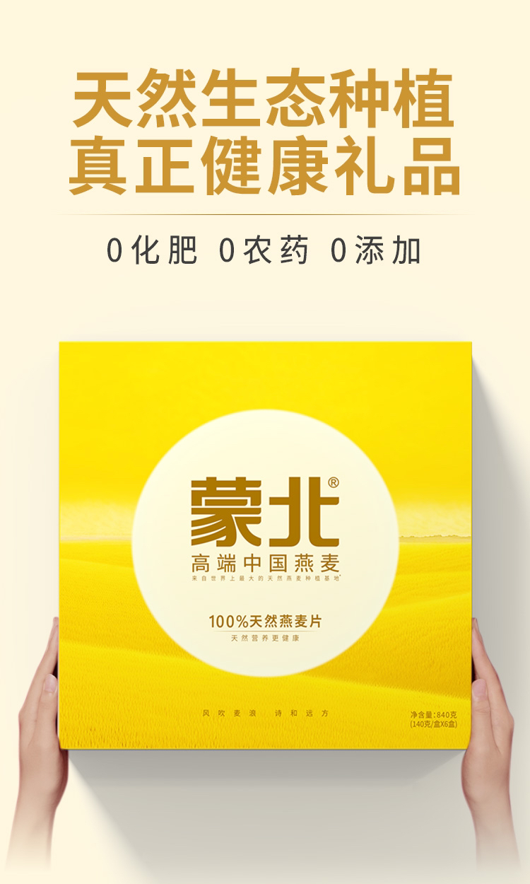 石家庄优选仓库速达,蒙北天然有机燕麦片,源自北纬46°燕麦黄金产区的蒙北天然燕麦片,颗粒硕大饱满,净重840g礼盒装(140g*6盒)