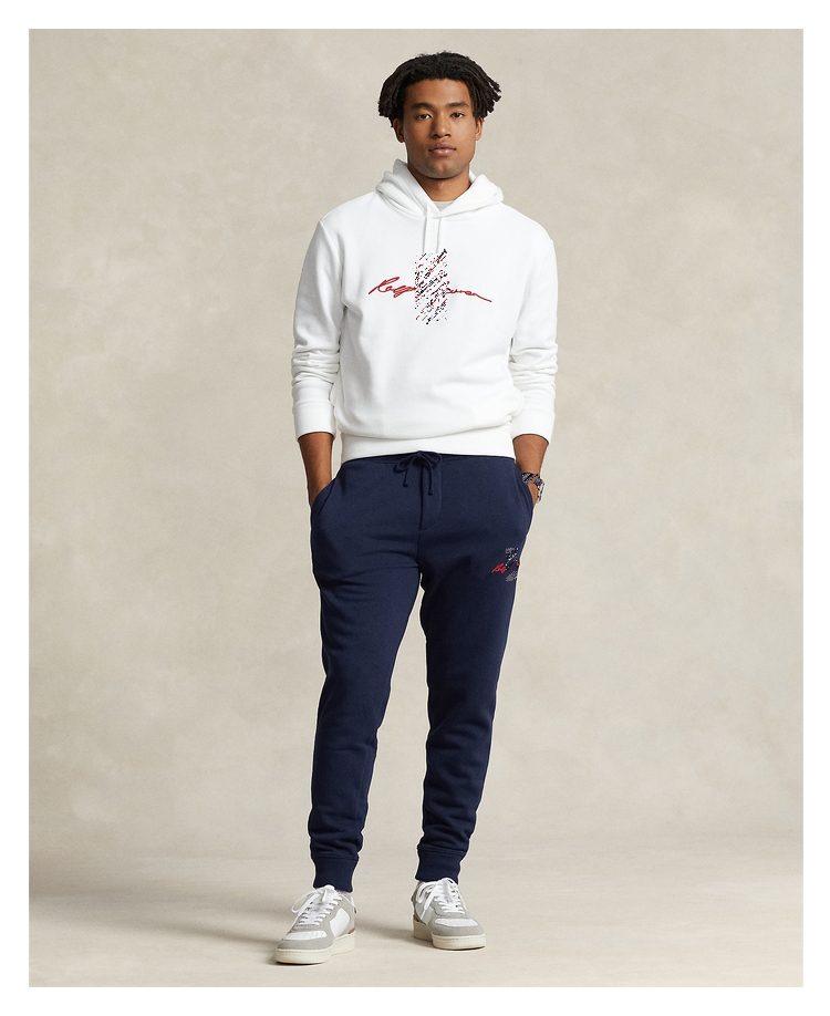 秋季新款户外运动长裤。高品质起绒面料,超级质感 舒适柔软透气。左大腿精致Big Pony刺绣标。腰部松紧+腰绳。裤脚收脚。做工细致,细节处很精致了。