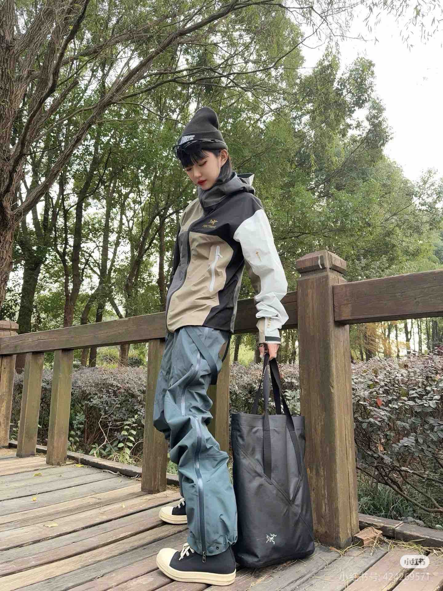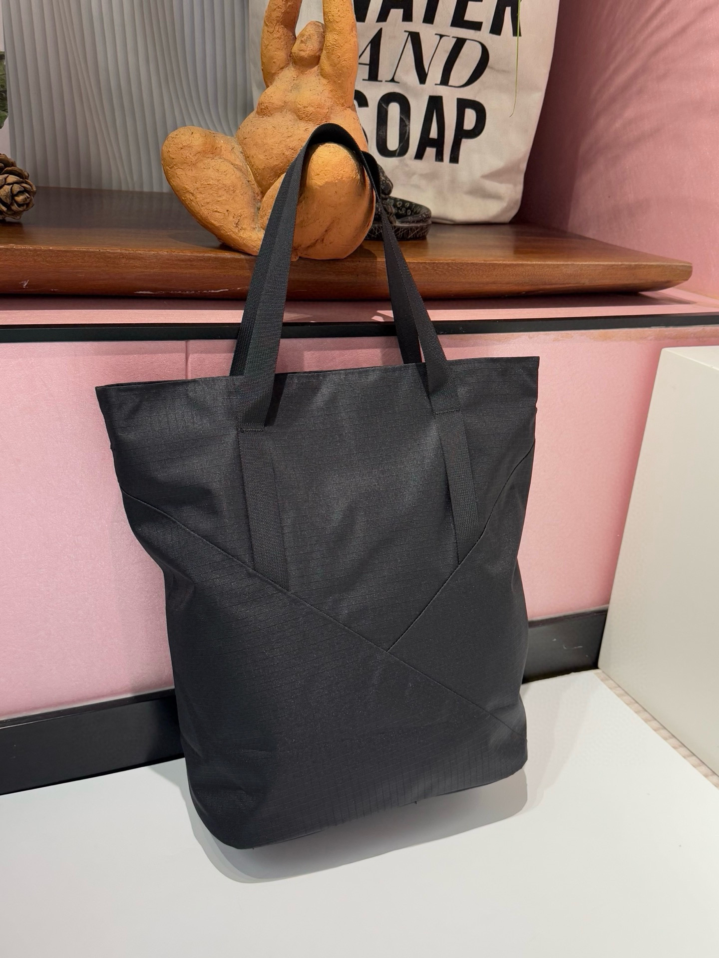 以简约而时尚的设计脱颖而出。黑色的外观给人一种经典且百搭的感觉,无论是搭配日常休闲装还是商务正装,都能轻松驾驭。独有的防水面料,结实耐用,同时质感十足。logo印花低调地彰显了品牌身份。手提带设计合理,长度适中,方便手提,提供了舒适的握持感。整体设计简洁大方,没有过多的装饰,体现了现代时尚中的极简主义美学。~