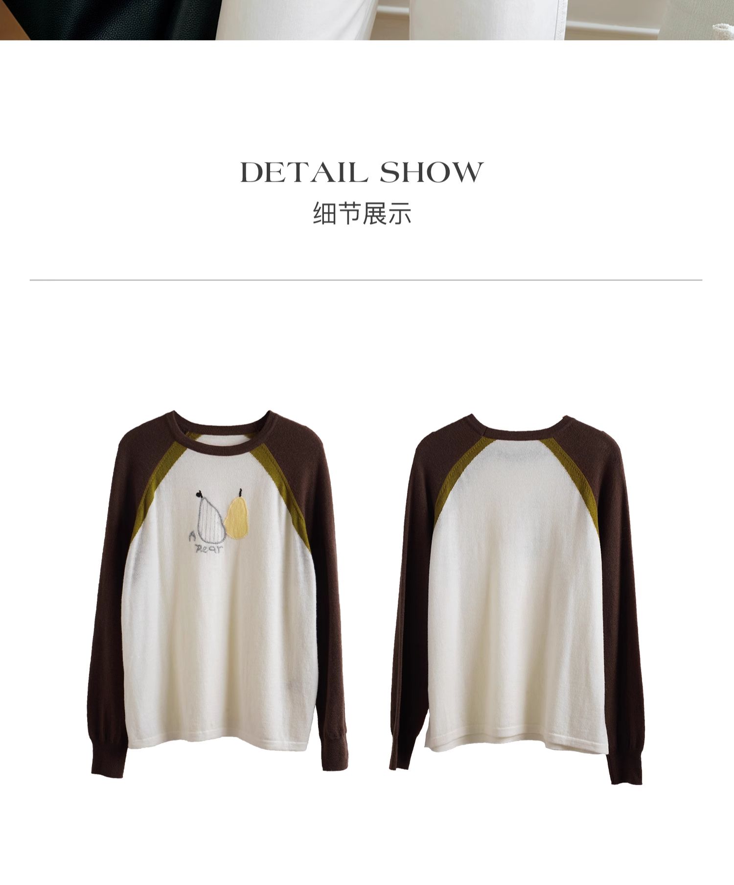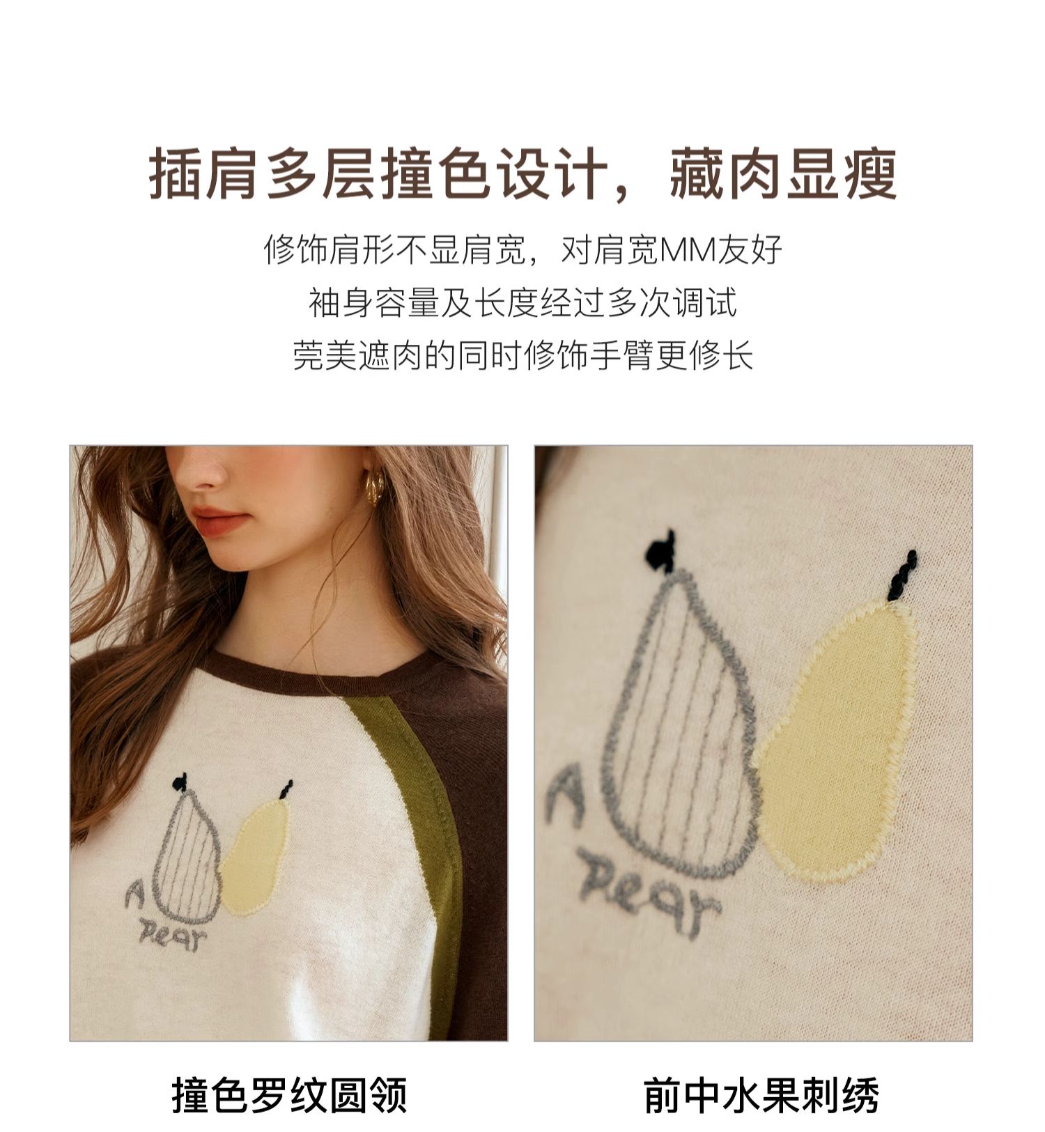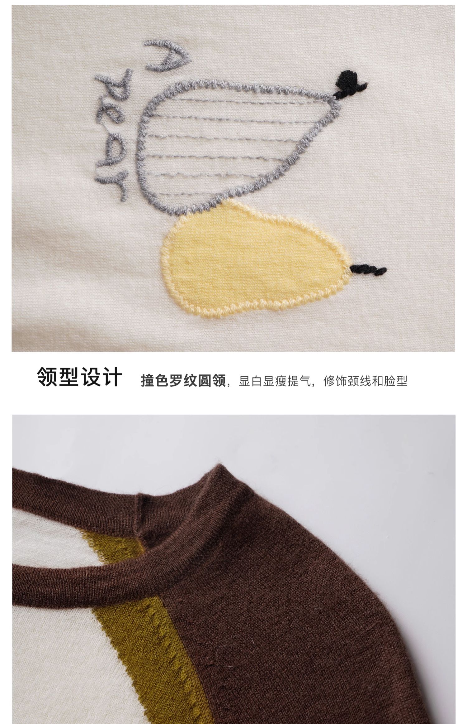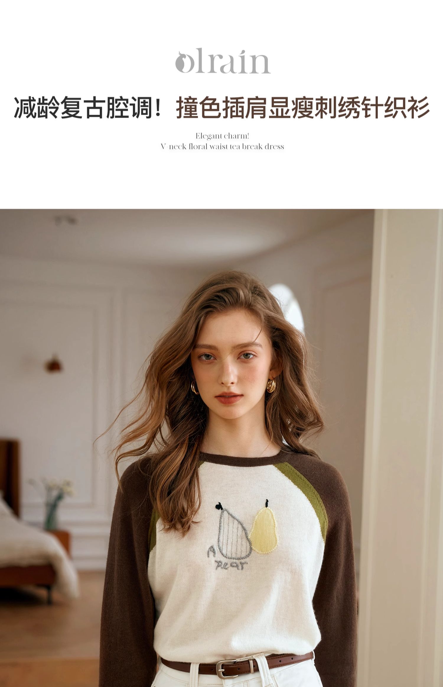 OLrain欧芮儿复古撞色插肩袖针织衫女秋季2024新款刺绣长袖上衣
