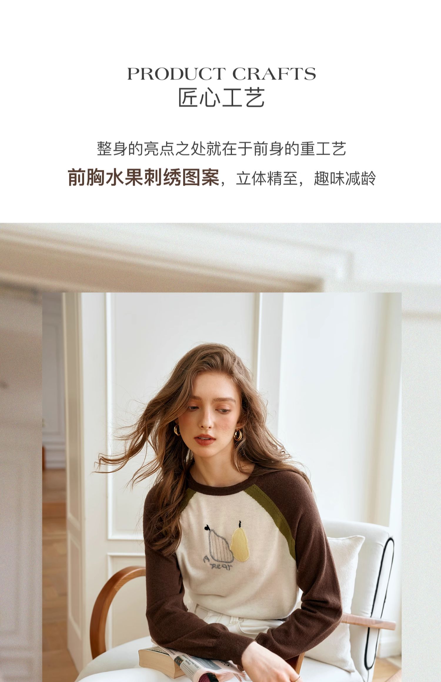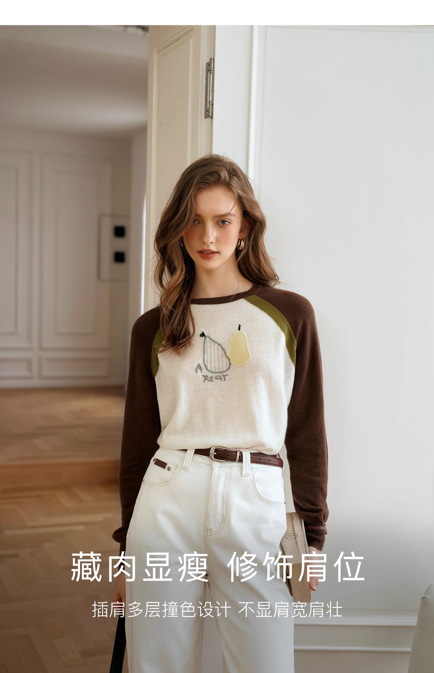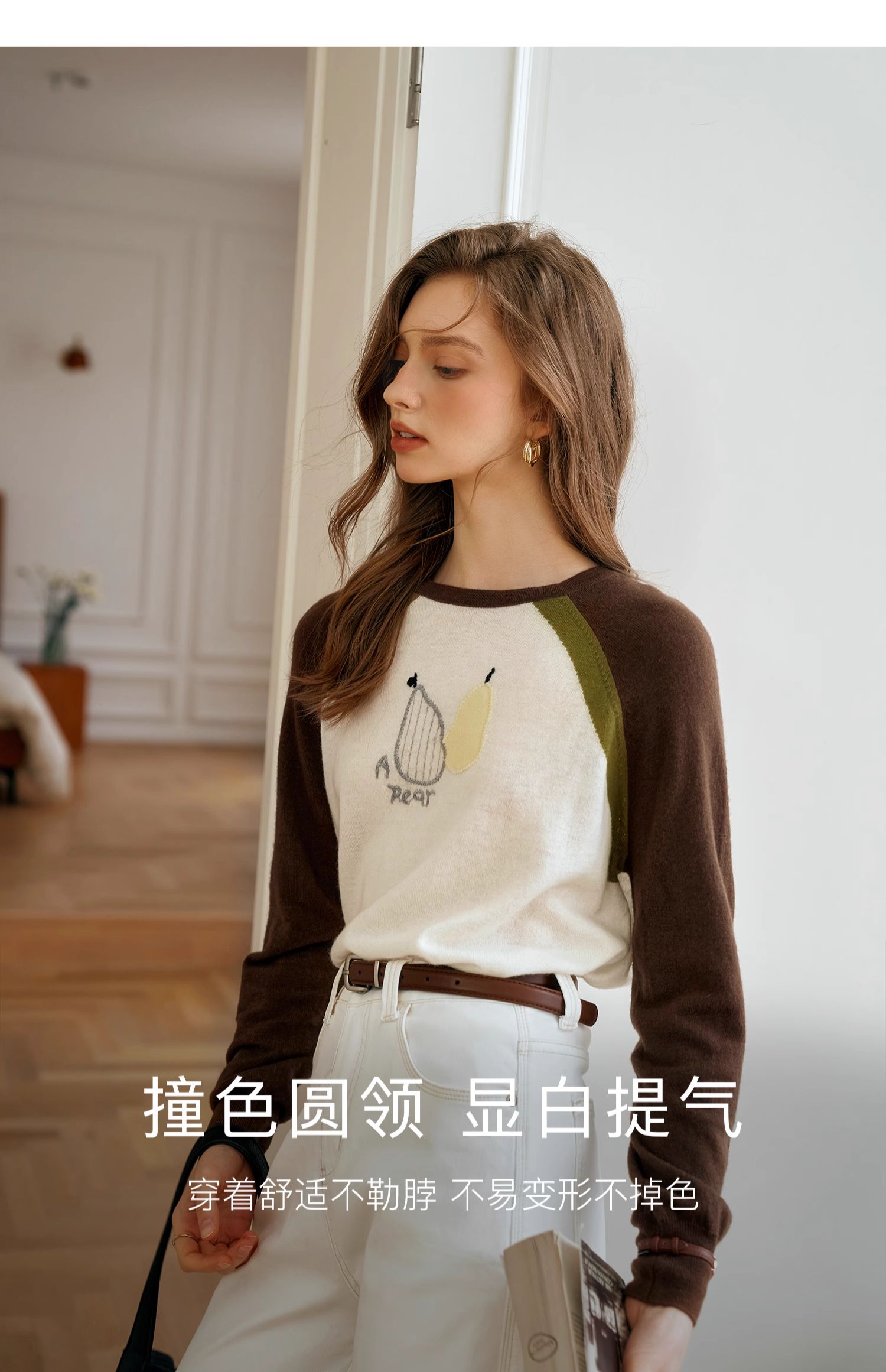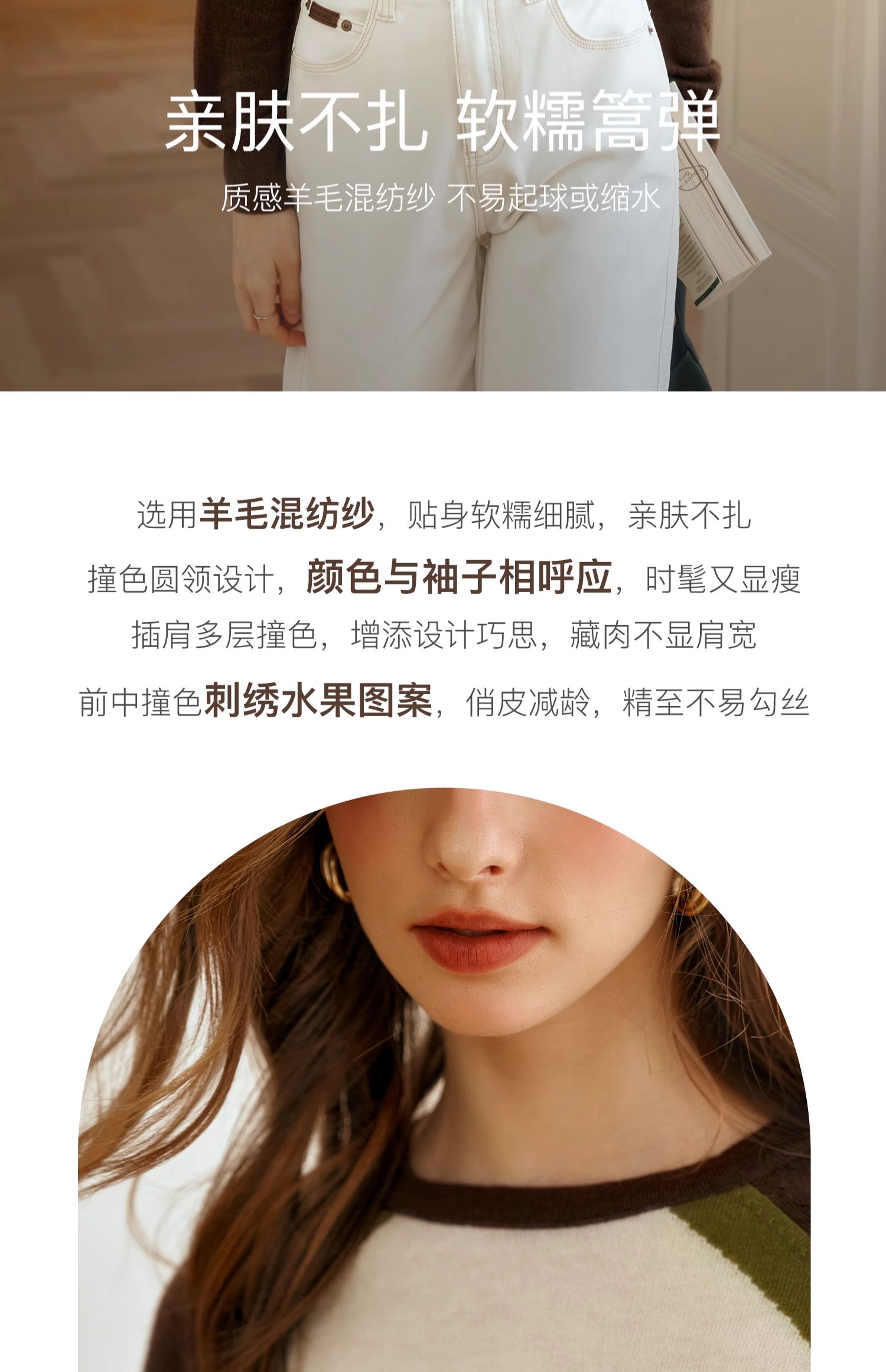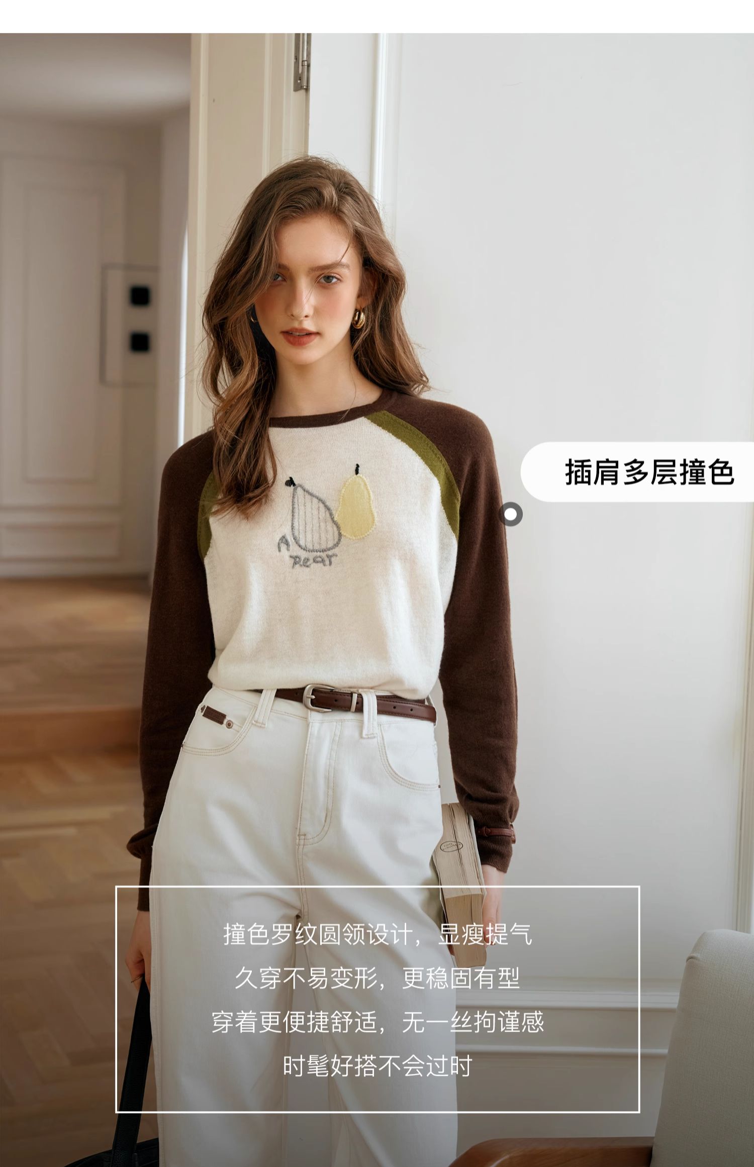 OLrain欧芮儿复古撞色插肩袖针织衫女秋季2024新款刺绣长袖上衣