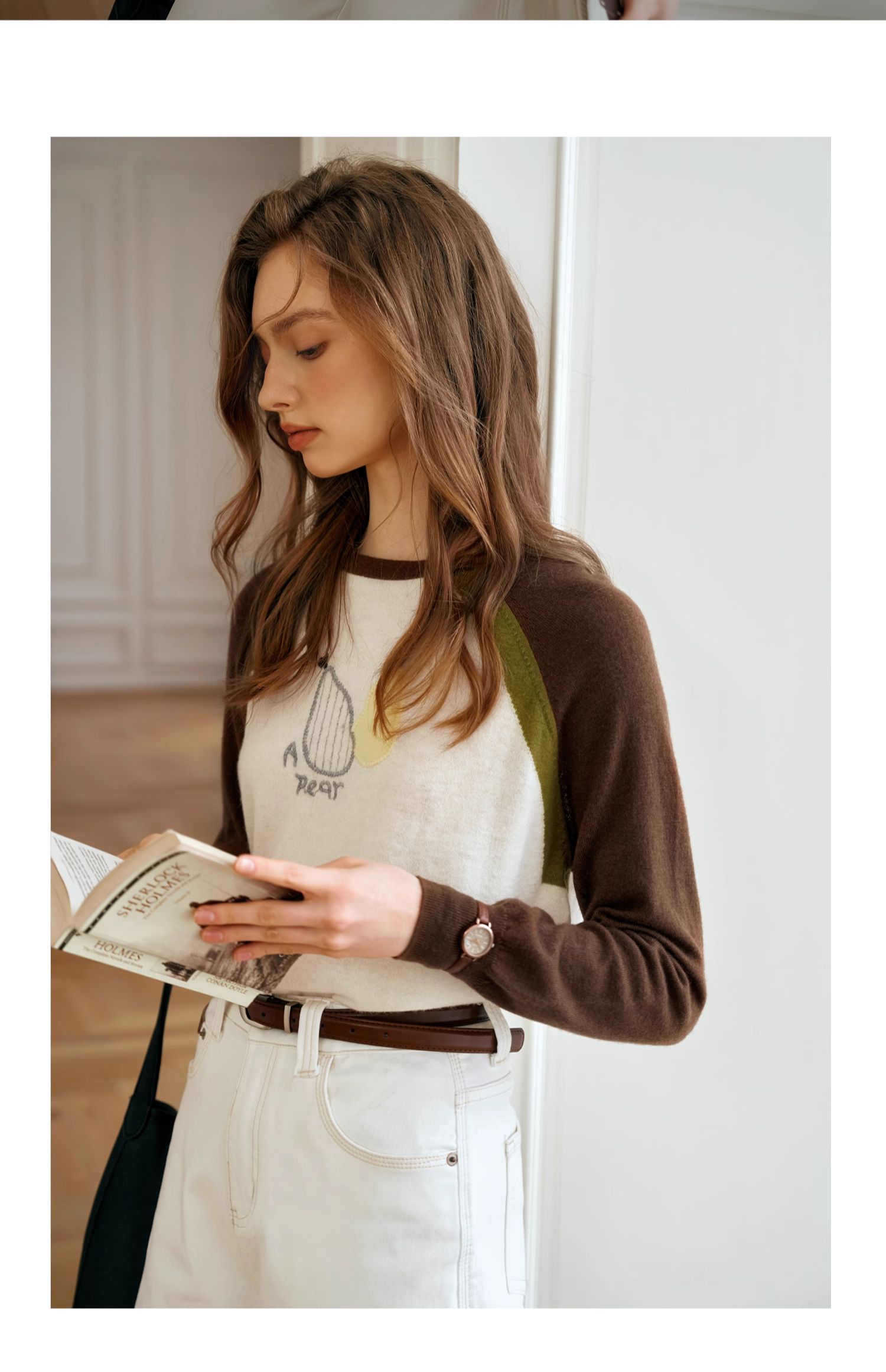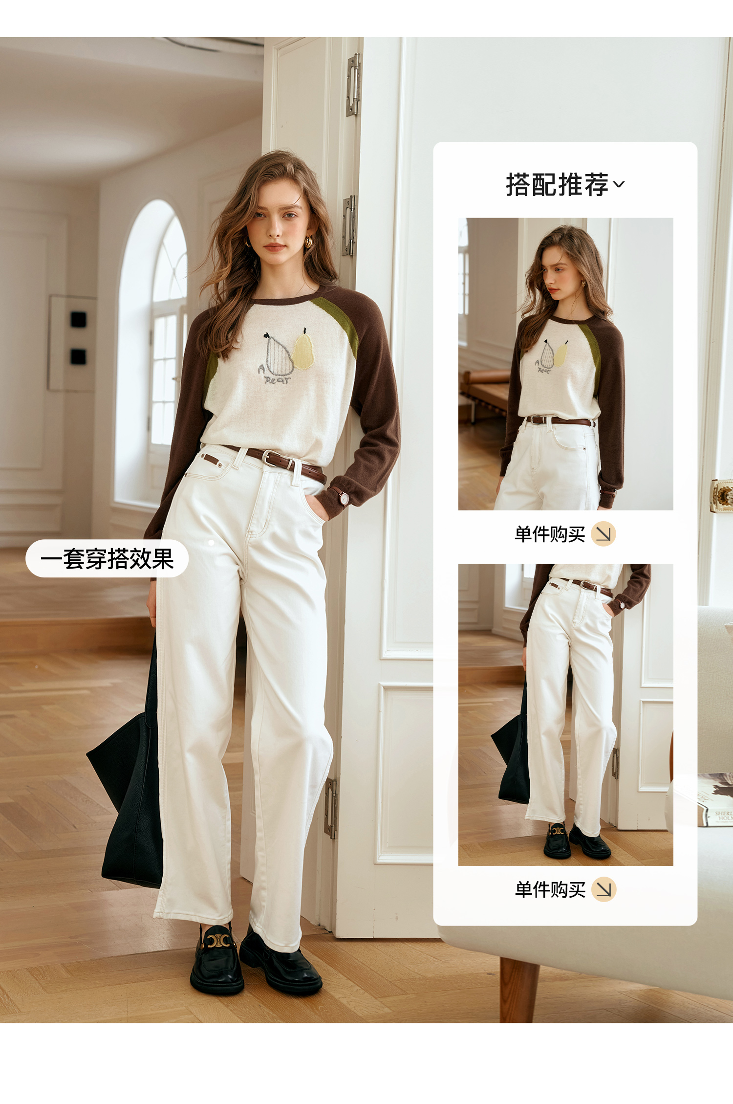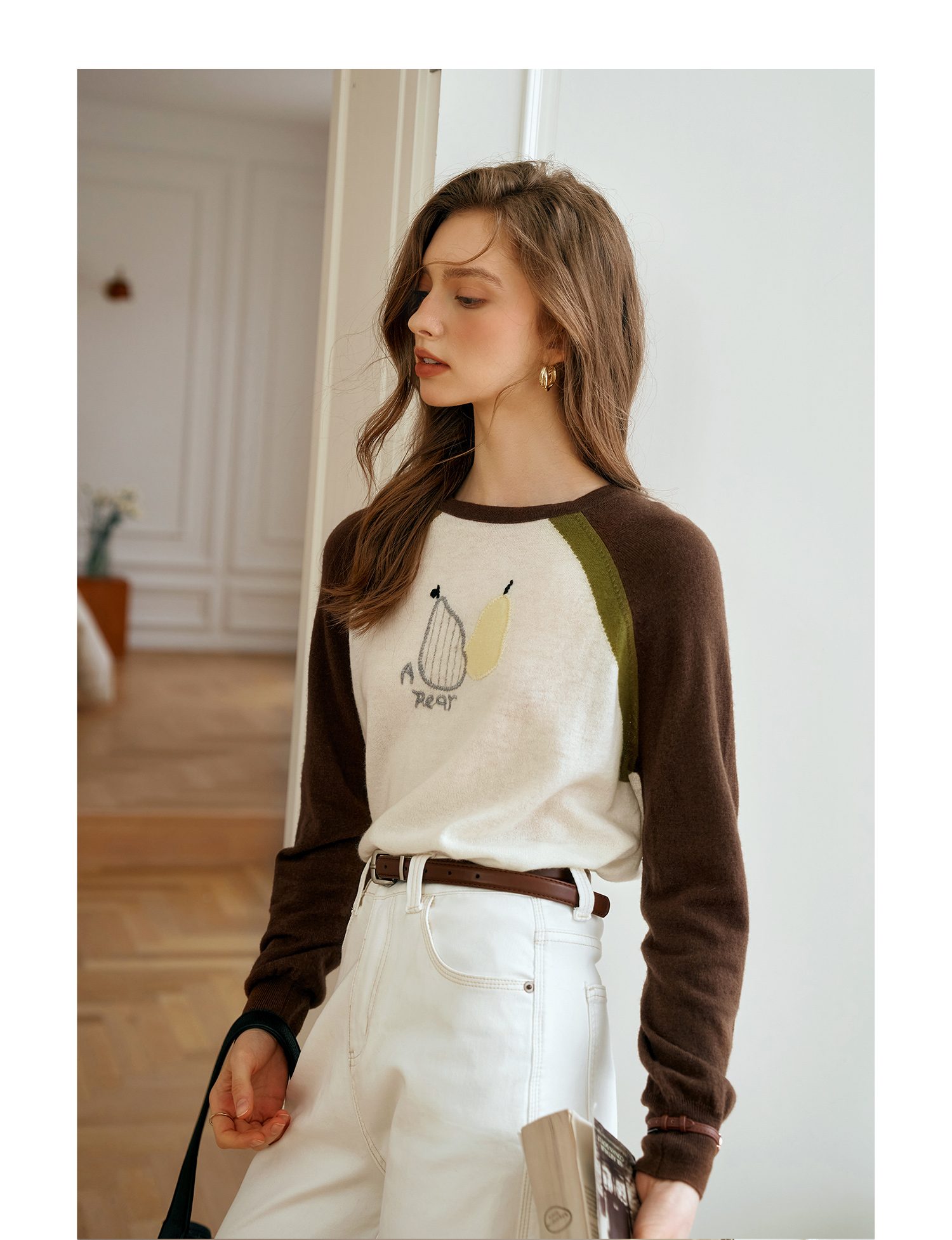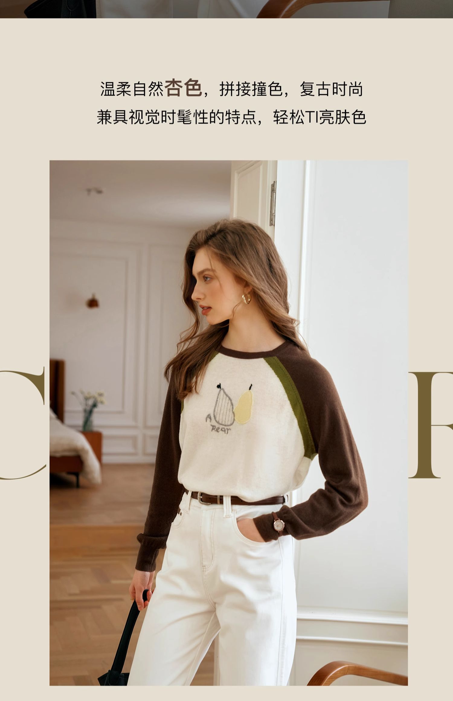 OLrain欧芮儿复古撞色插肩袖针织衫女秋季2024新款刺绣长袖上衣