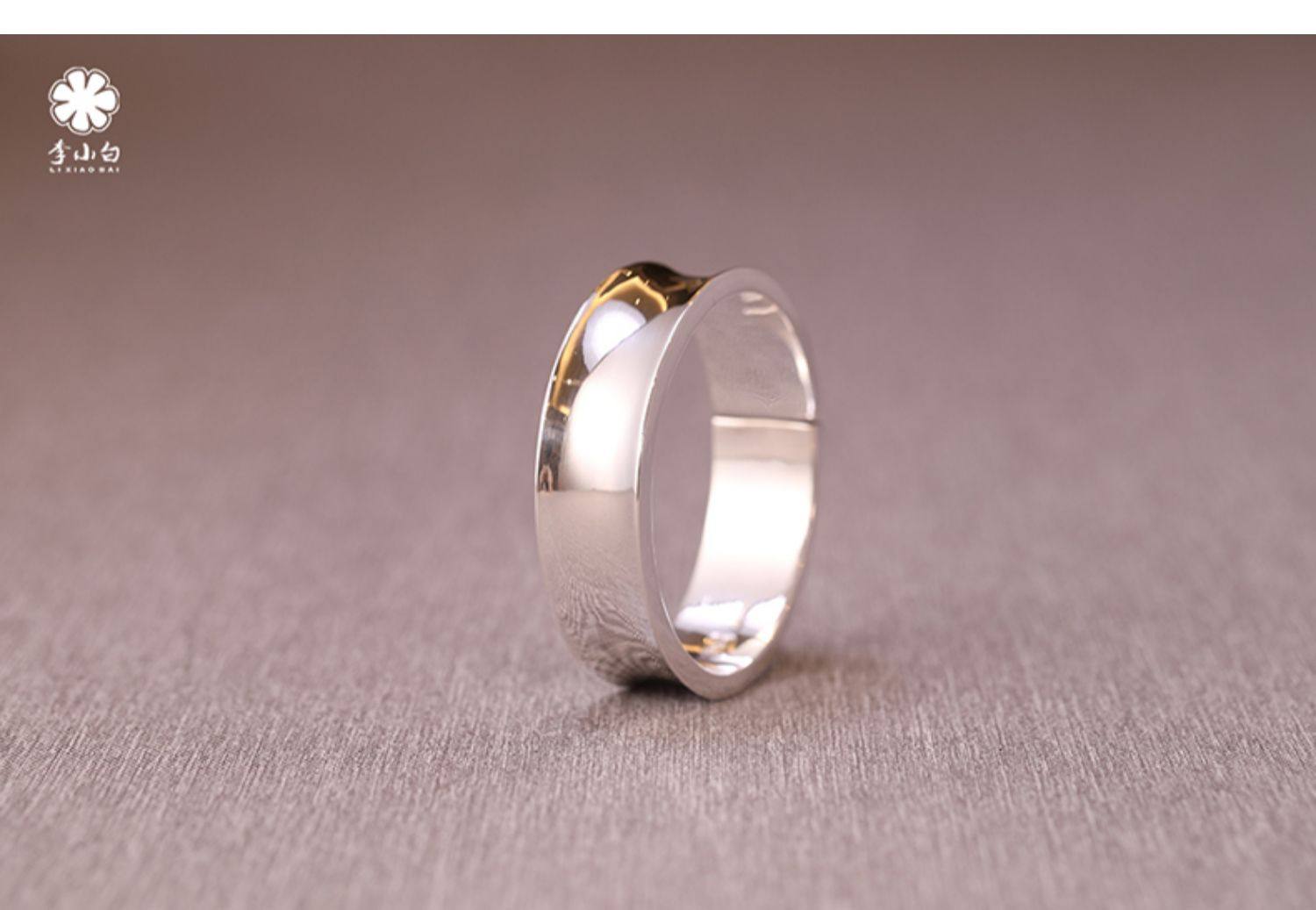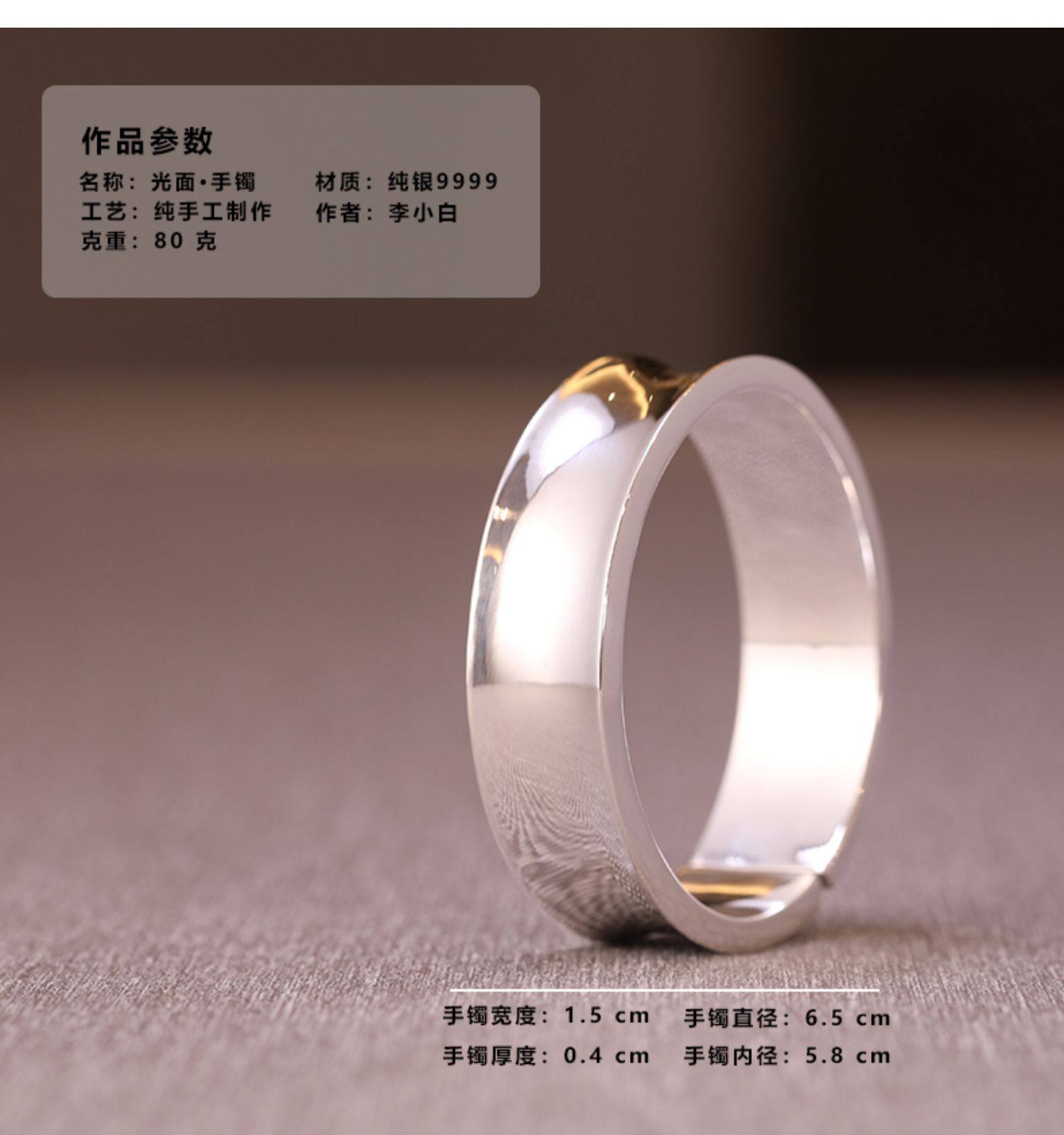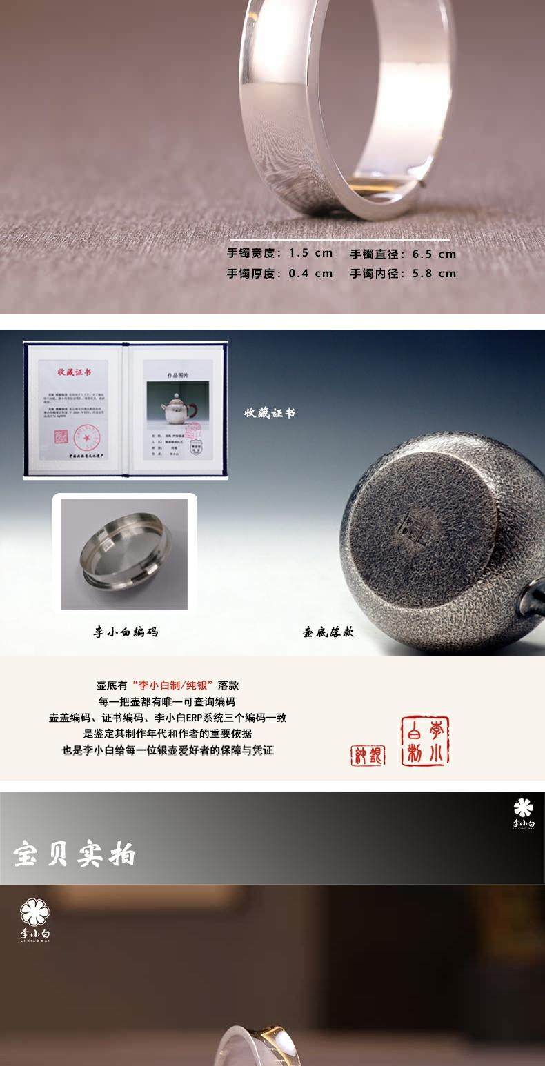 李小白9999纯银手镯 纯手工纯银手镯 光面内凹纯银镯 银饰品手环