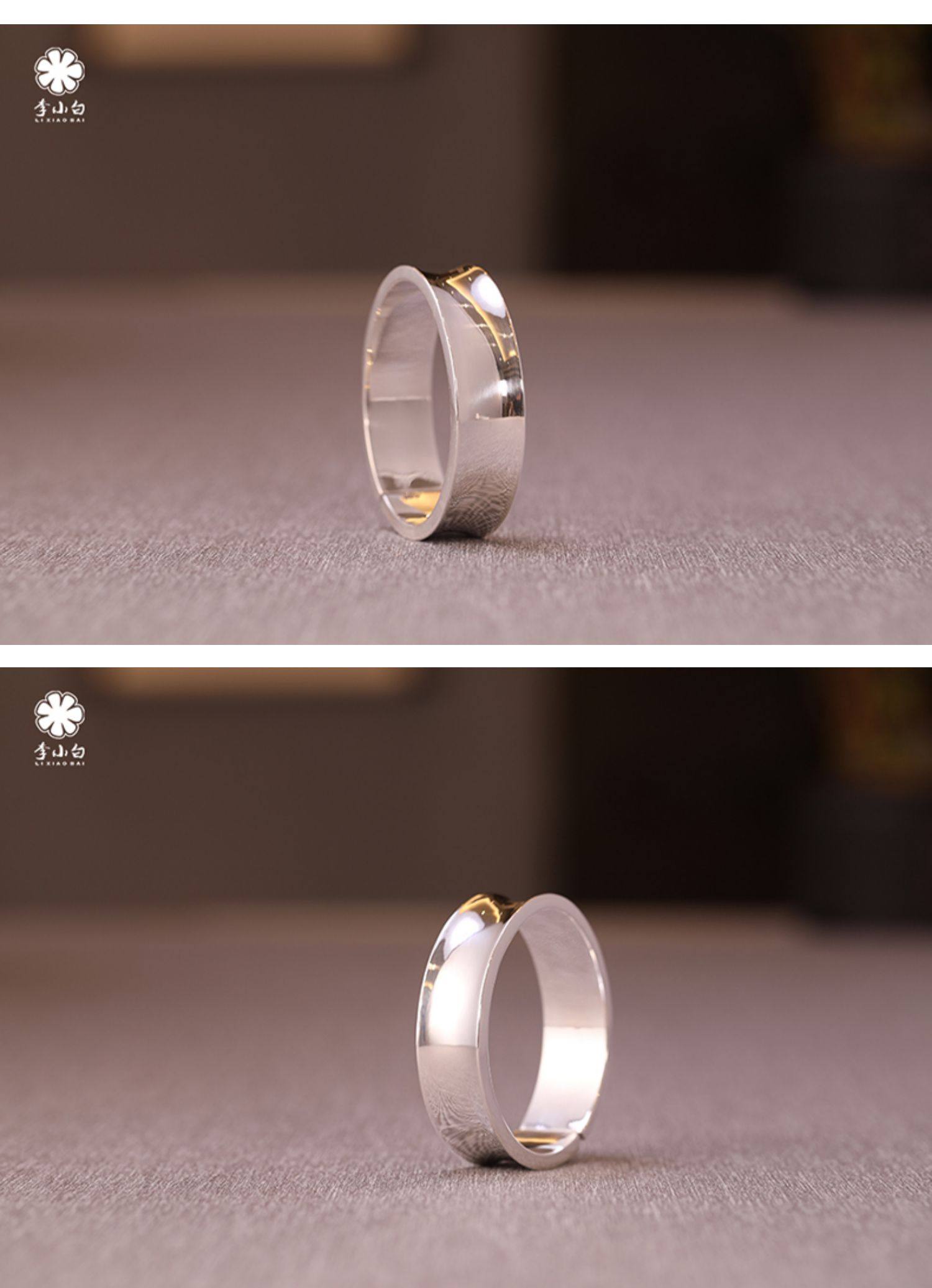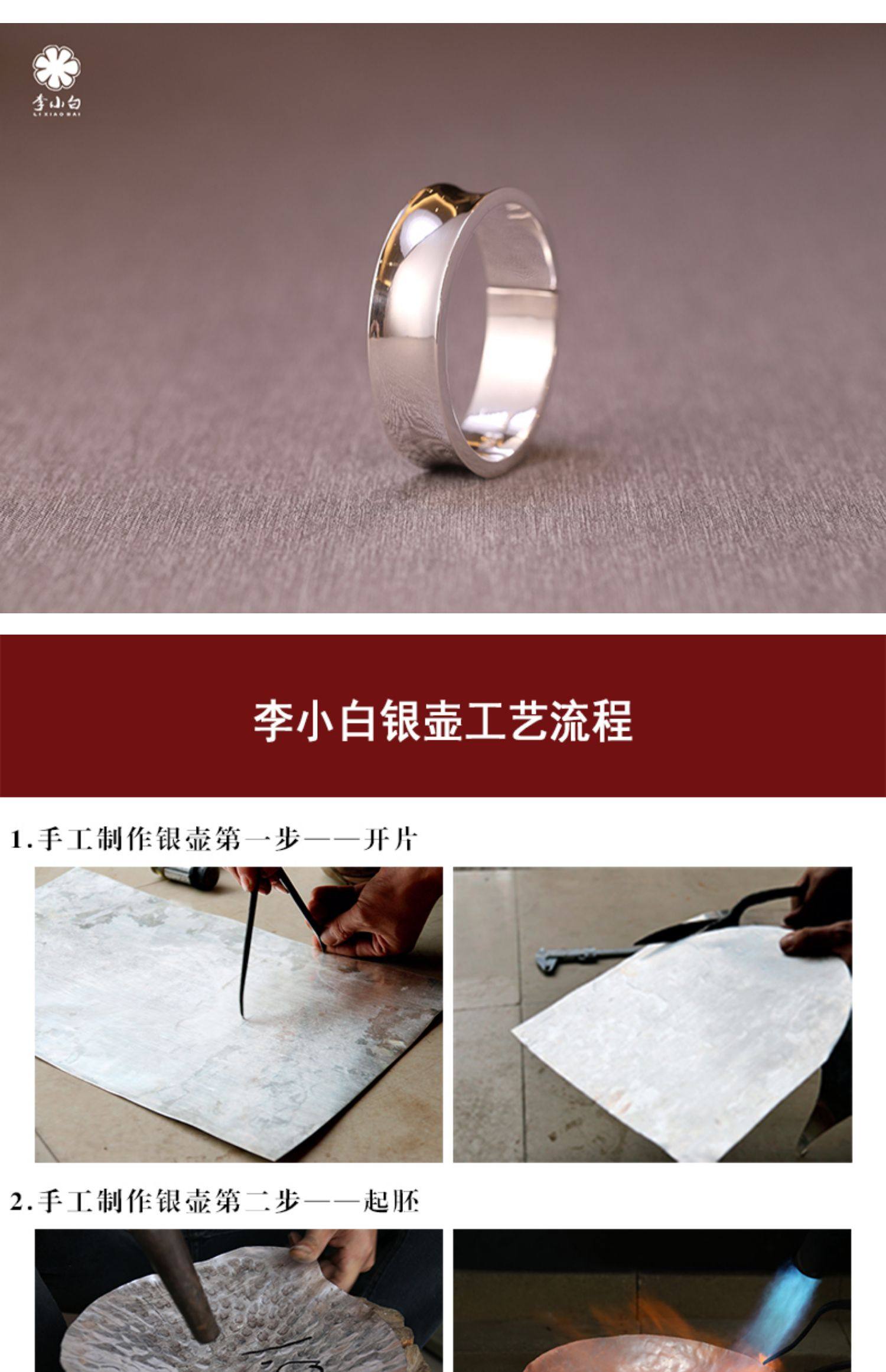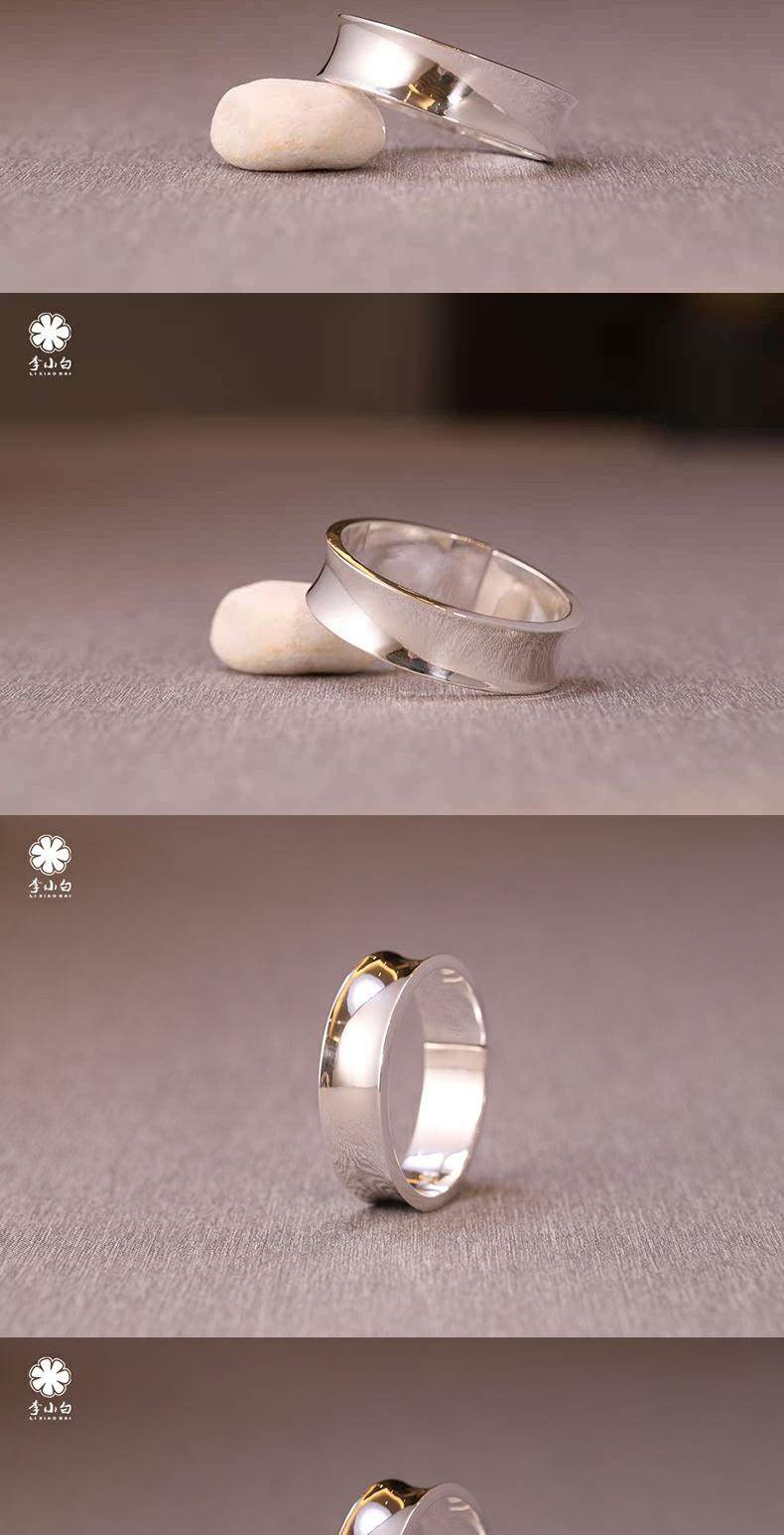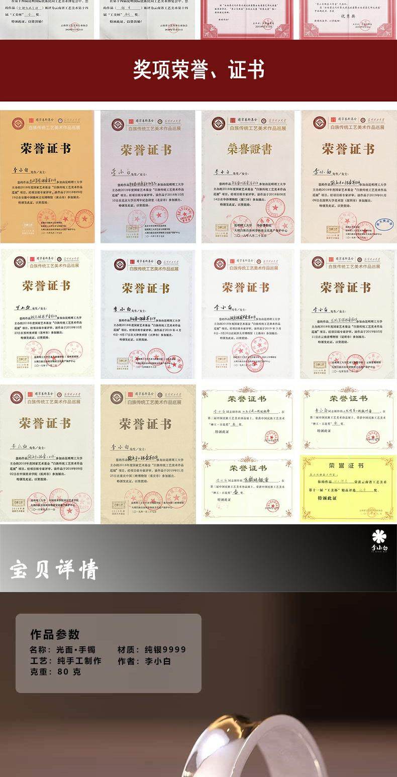李小白9999纯银手镯 纯手工纯银手镯 光面内凹纯银镯 银饰品手环