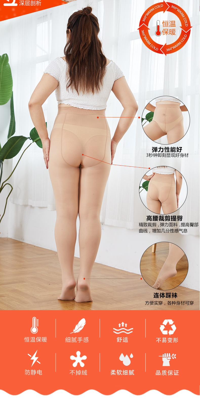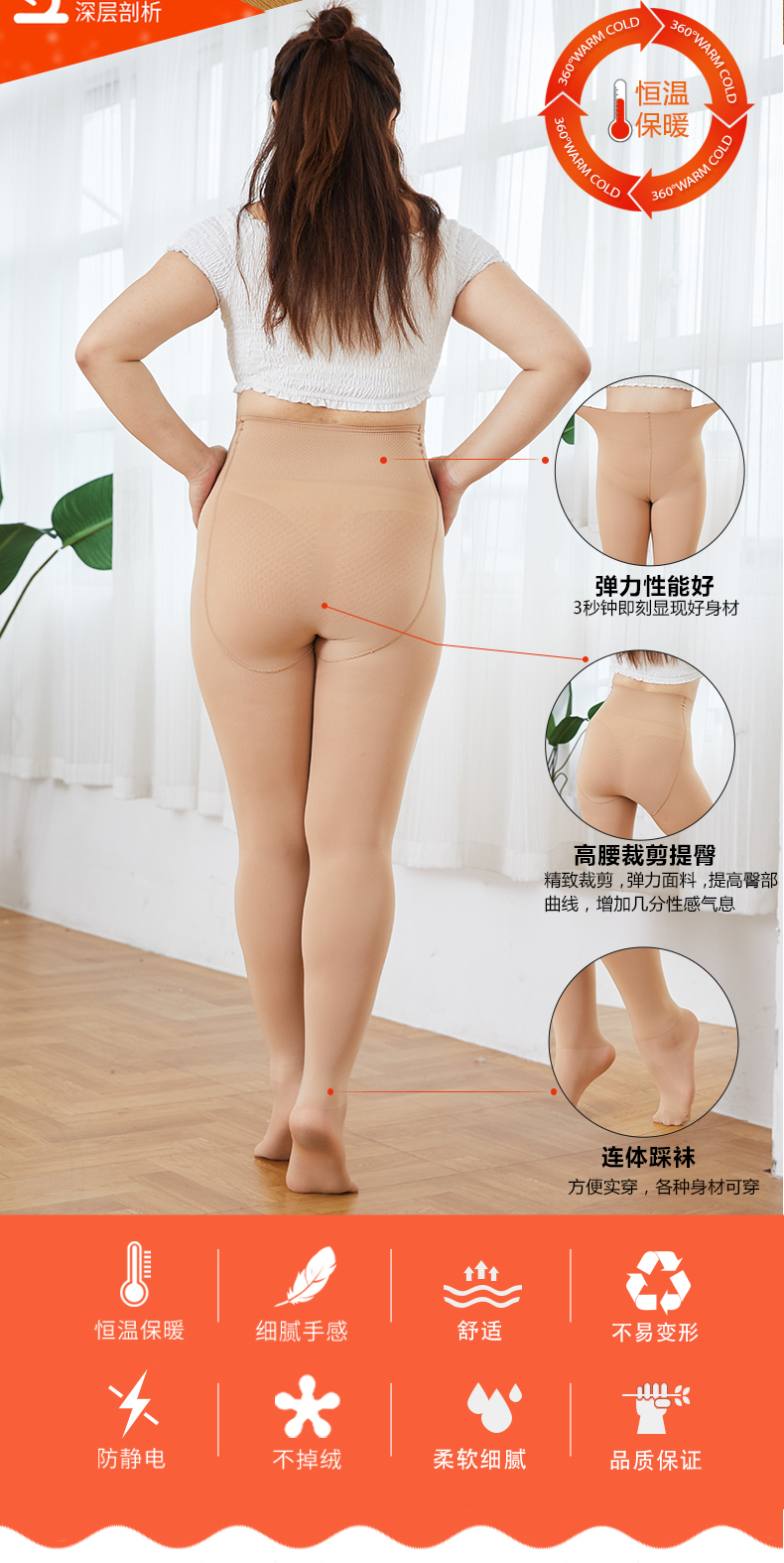 【盒装】女士加肥加大高弹收腹前后宽加裆钢丝防滑防臭蜜桃翘翘臀舒适打底袜裤522/521/523/526/527/528/529/530