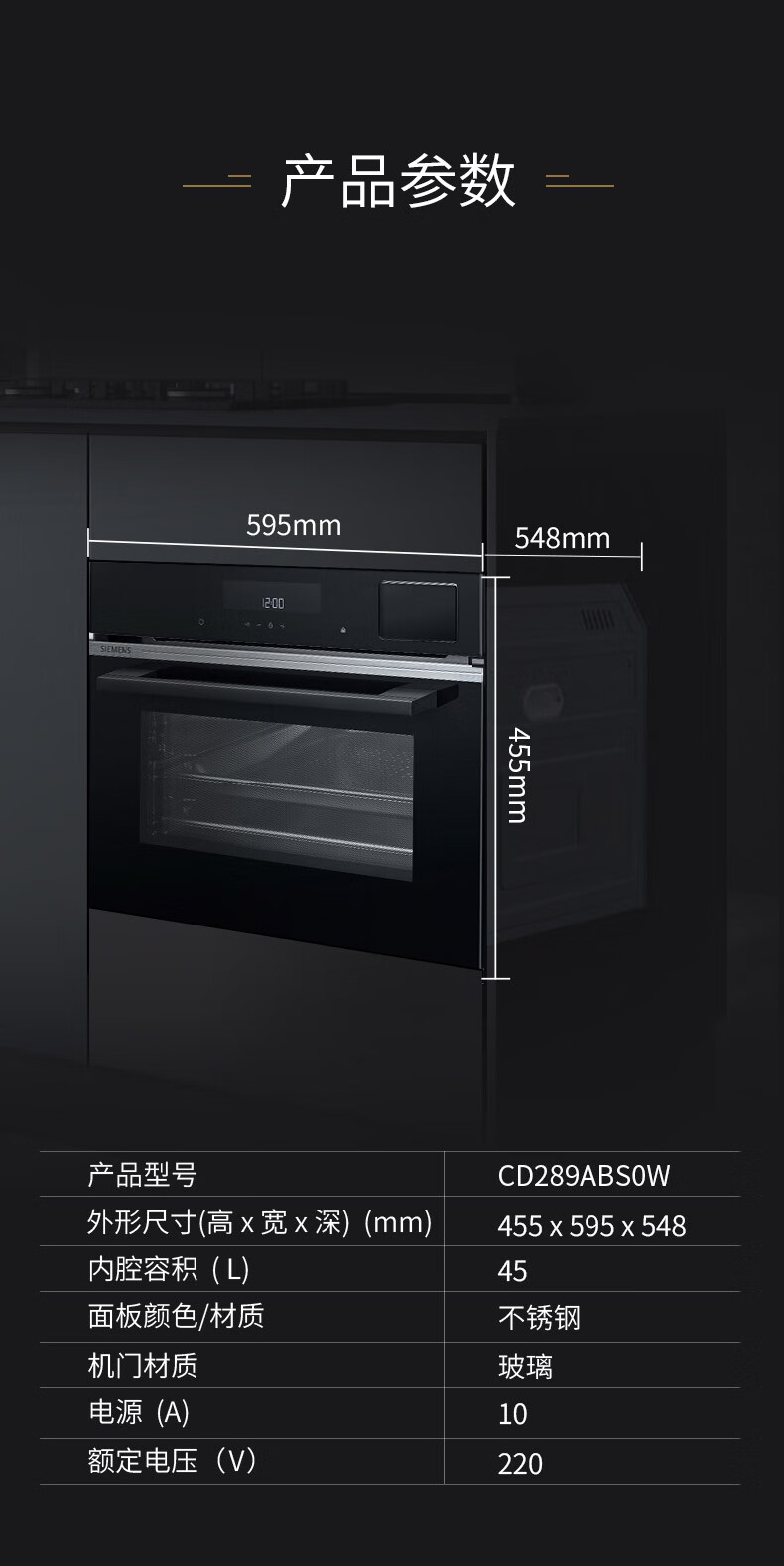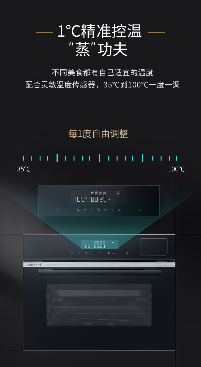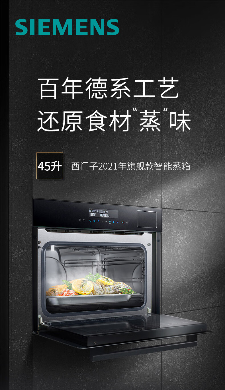 西门子(SIEMENS)嵌入式蒸箱蒸汽炉 30种自动程序45L大容量家用蒸箱 CD289ABS0W