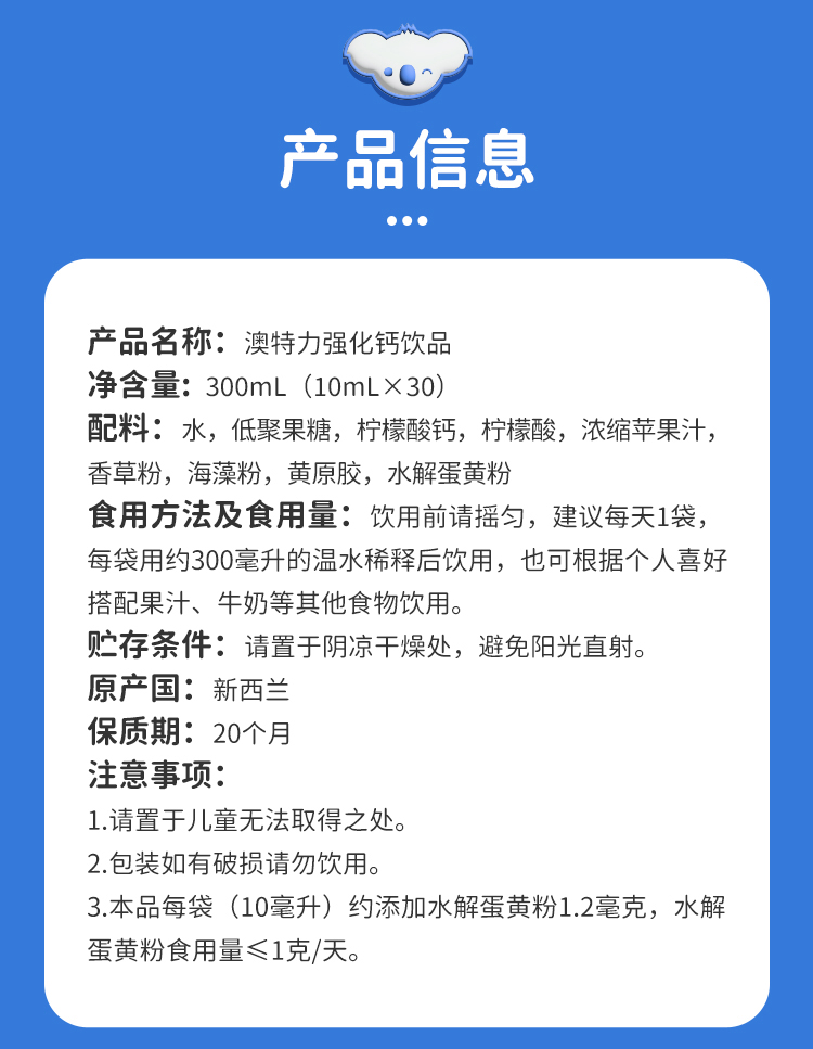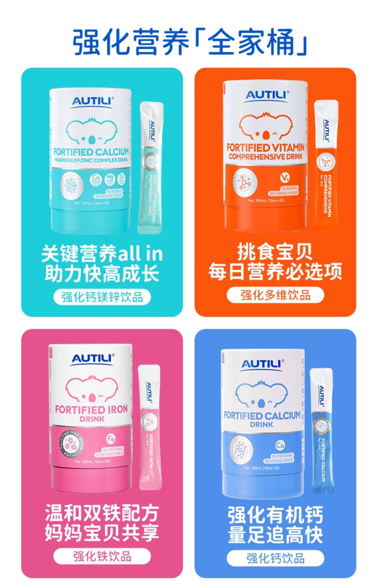 澳特力 强化钙镁锌/强化铁/锌多维 饮品