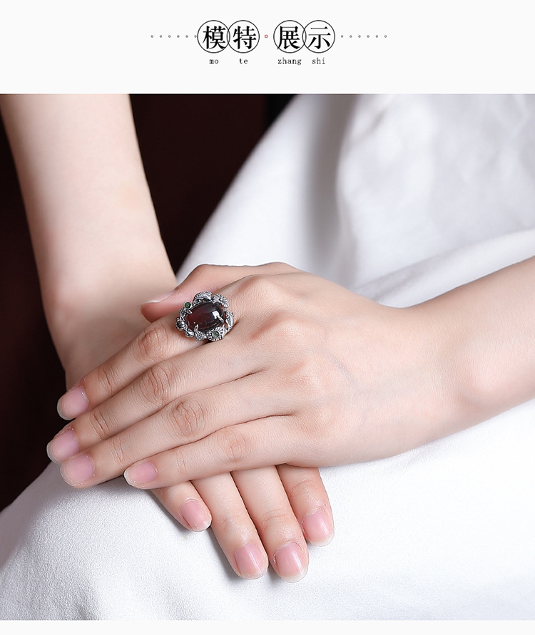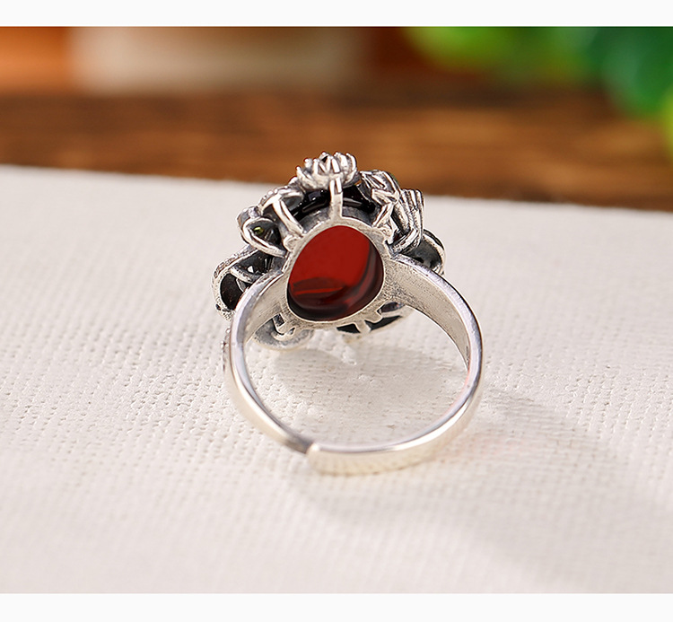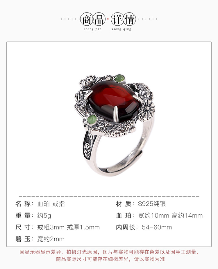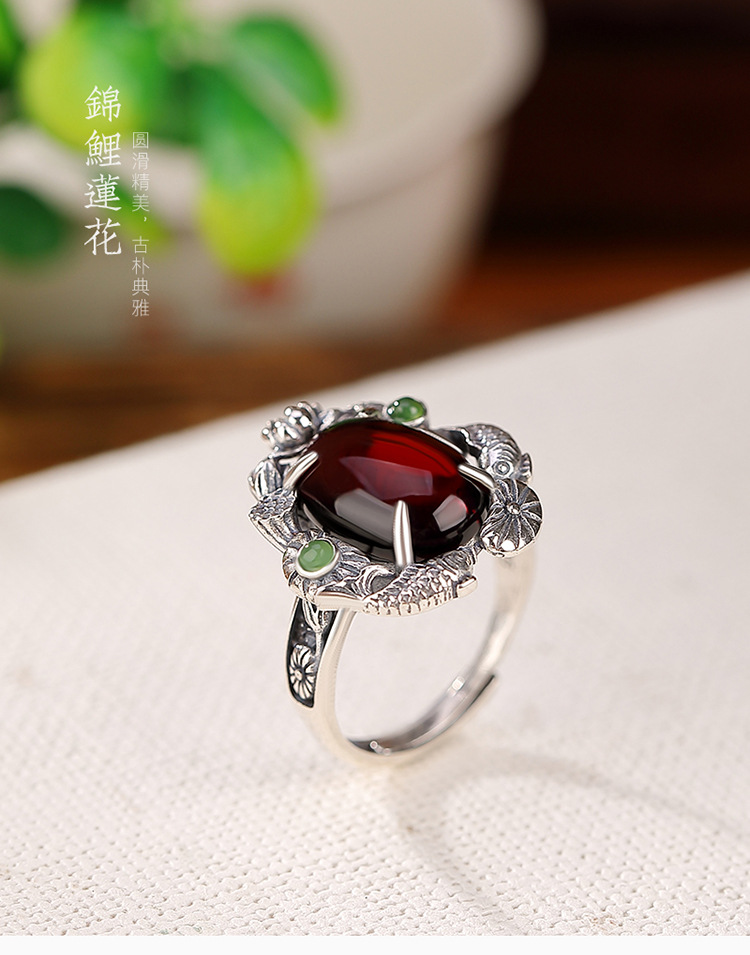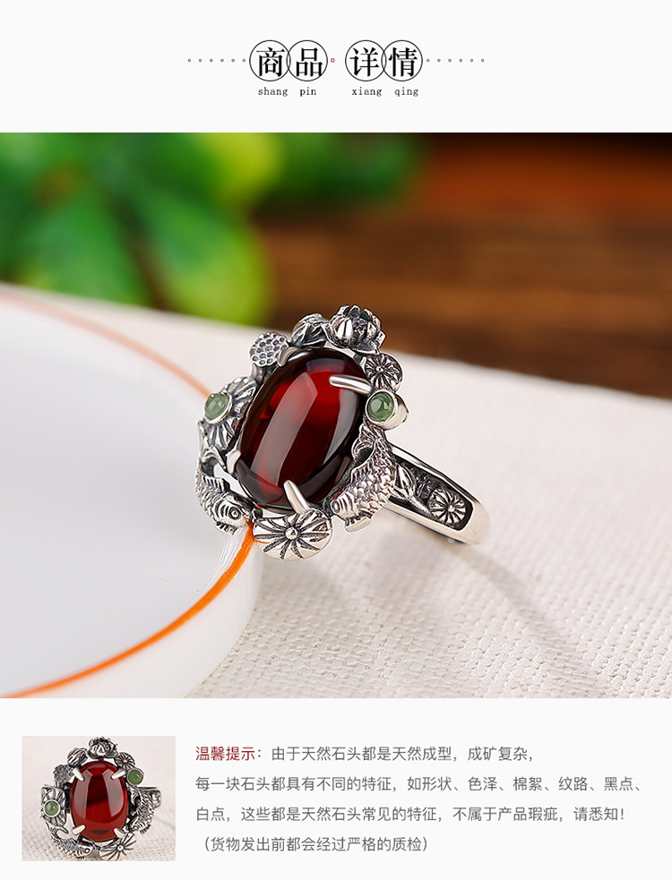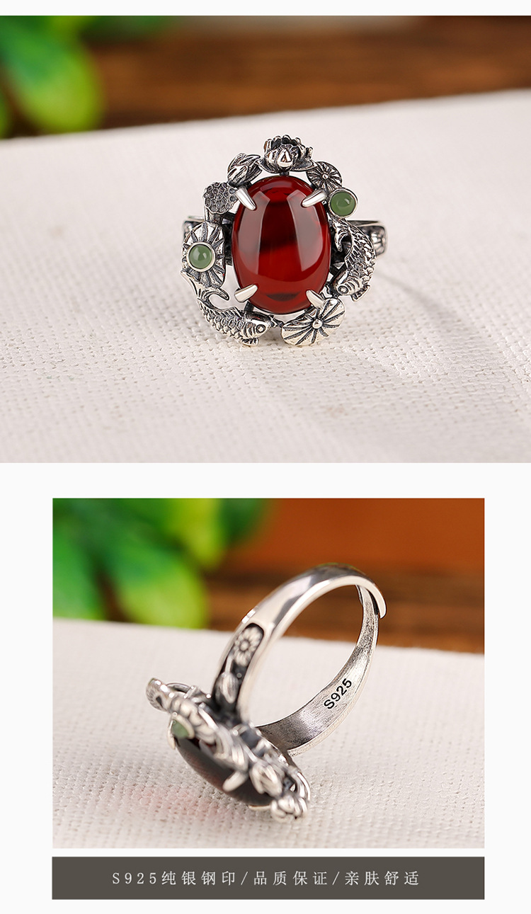 【锦鲤莲花】S925银血珀蛋面戒指【CW-JZ06090】