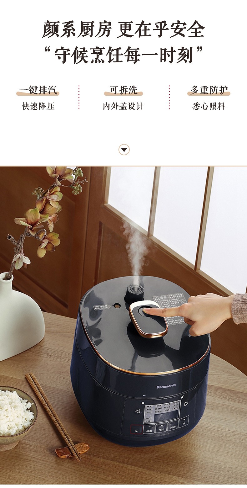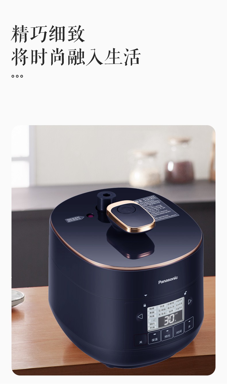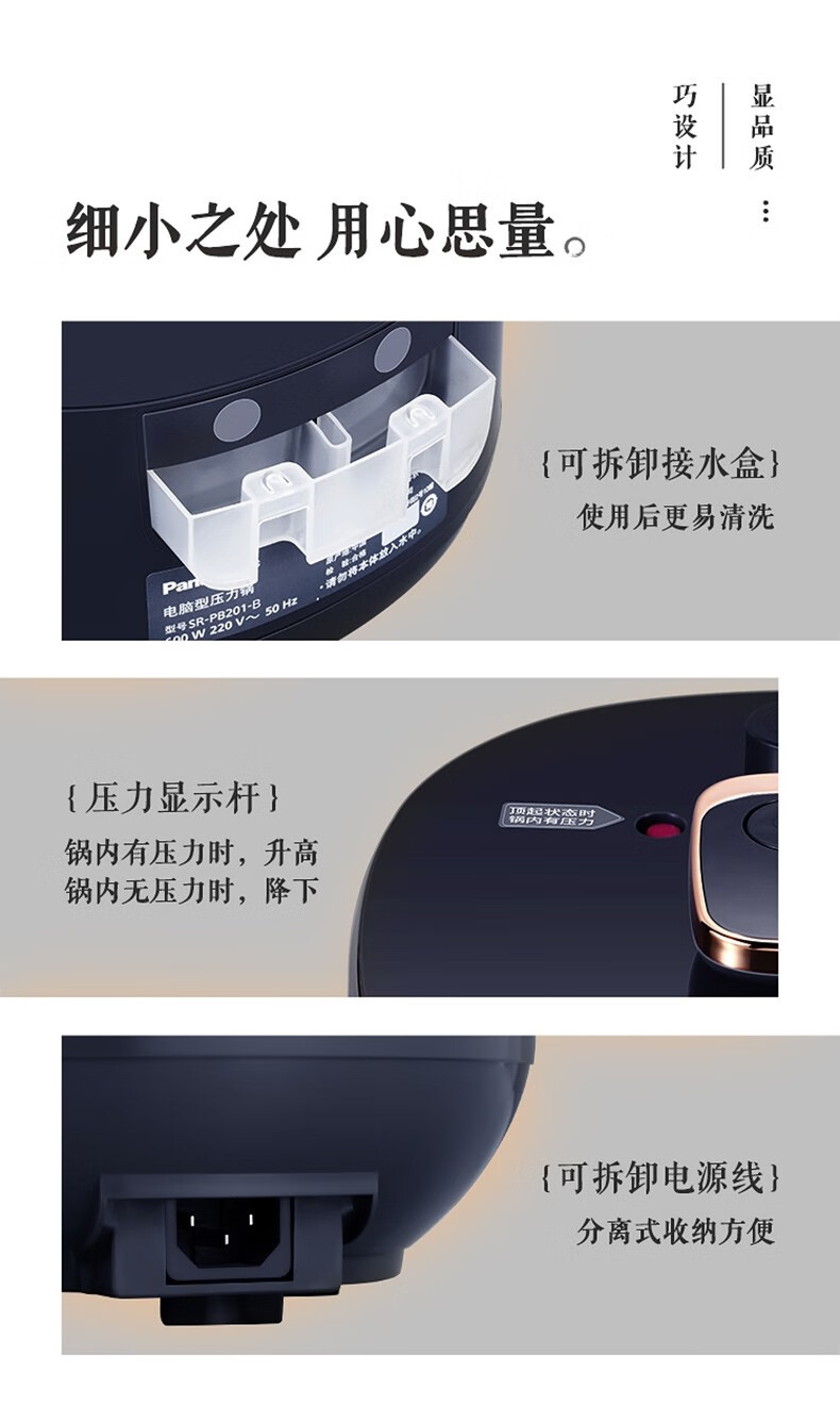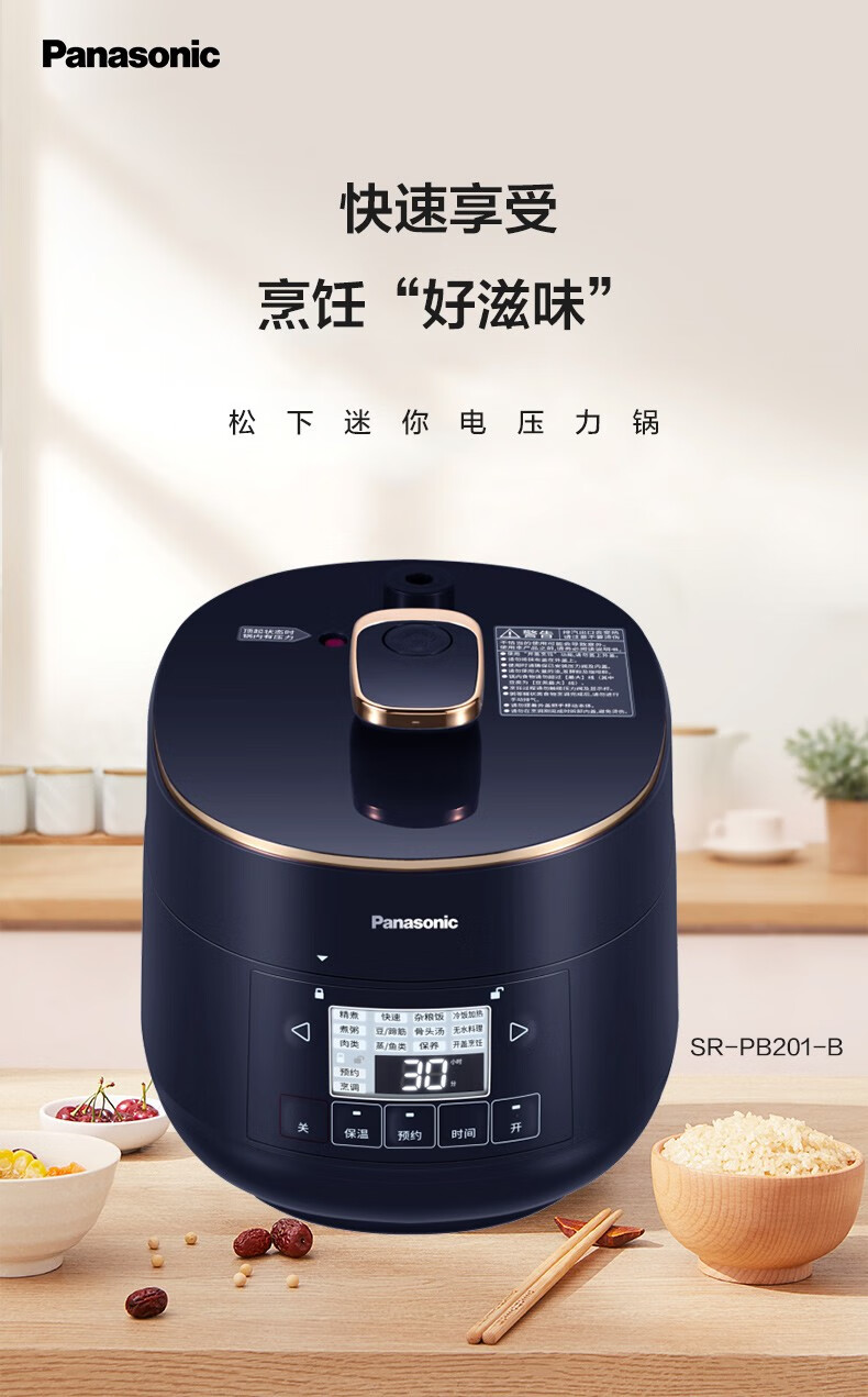 松下(Panasonic)2L迷你智能电压力锅 多功能可预约电压力煲 开盖煮全自动排气 SR-PB201-B