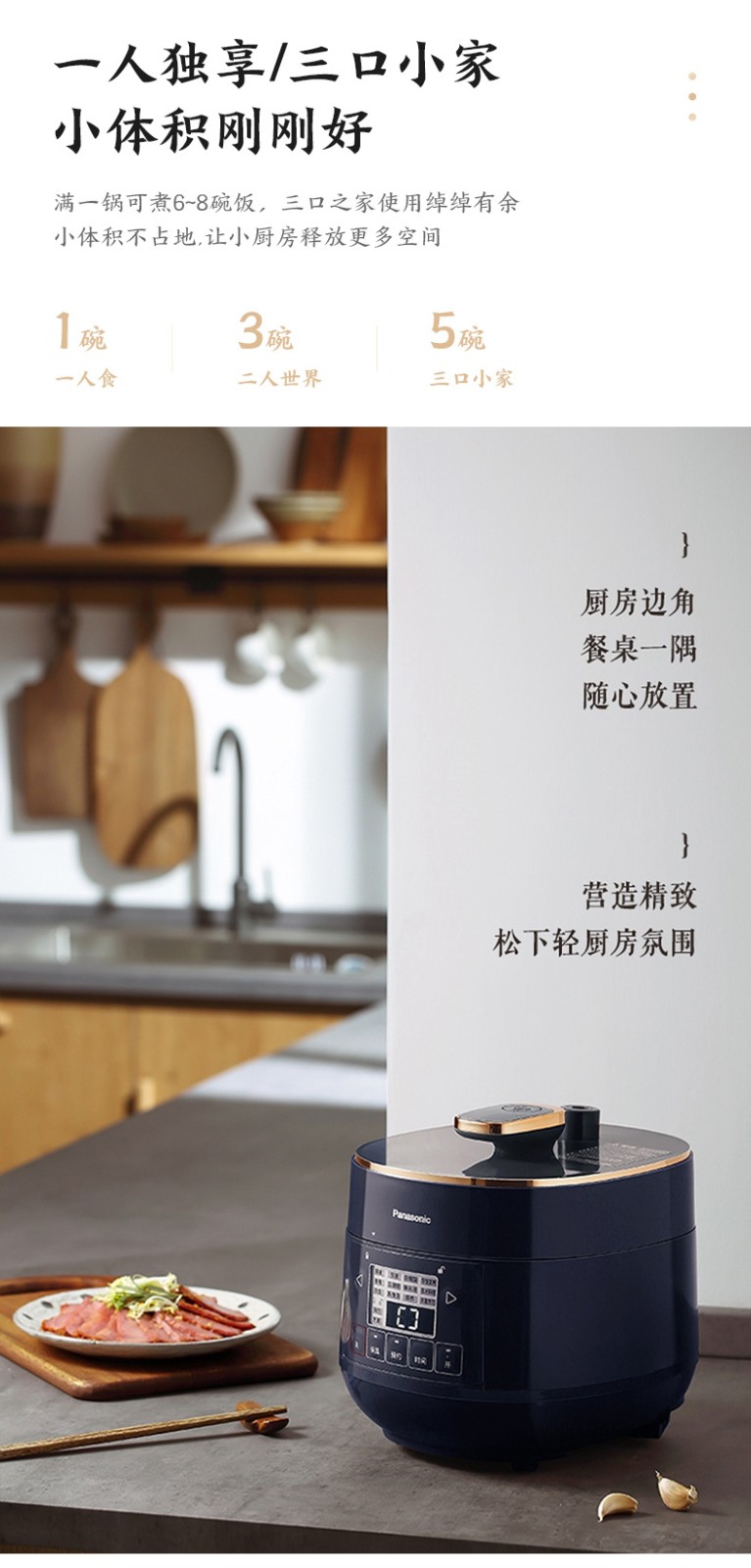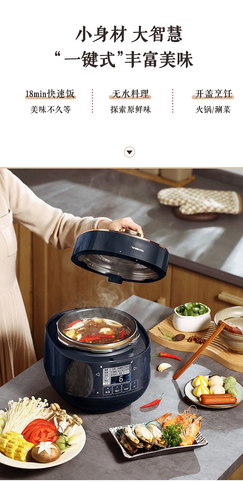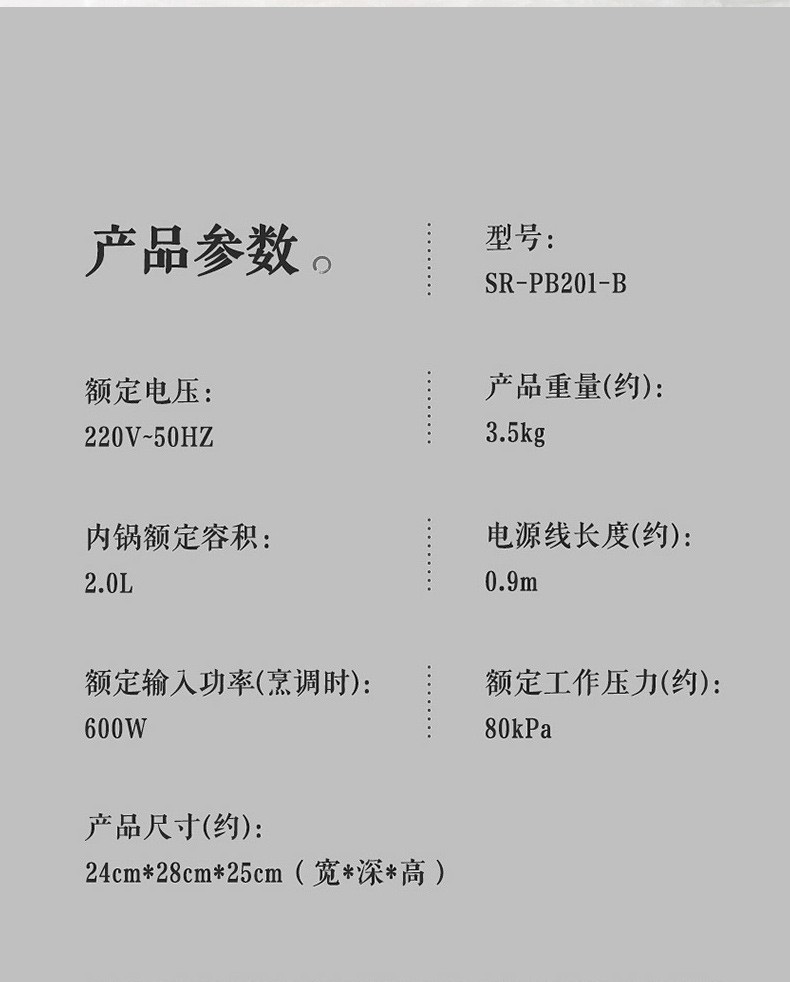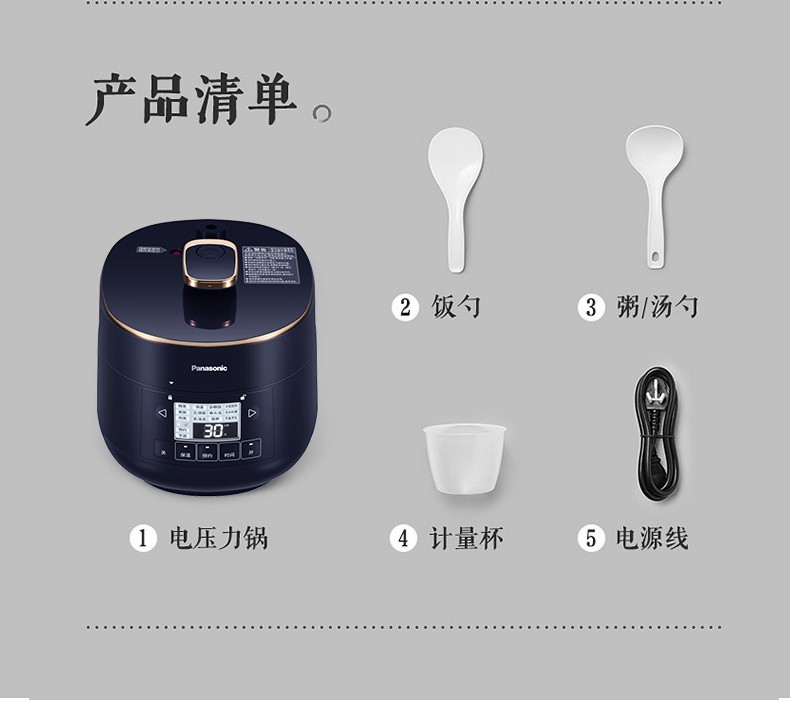 松下(Panasonic)2L迷你智能电压力锅 多功能可预约电压力煲 开盖煮全自动排气 SR-PB201-B