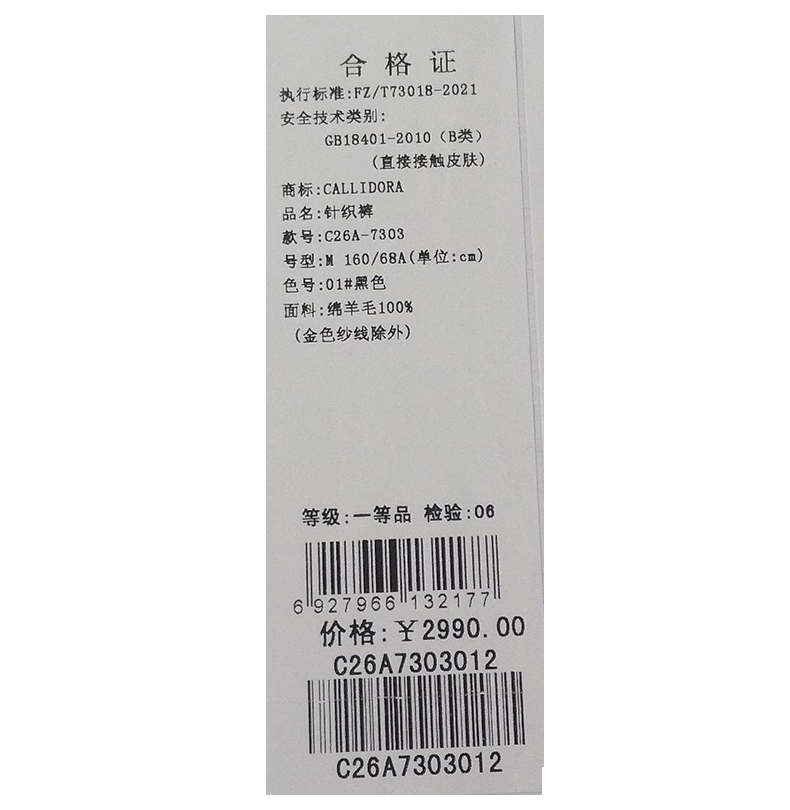 西贝伦长裤S26B1227