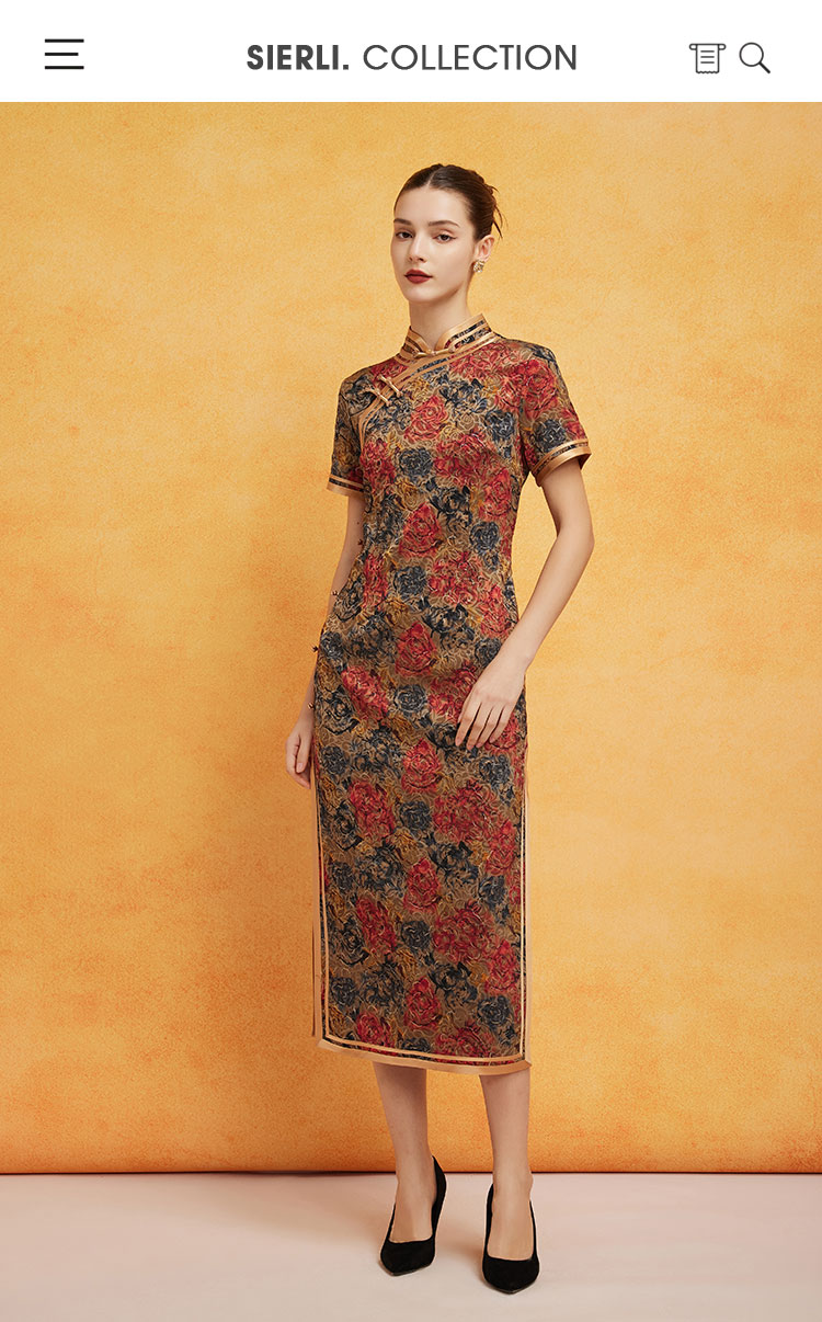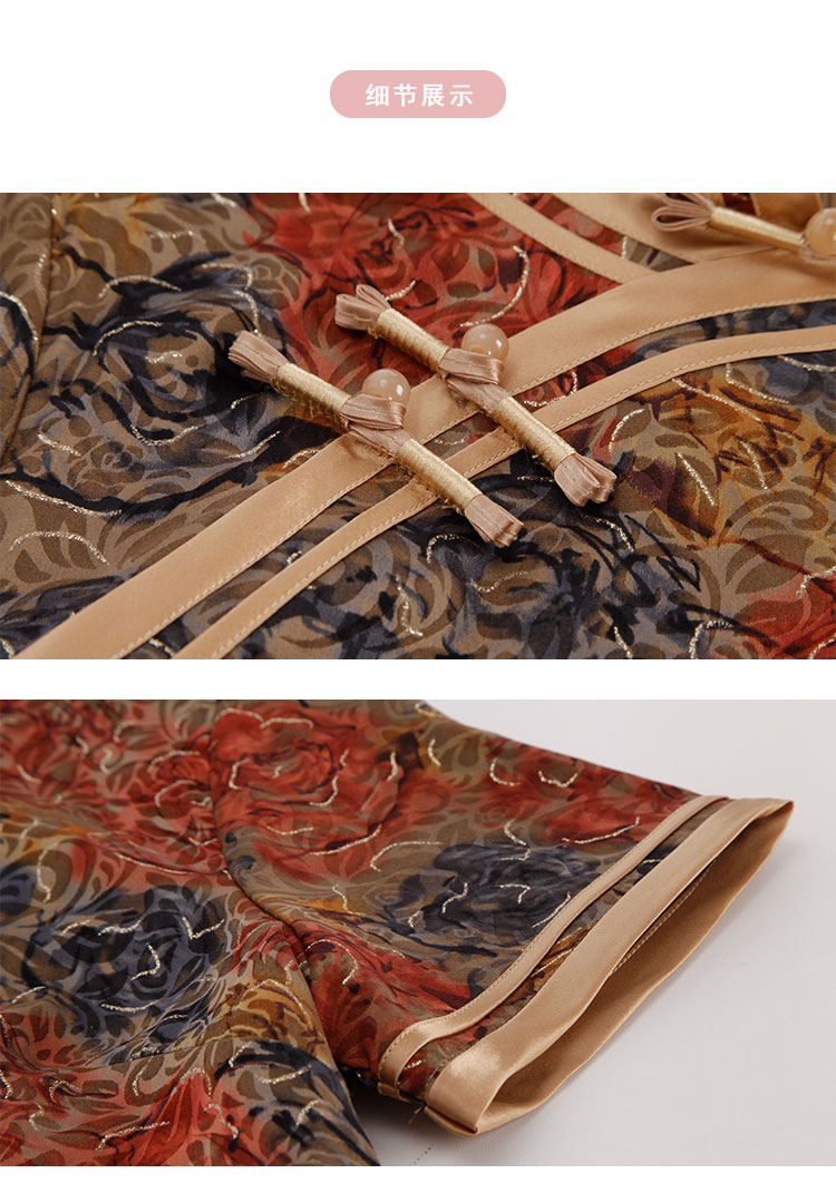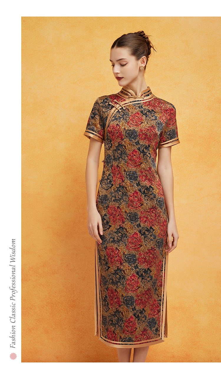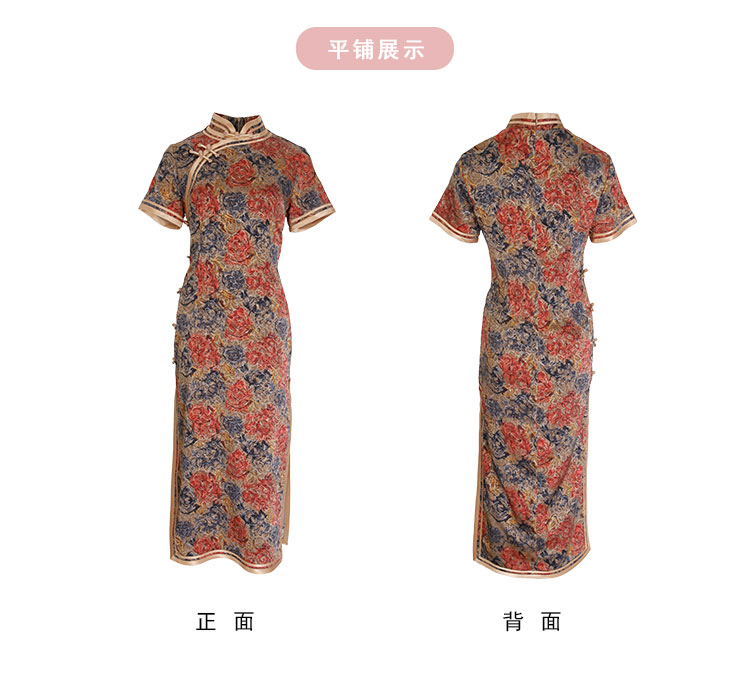 PF8G9斯尔丽2024新款花开富贵旗开得胜短袖改良旗袍中长修身显瘦连衣裙